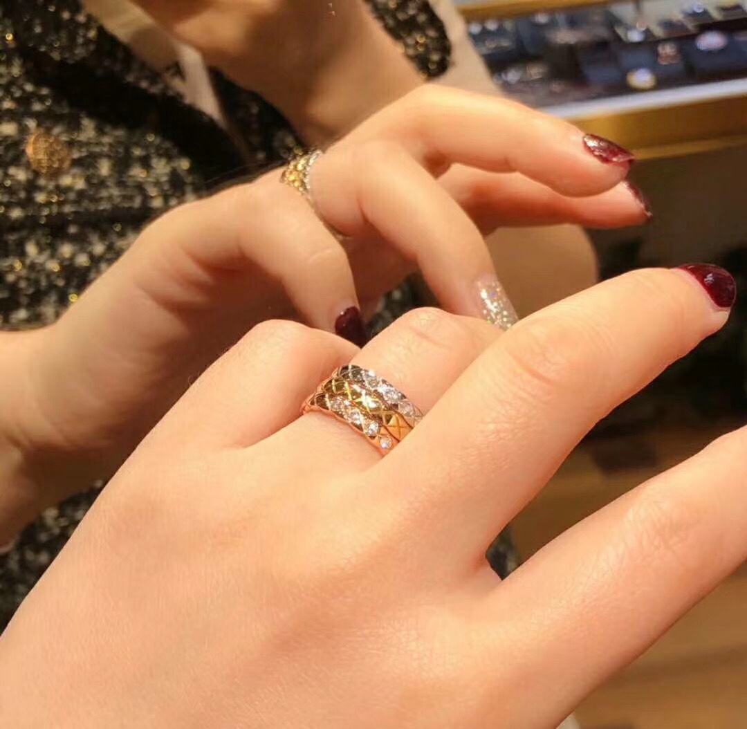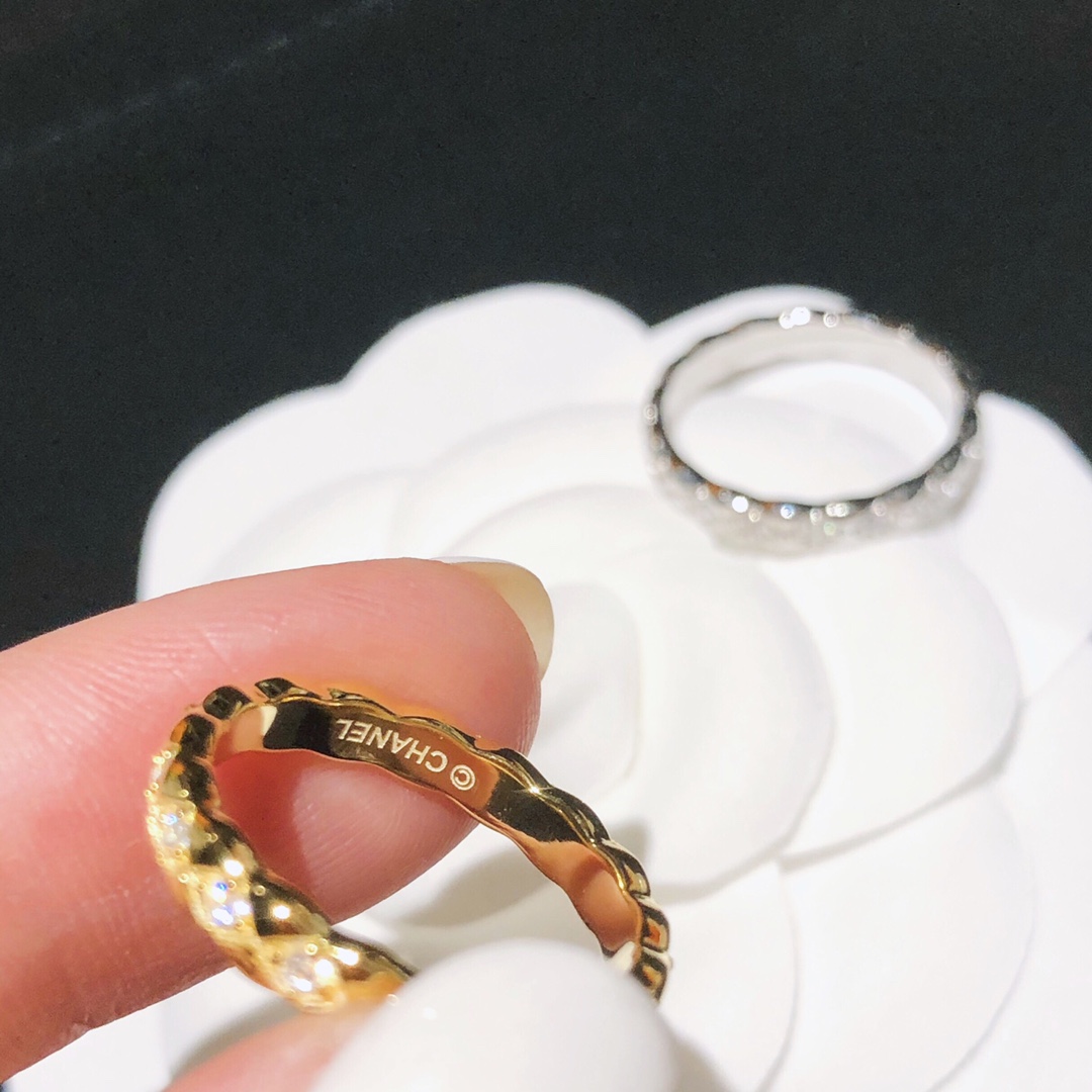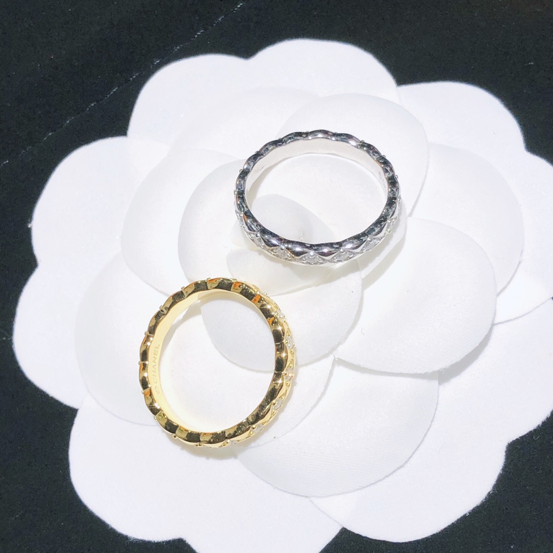 xx798 明星最愛的最窄版香奈兒 小香 戒指。永恆經典的香奈兒菱格紋戒指圖案,高端925純銀厚金電鍍層 Au 750 18k工藝 專櫃對版 打造令人心動的#COCOCRUSH#高級珠寶系列,讓你隨心混搭。全新菱格紋既可單獨佩戴,亦可與系列戒指、每種組合都令你不同凡響。碼數6 7 8號齊全 白金黃金