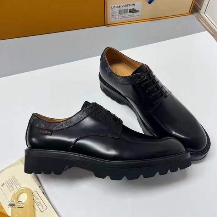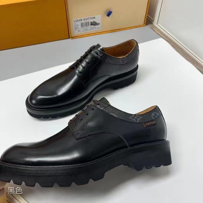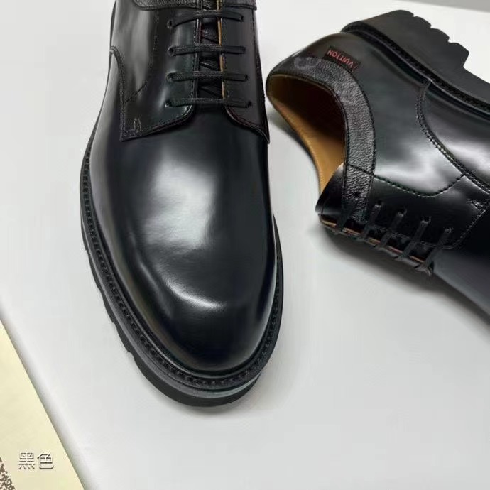 Lv-Voltaire系帶鞋陸續出貨 此款取材開邊珠牛皮,以 Monogram 帆布勾勒鞋領 布雷克工藝 搭配扁平皮革鞋帶、棕色內襯、側面 Vuitton 標識和橡膠外底。