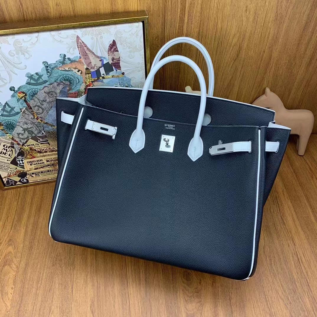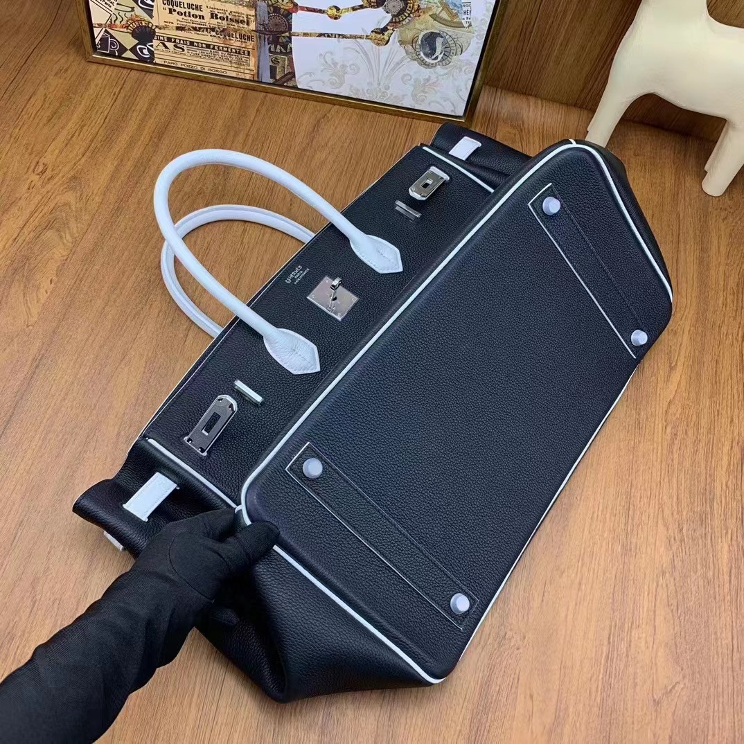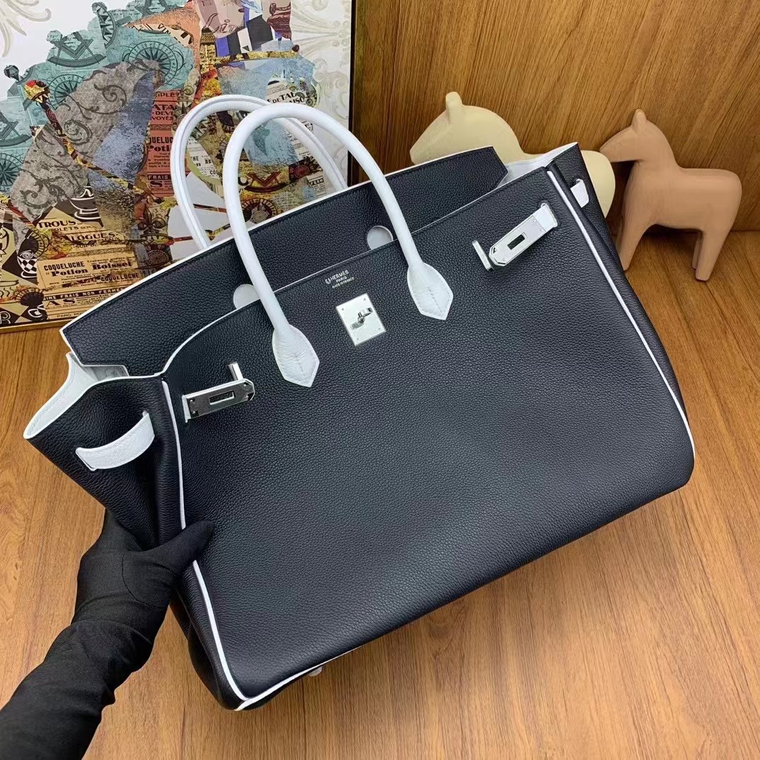 Birkin 40cm togo 89黑色拼01純白 銀扣 馬蹄