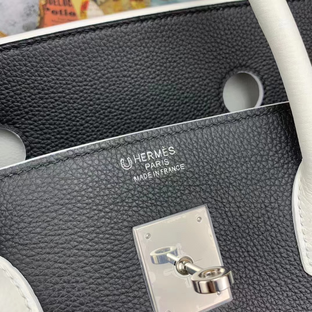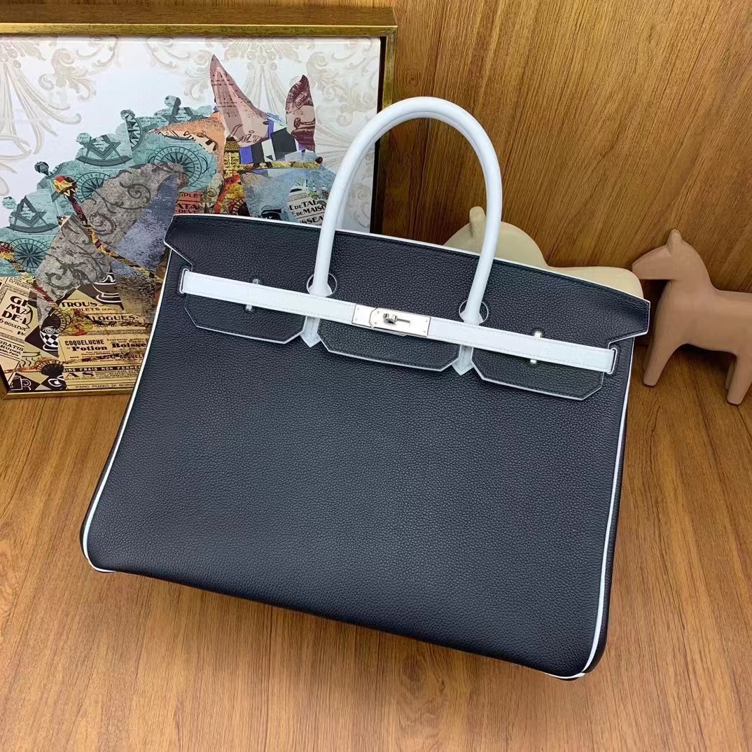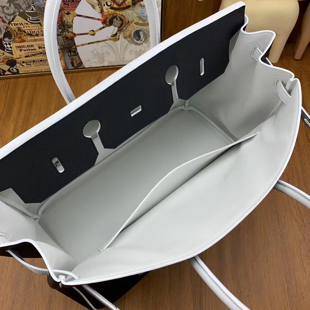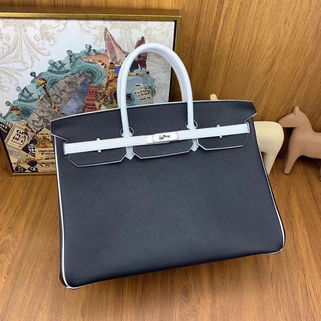 Birkin 40cm togo 89黑色拼01純白 銀扣 馬蹄