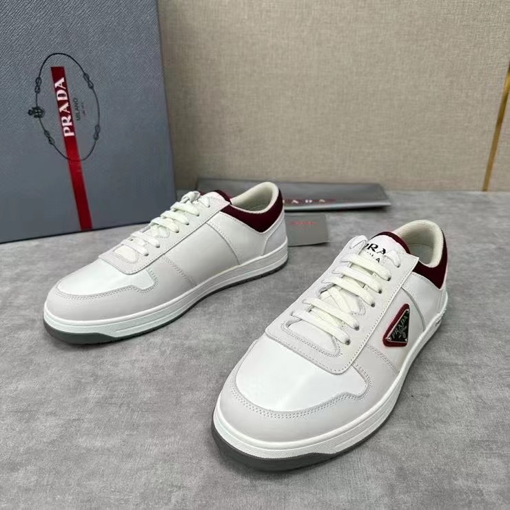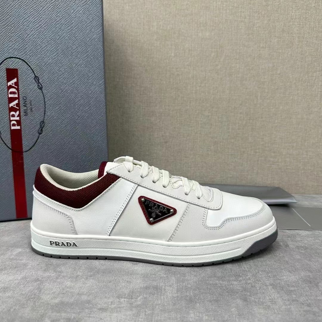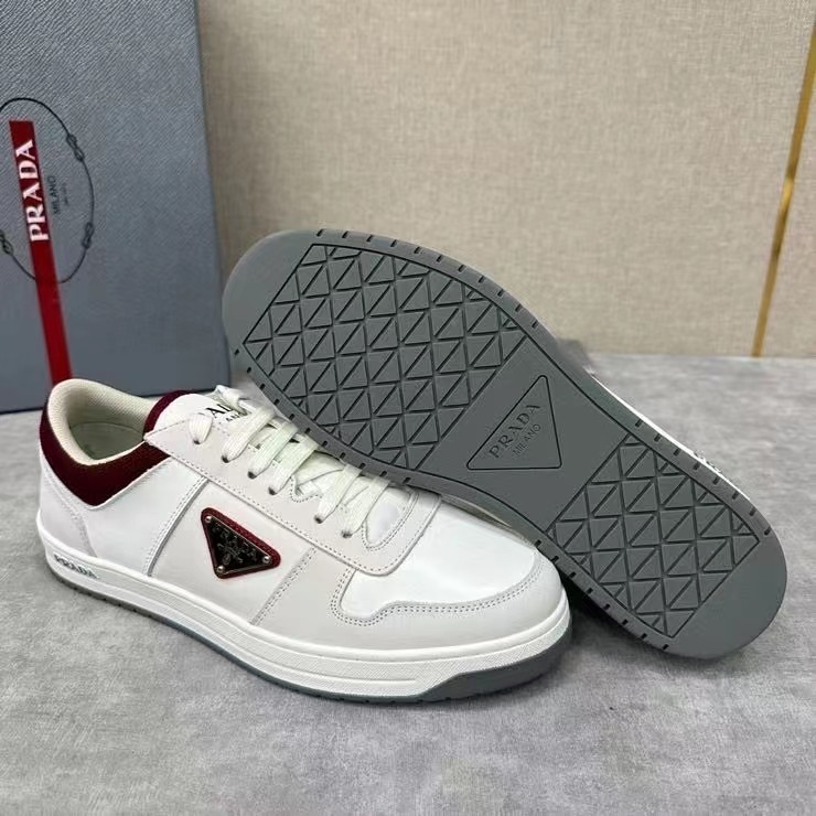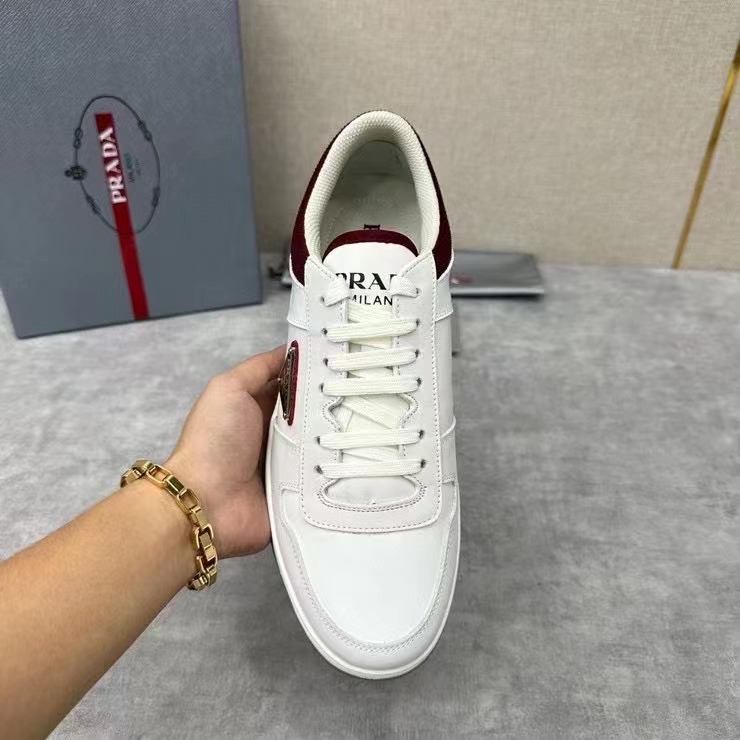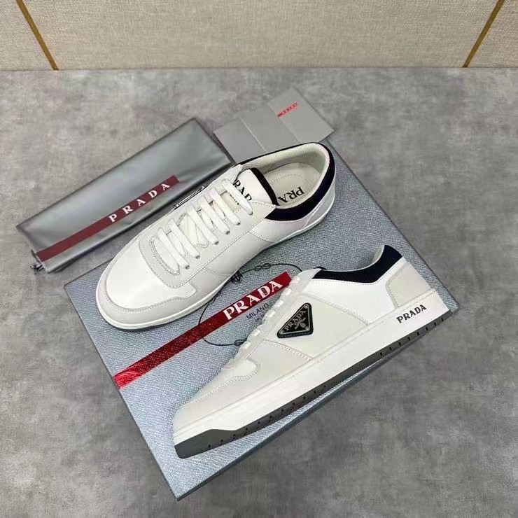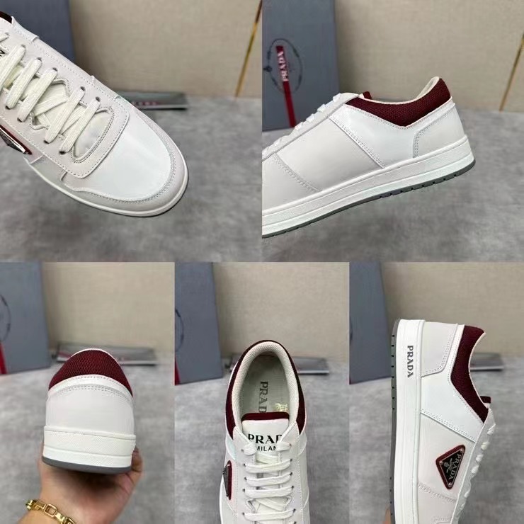 💋💍P家 最新單品運動鞋板鞋系列 這款運動鞋才用牛皮沖孔拼接撞色設計 內裏小牛皮裏打造 獨立一體原版沖孔牛皮墊腳 拉幫套楦 多角度詮釋Prad*徽標:輕巧躍於鞋舌與鞋外腰,鞋舌kpu穿刺做法飾有品牌logo標識 金屬孔眼和棉質鞋帶 原版開模雙色橡膠大底 沿輕質橡膠鞋底鋪陳,高約2cm 化身標誌性三角形徽標點綴鞋面外側,無不闡釋品牌格調。標準皮鞋碼數:38~45。三色入
