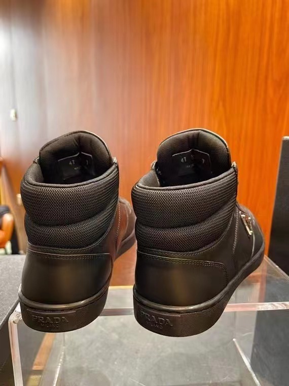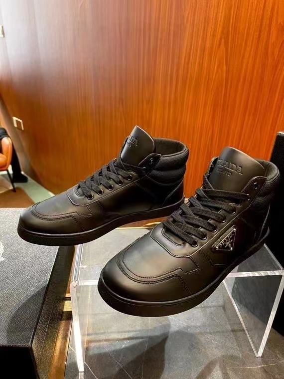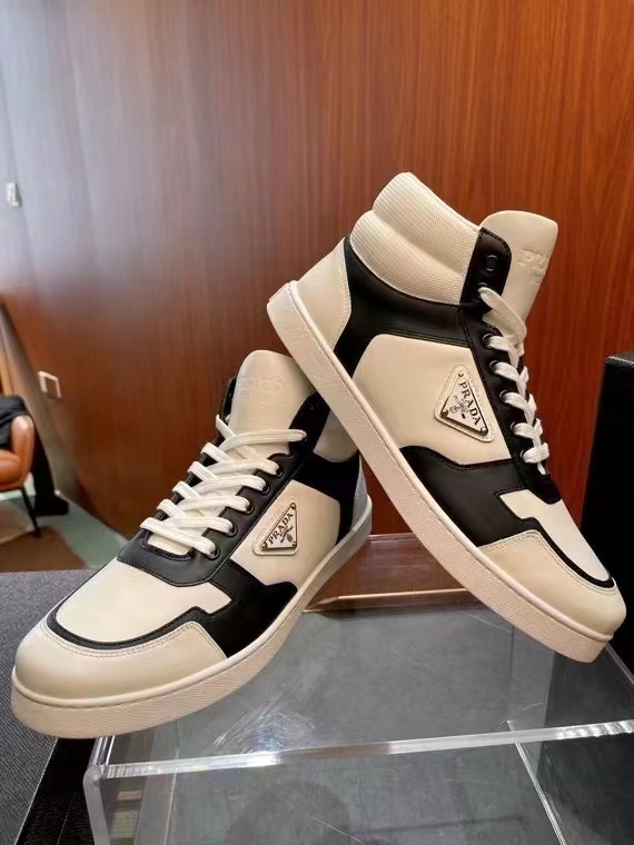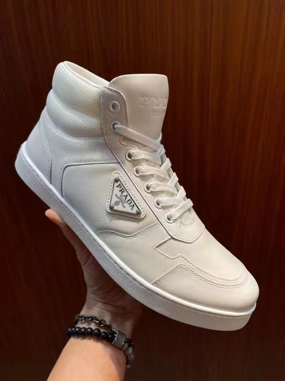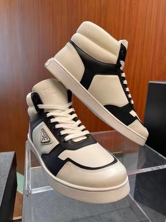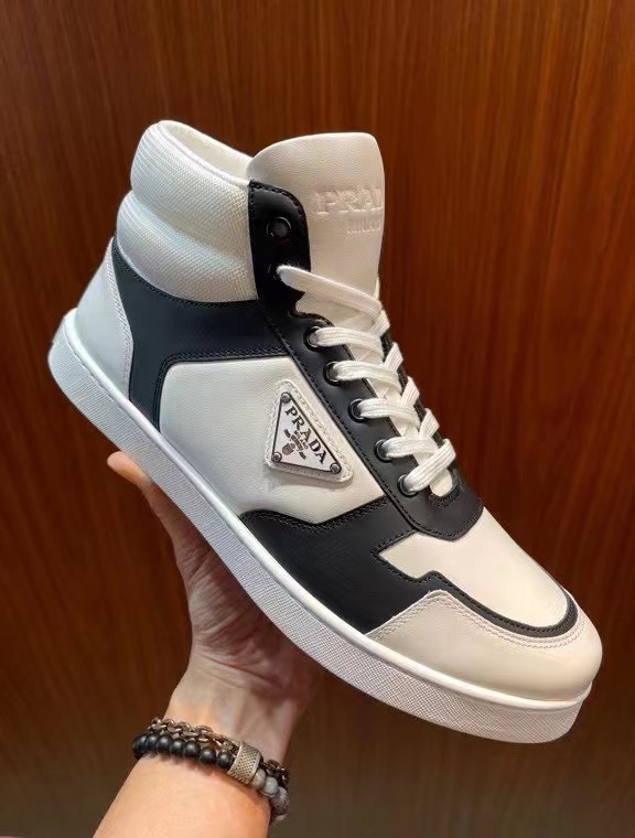 Re-Nylon 頭層牛皮/高幫運動鞋