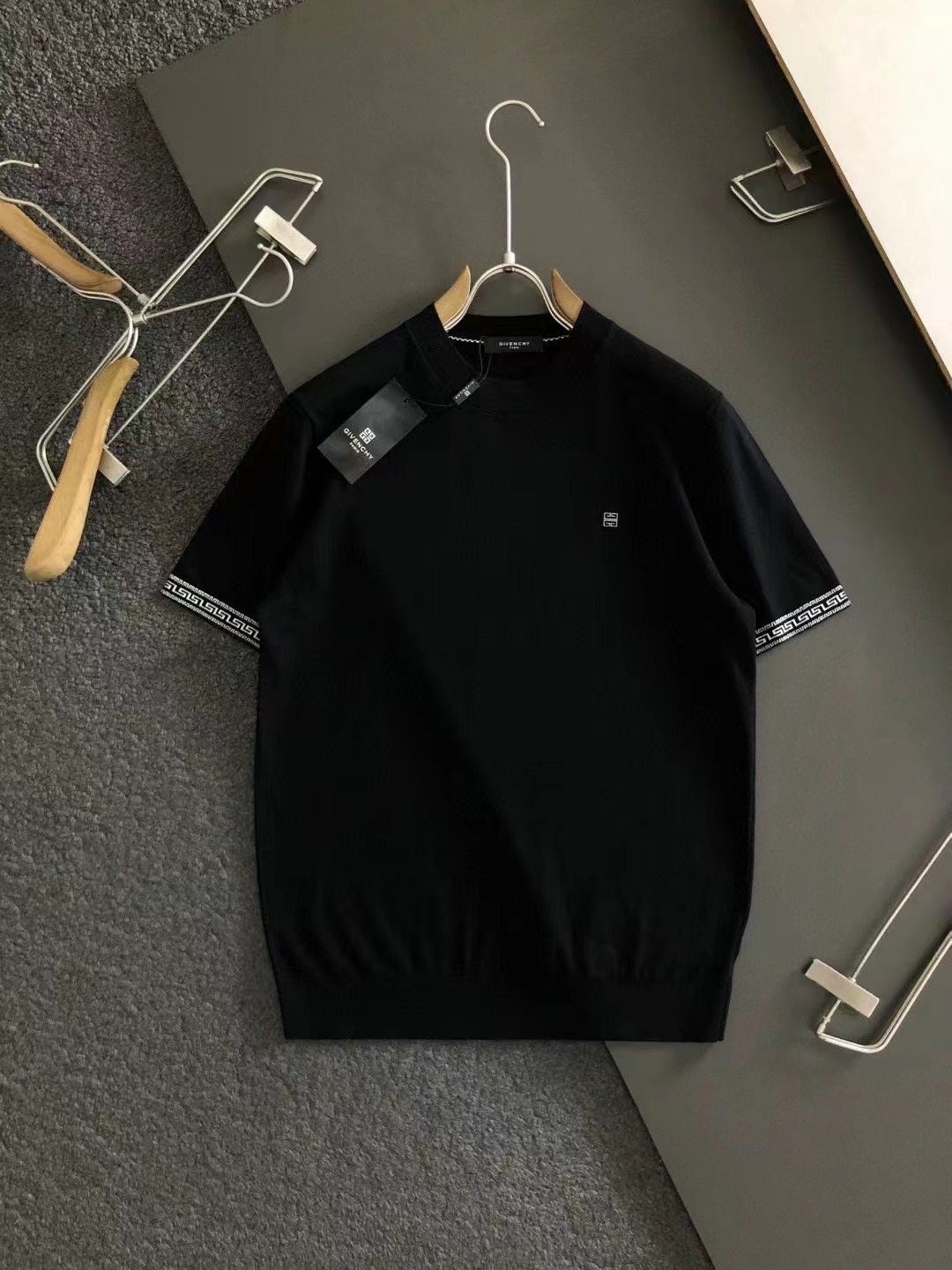 2023秋款頂級進口私貨,黑白雙色螺紋提花羊金屬貼標貼標純色圓領針織套頭衫*純色融合提花字母針織短袖專櫃款時尚不失奢華 品質毋庸置疑 上身效果超贊,奢華官網同款 款式💂🏿專櫃尺碼M-xxx