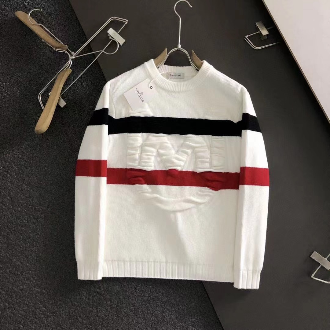 2023秋款頂級進口私貨,高端三色條紋壓花工藝貼標圓領針織套頭衫*黑白紅融合壓花針織衫專櫃款時尚不失奢華 品質毋庸置疑 上身效果超贊,奢華官網同款 款式💂🏿專櫃尺碼M-xxxl