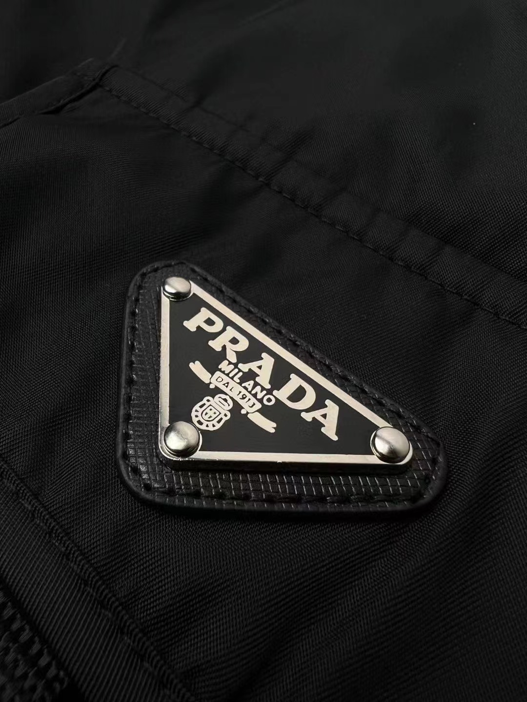 工藝1:采用進口專機紅外線定位「Prada三角標」