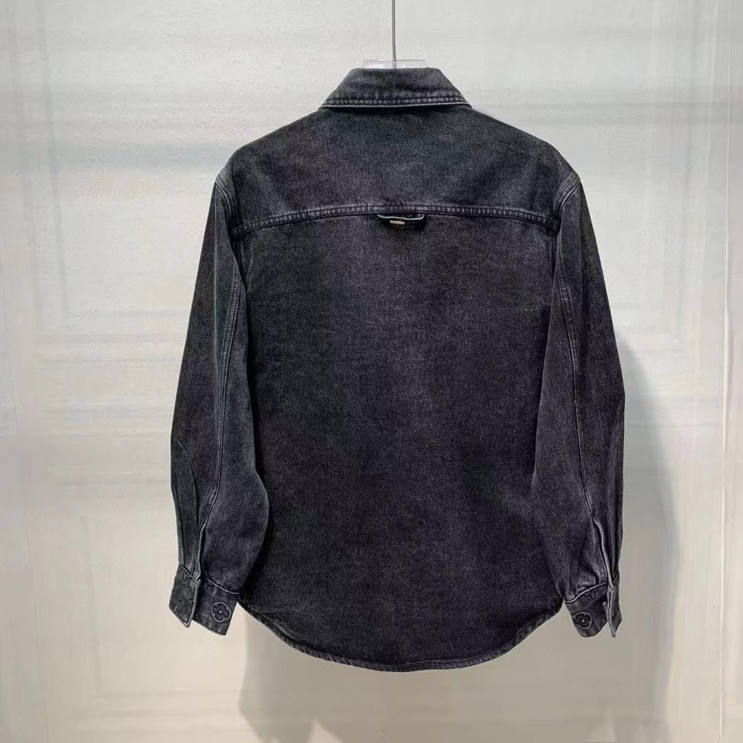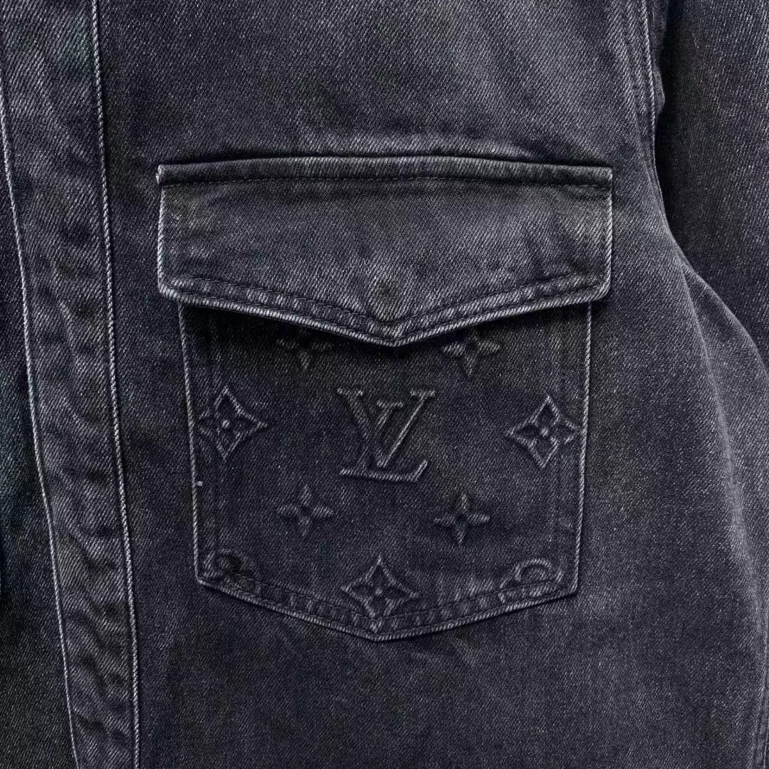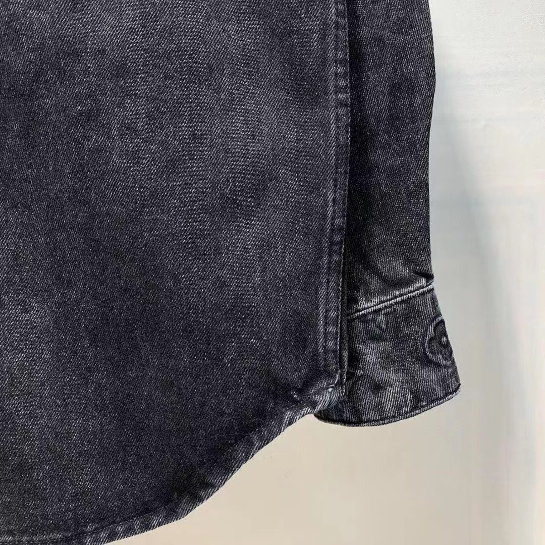 H68028 尾燈-口袋壓膠牛仔襯衫,硫化黑面料,浮雕老花工藝,這件只有口袋和袖口做了牛仔浮雕,點到為止的時髦,~定位Monogram老花時髦又高級,就是oversize廓形~不太喜歡滿logo或者logo很大的衣服,這一季的黑牛仔算是深得人心只有胸口和袖口有暗紋logo,購入專櫃,1:1定製五金出貨❗️整體水洗做舊非常百搭耐穿真的很適合日常穿,男女同款