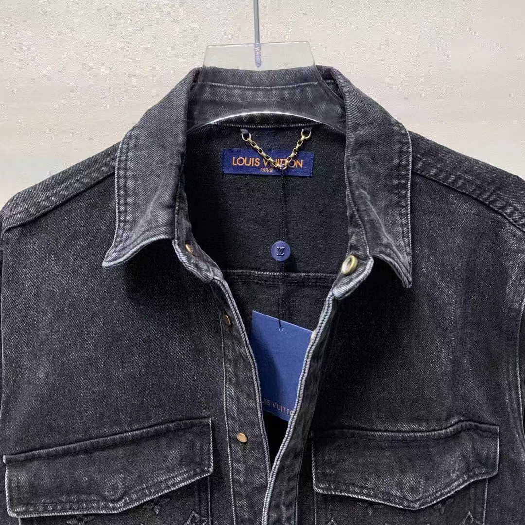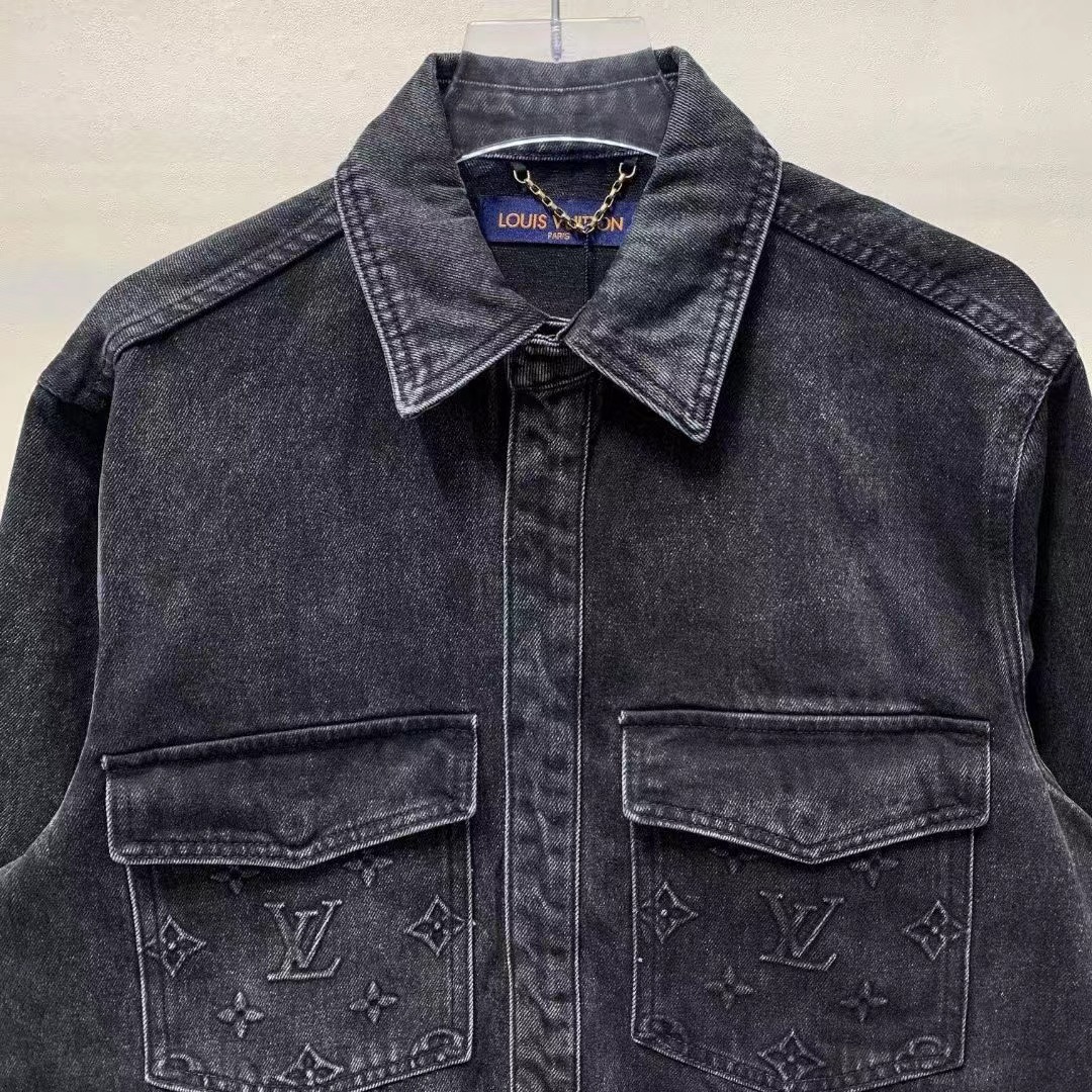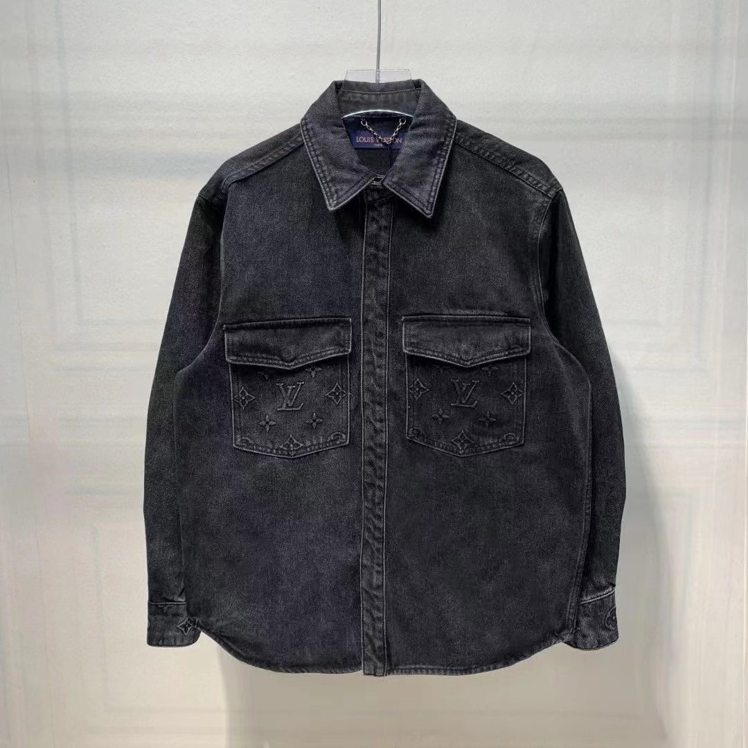H68028 尾燈-口袋壓膠牛仔襯衫,硫化黑面料,浮雕老花工藝,這件只有口袋和袖口做了牛仔浮雕,點到為止的時髦,~定位Monogram老花時髦又高級,就是oversize廓形~不太喜歡滿logo或者logo很大的衣服,這一季的黑牛仔算是深得人心只有胸口和袖口有暗紋logo,購入專櫃,1:1定製五金出貨❗️整體水洗做舊非常百搭耐穿真的很適合日常穿,男女同款