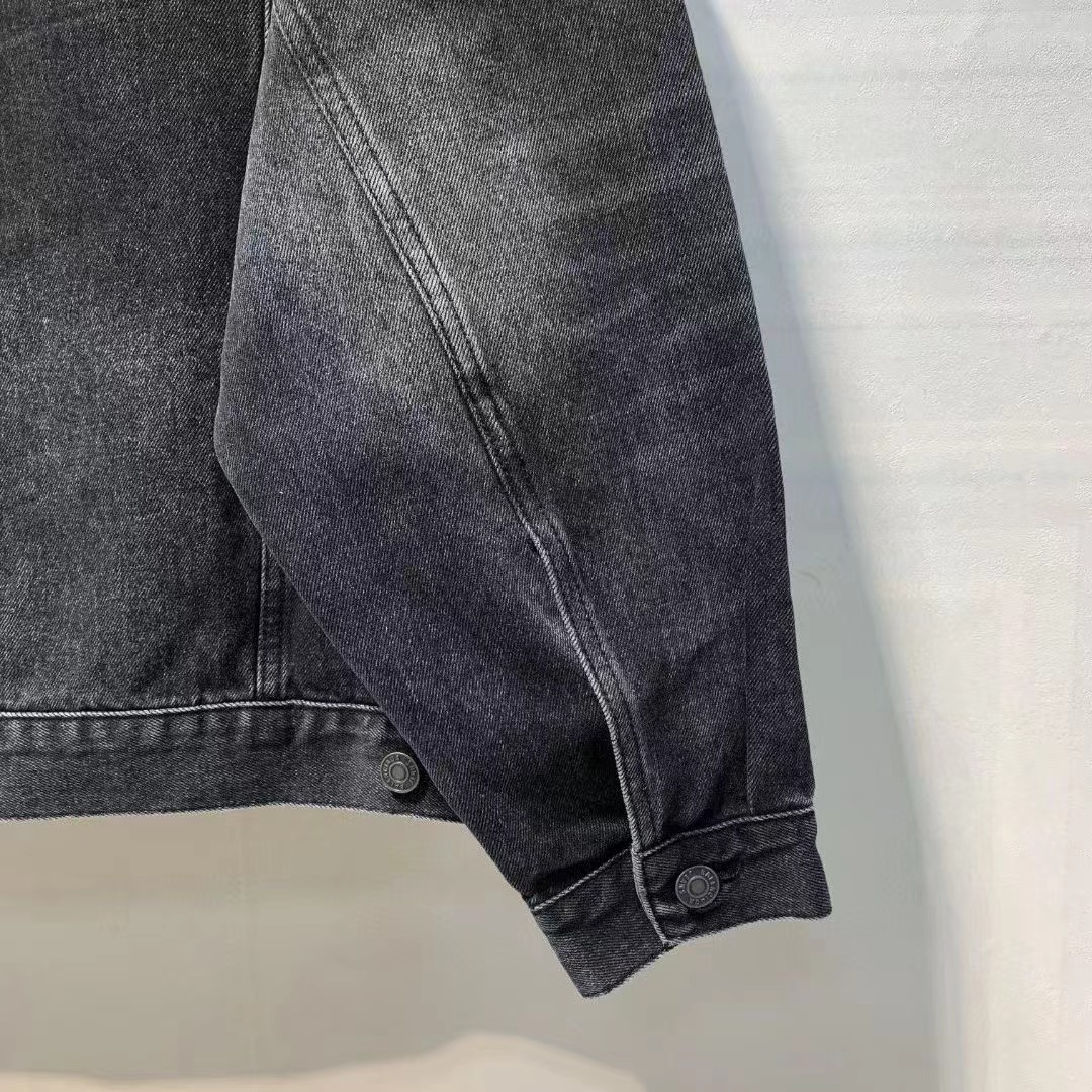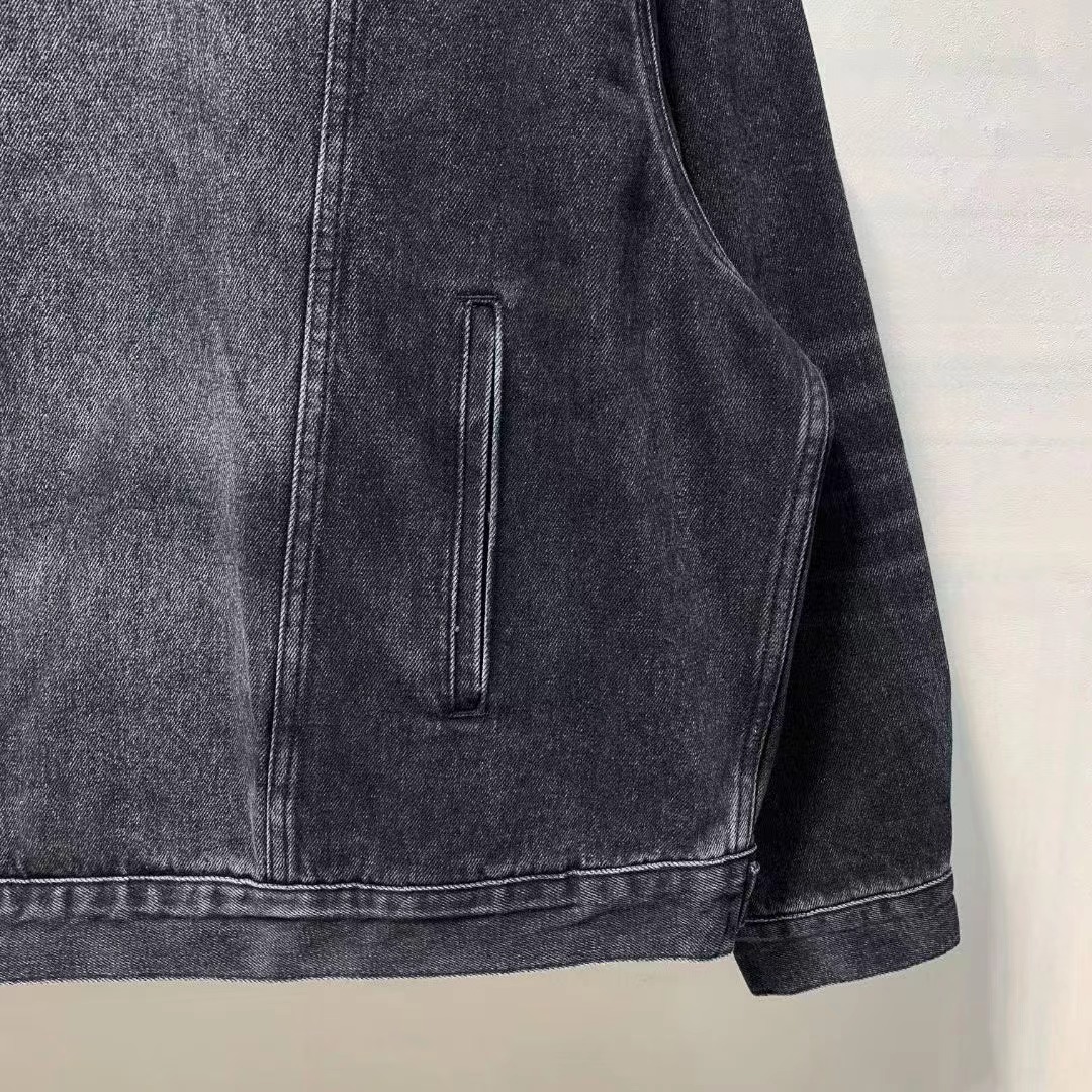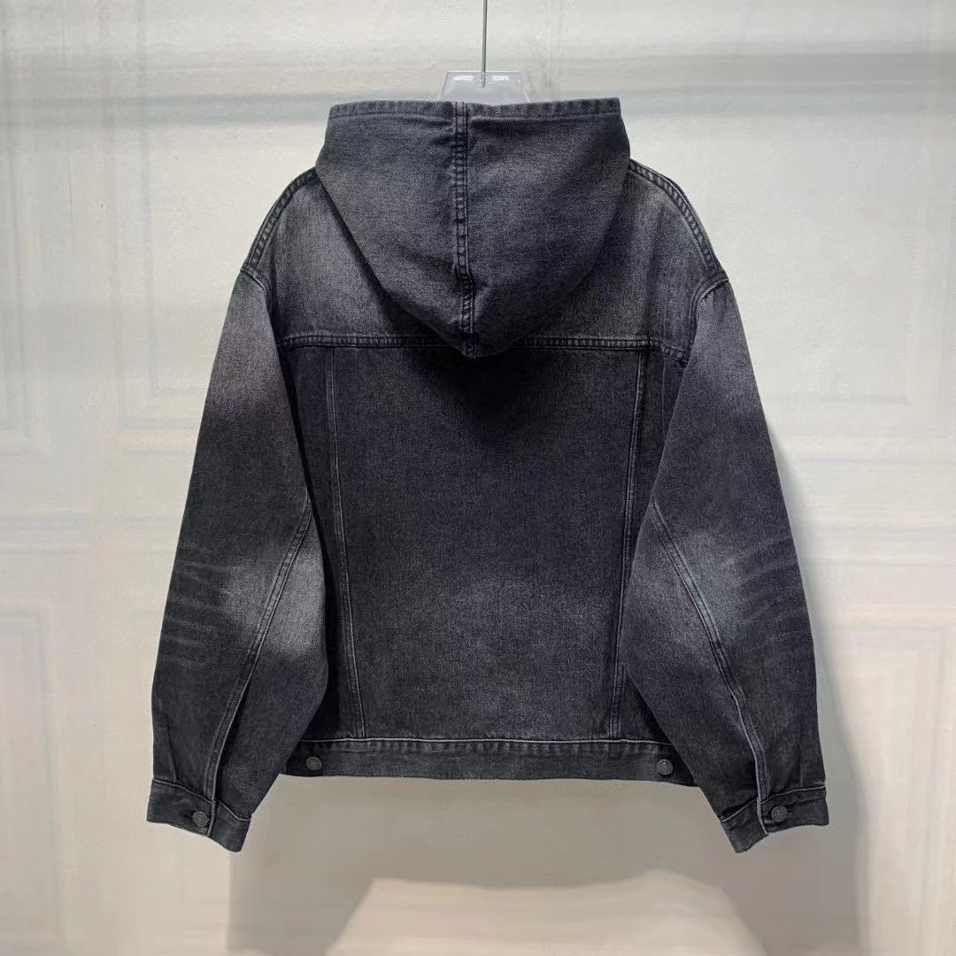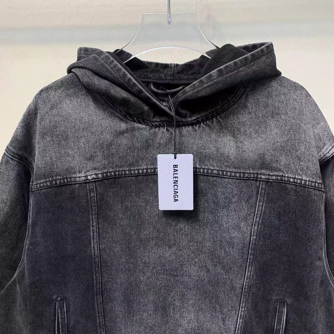 H68020 BL-寬松連帽牛仔衛衣 ,硫化黑面料,衛衣款連帽衫牛仔板型,酵漂懷舊,多位磨破,噴多位馬騮,定製五金!GW同款