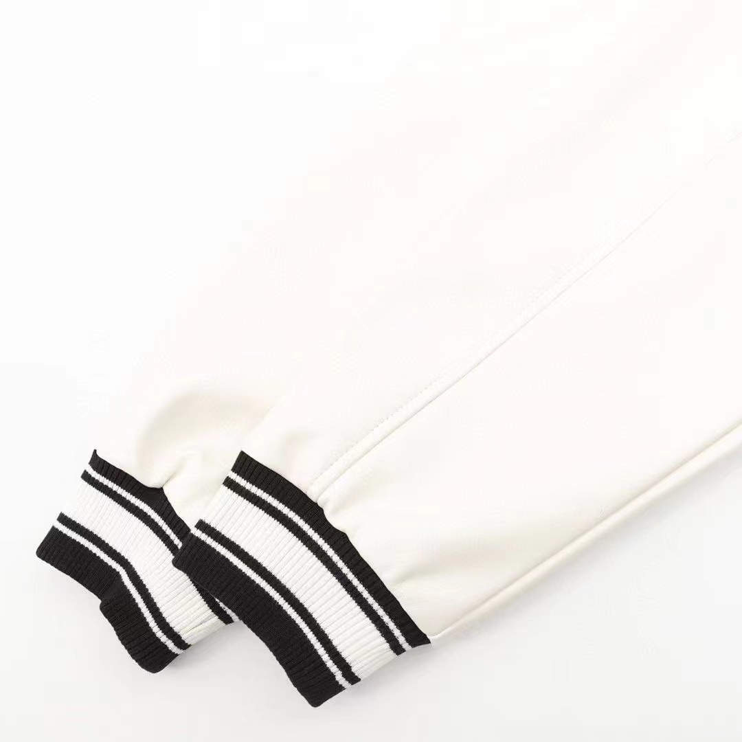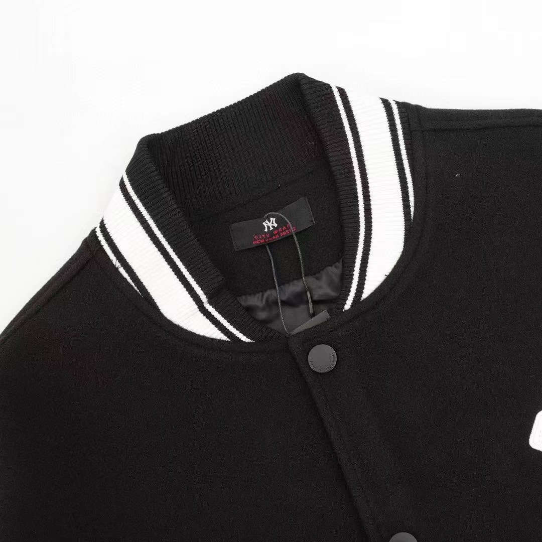 渠道精品 潮男潮女ZUI愛的棒球服夾克,市場各級版本都有(細節你們一定要對比),最牛X的實力品控 生產研究棒球服7個年頭 細節精致。擁有它,你就是全宇宙的最靚的仔.烤漆面全平面四合扣(紐扣帶LOGO),面料克重平均近900克,采用羊毛+睛綸混紡 定織定染的羊毛呢 擁有較高的色牢度。內襯是絲滑細膩的銅氨纖維材質!質感厚實,色澤更為均勻靚麗,棱角分明立體感十足彰顯慵懶隨性,年輕活力!