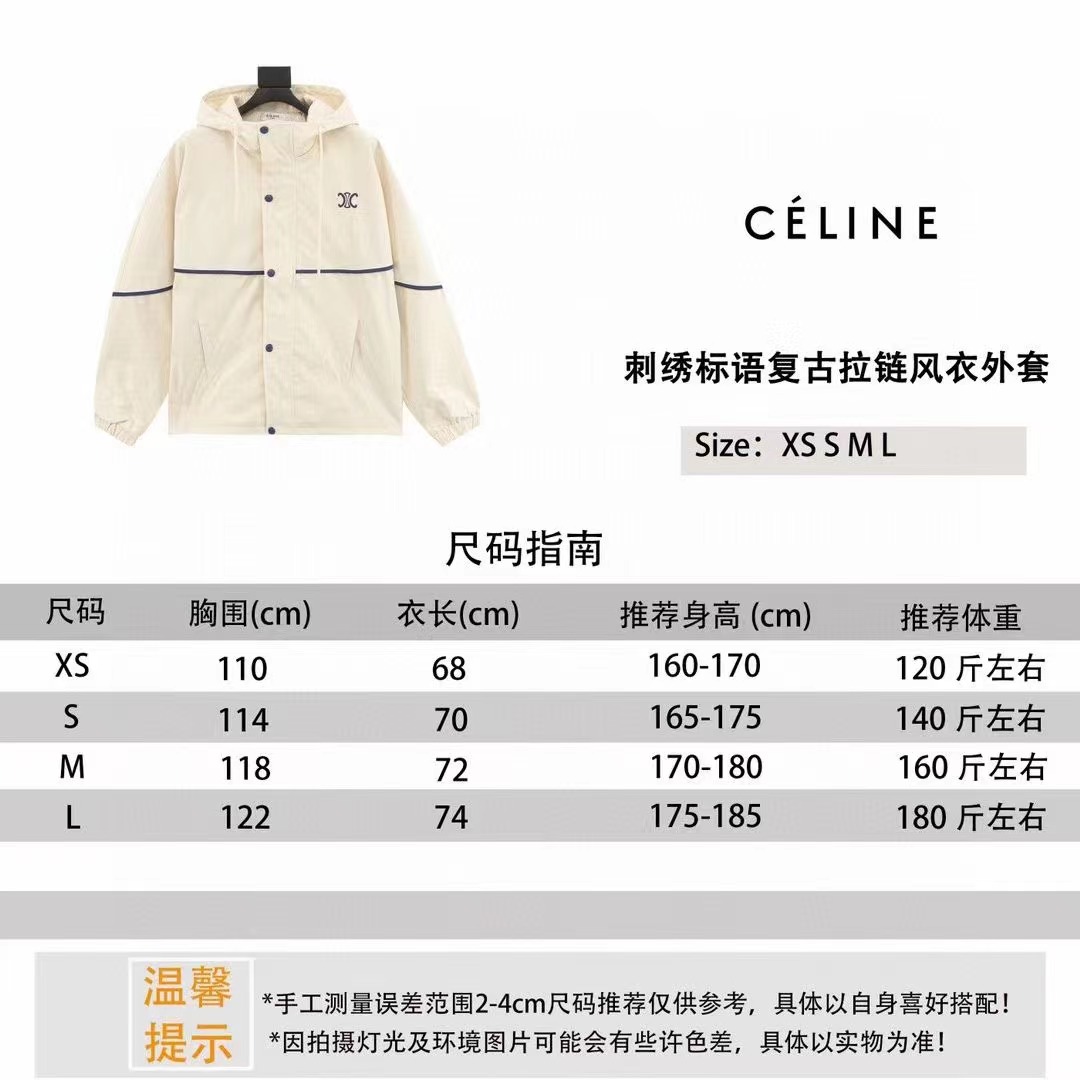 CLINE/賽琳 刺繡標語復古拉鏈風衣外套