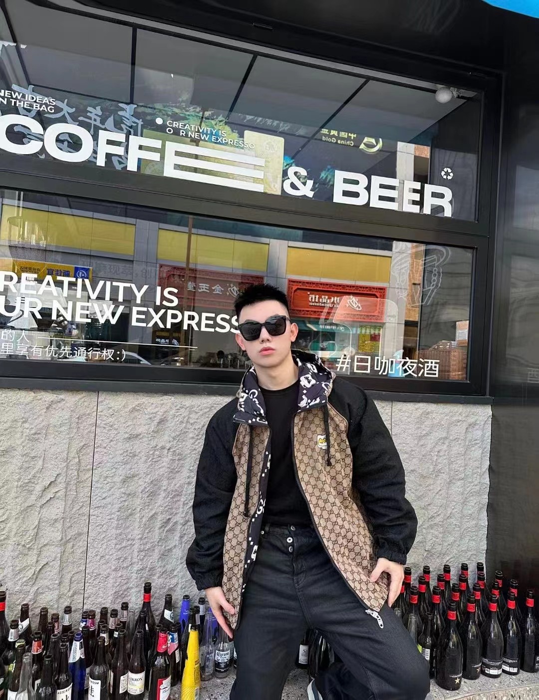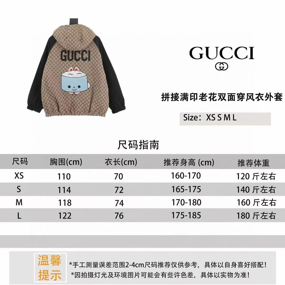 GUCCI/古馳 拼接滿印老花雙面穿風衣外套