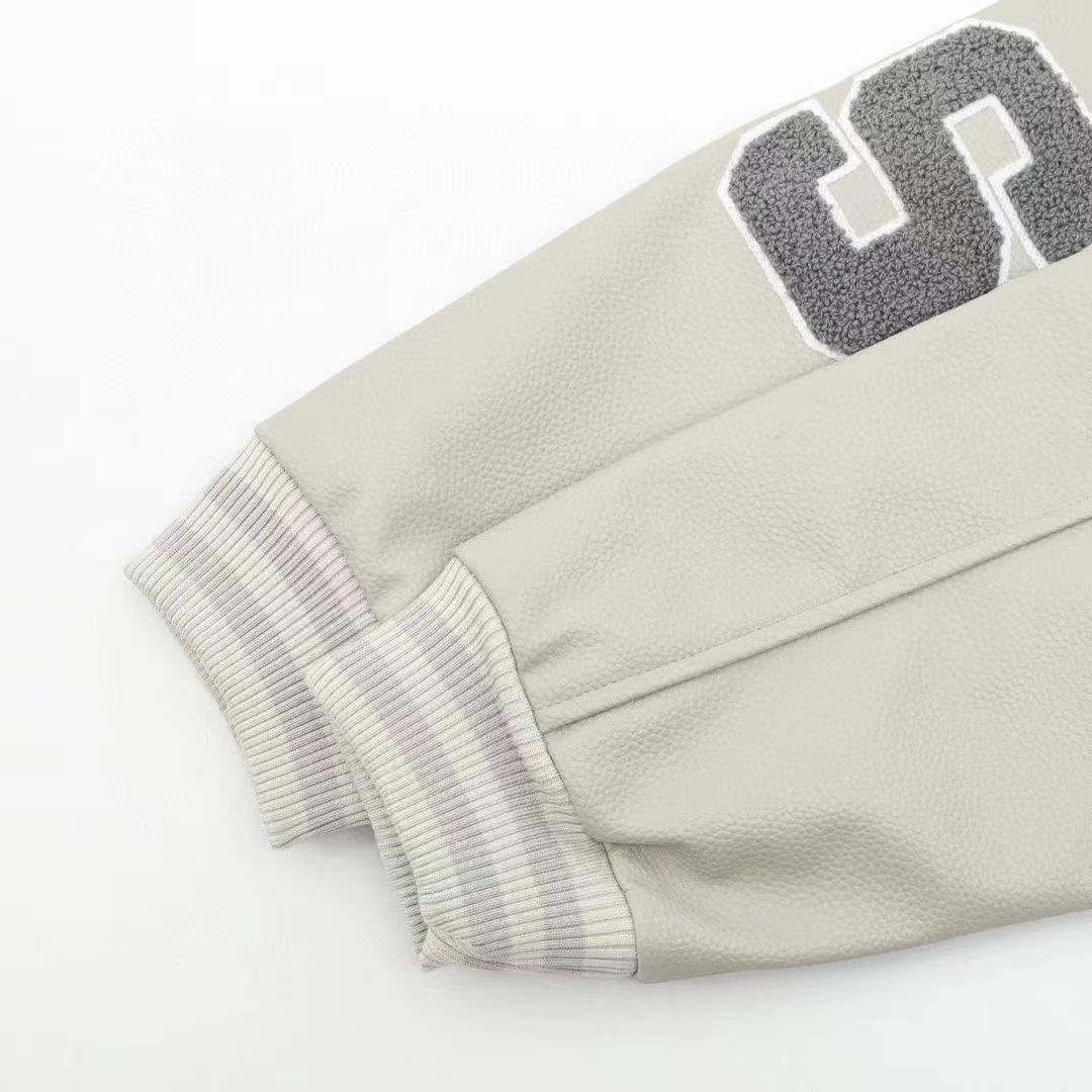 渠道精品 潮男潮女ZUI愛的棒球服夾克,市場各級版本都有(細節你們一定要對比),最牛X的實力品控 生產研究棒球服7個年頭 細節精致。擁有它,你就是全宇宙的最靚的仔.烤漆面全平面四合扣(紐扣帶LOGO),面料克重平均近900克,采用羊毛+睛綸混紡 定織定染的羊毛呢 擁有較高的色牢度。內襯是絲滑細膩的銅氨纖維材質!質感厚實,色澤更為均勻靚麗,棱角分明立體感十足彰顯慵懶隨性,年輕活力!