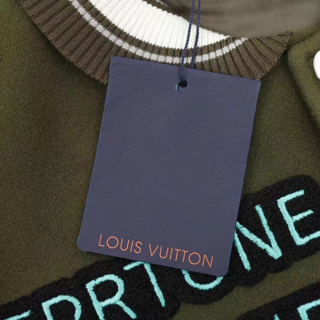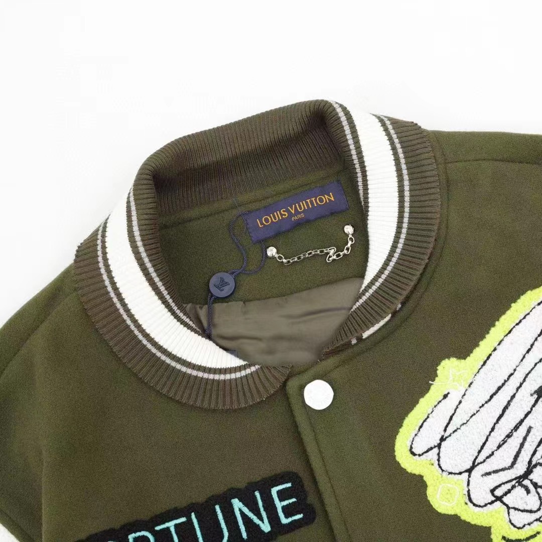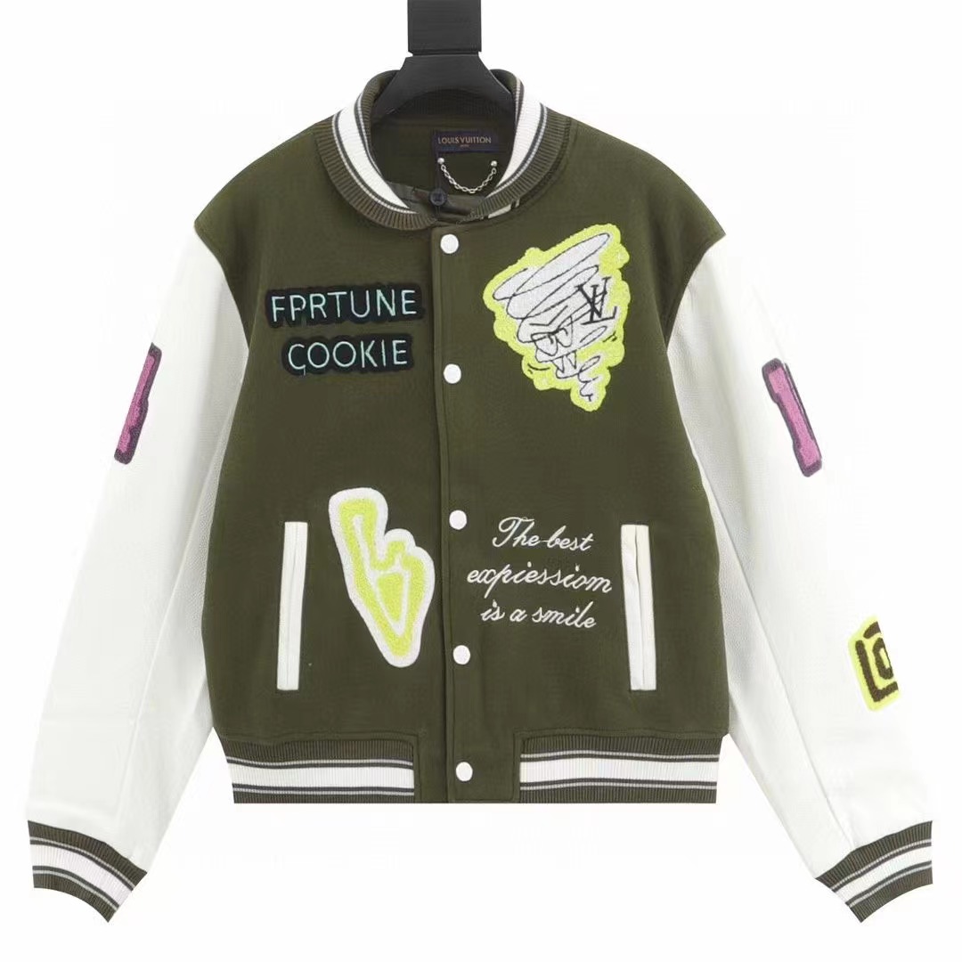 Louis Vutton路易威登 刺繡字母皮袖拼接棒球服外套