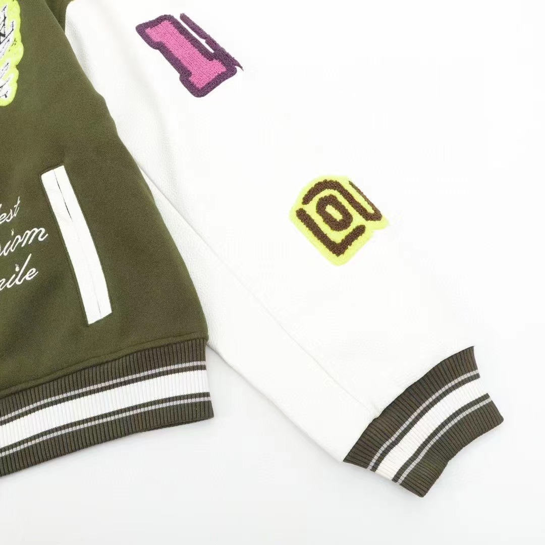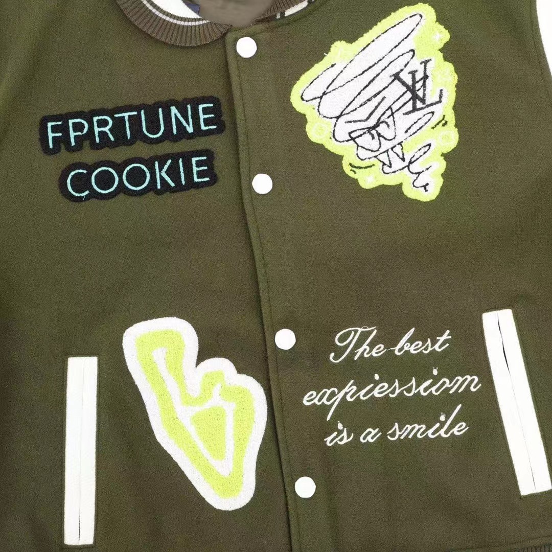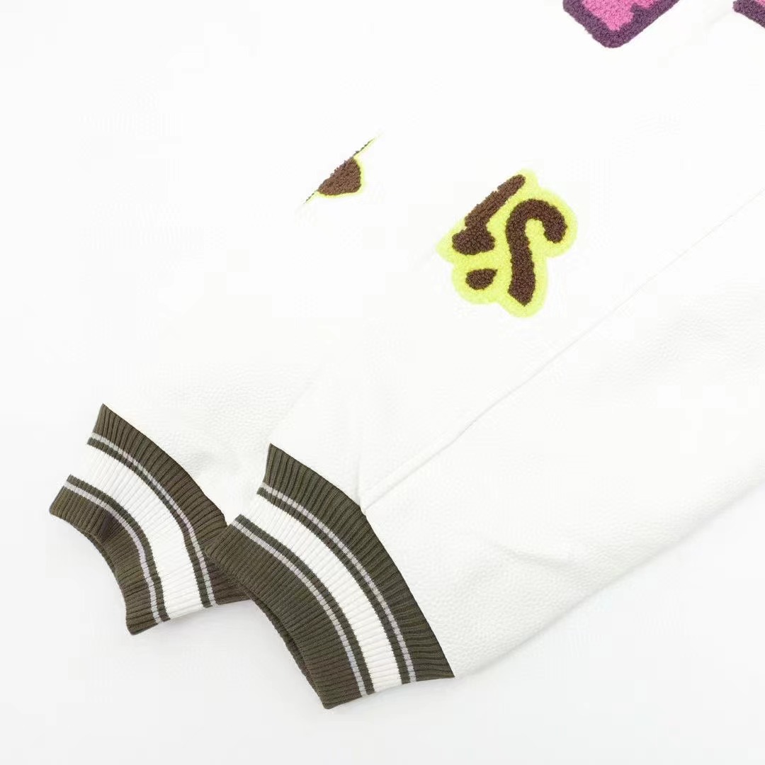 Louis Vutton路易威登 刺繡字母皮袖拼接棒球服外套