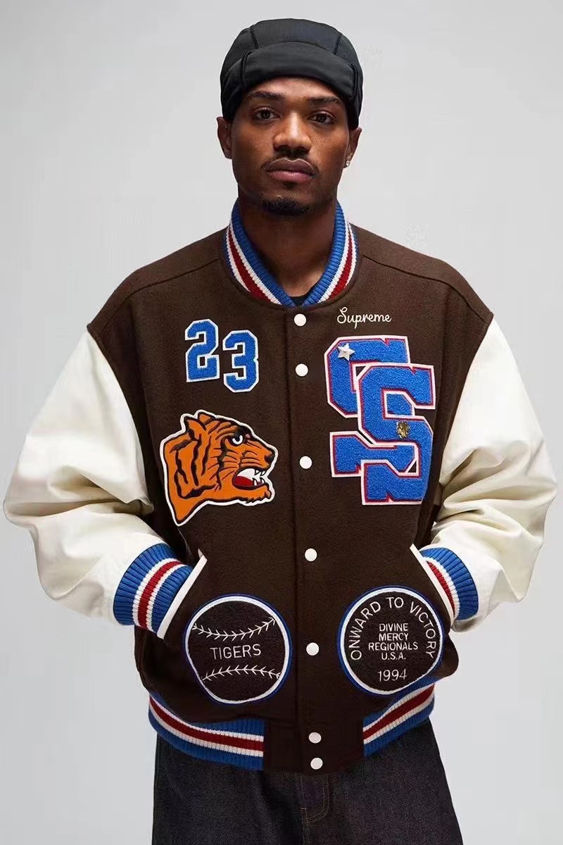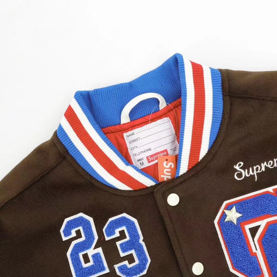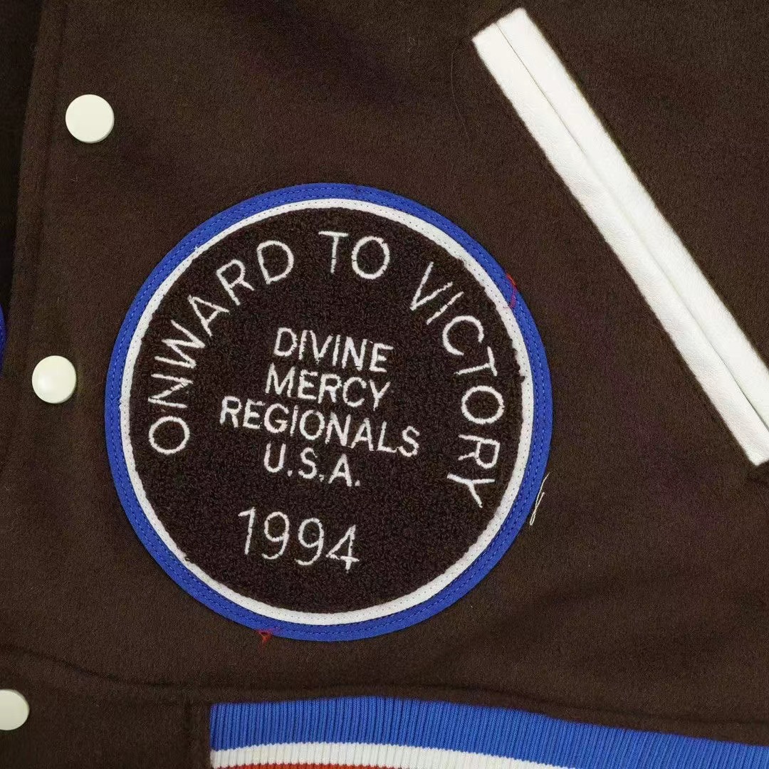 渠道精品 潮男潮女ZUI愛的棒球服夾克,市場各級版本都有(細節你們一定要對比),最牛X的實力品控 生產研究棒球服7個年頭 細節精致。擁有它,你就是全宇宙的最靚的仔.烤漆面全平面四合扣(紐扣帶LOGO),面料克重平均近900克,采用羊毛+睛綸混紡 定織定染的羊毛呢 擁有較高的色牢度。內襯是絲滑細膩的銅氨纖維材質!質感厚實,色澤更為均勻靚麗,棱角分明立體感十足彰顯慵懶隨性,年輕活力!