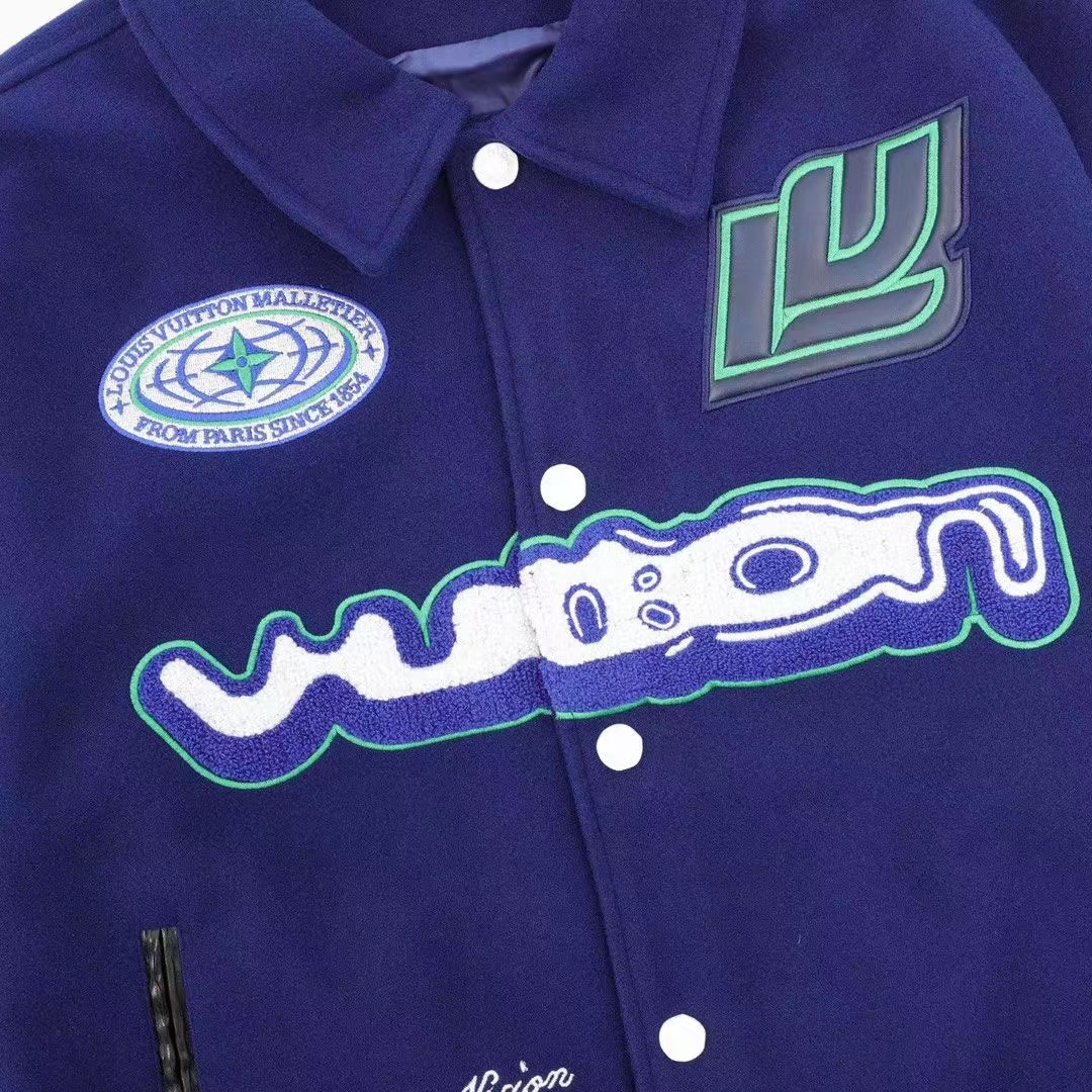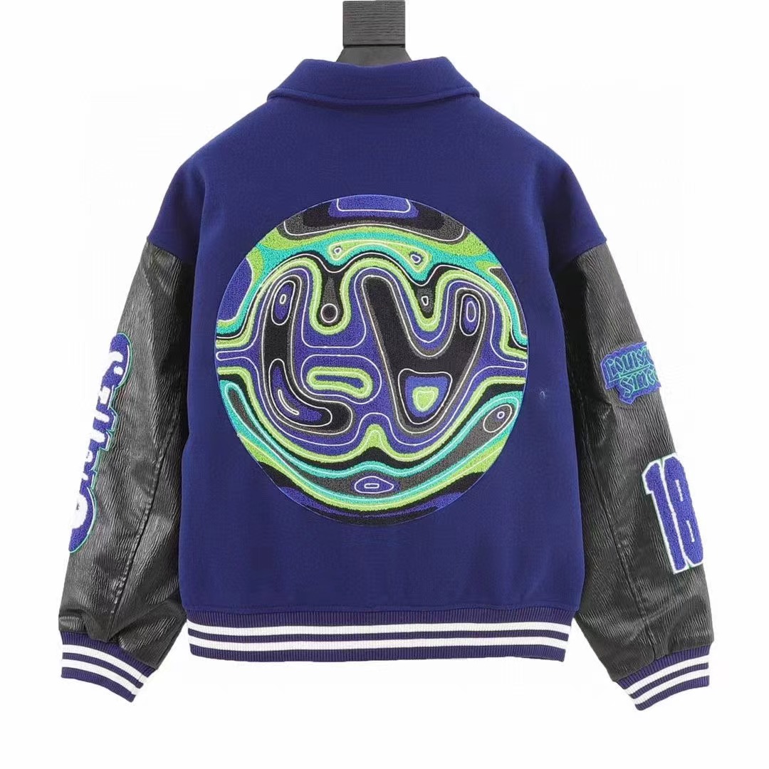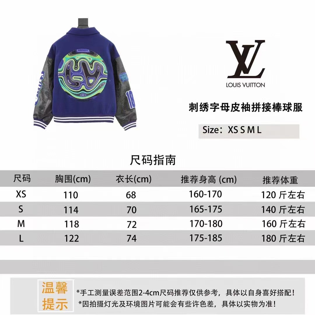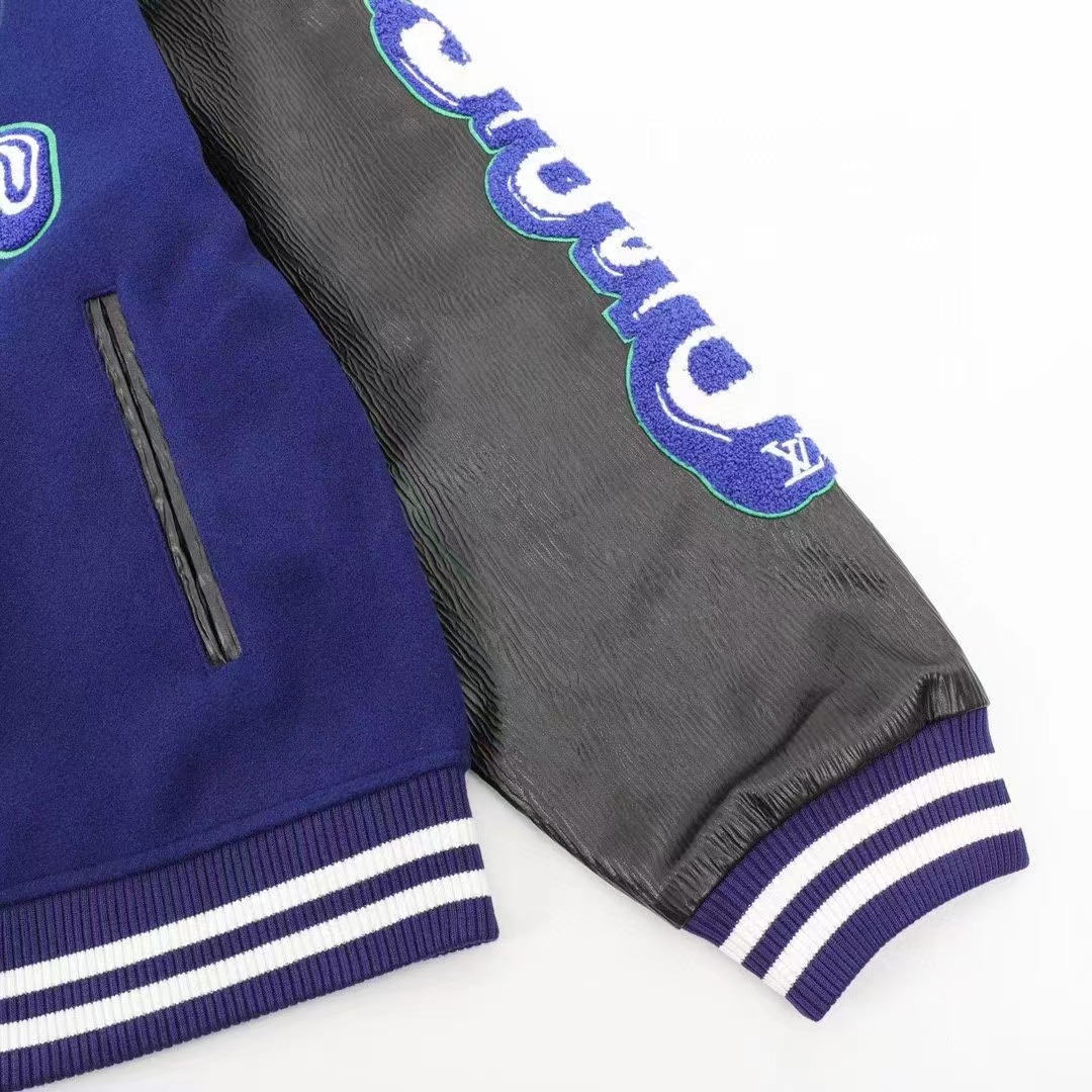 Louis Vutton路易威登 刺繡字母皮袖拼接棒球服外套