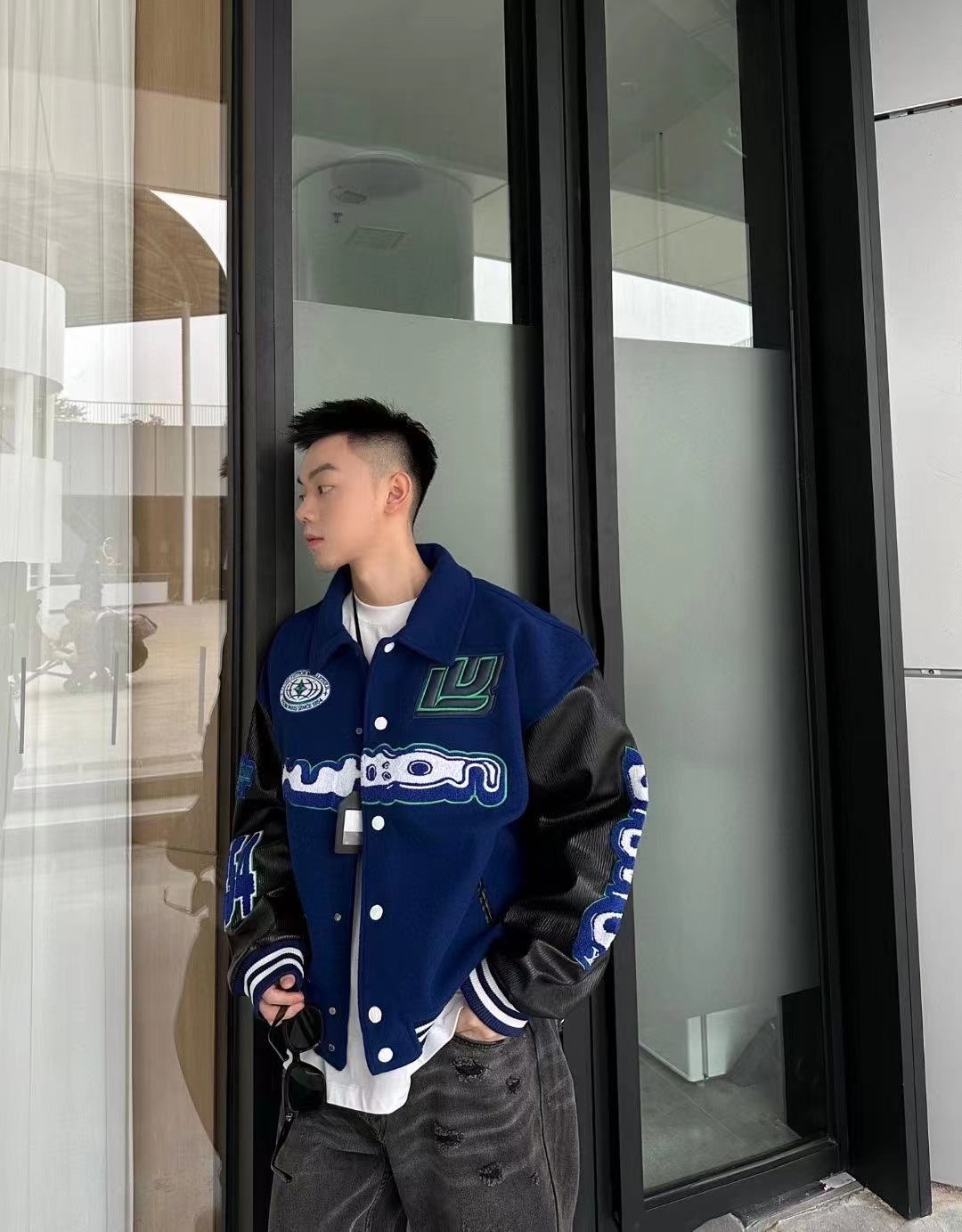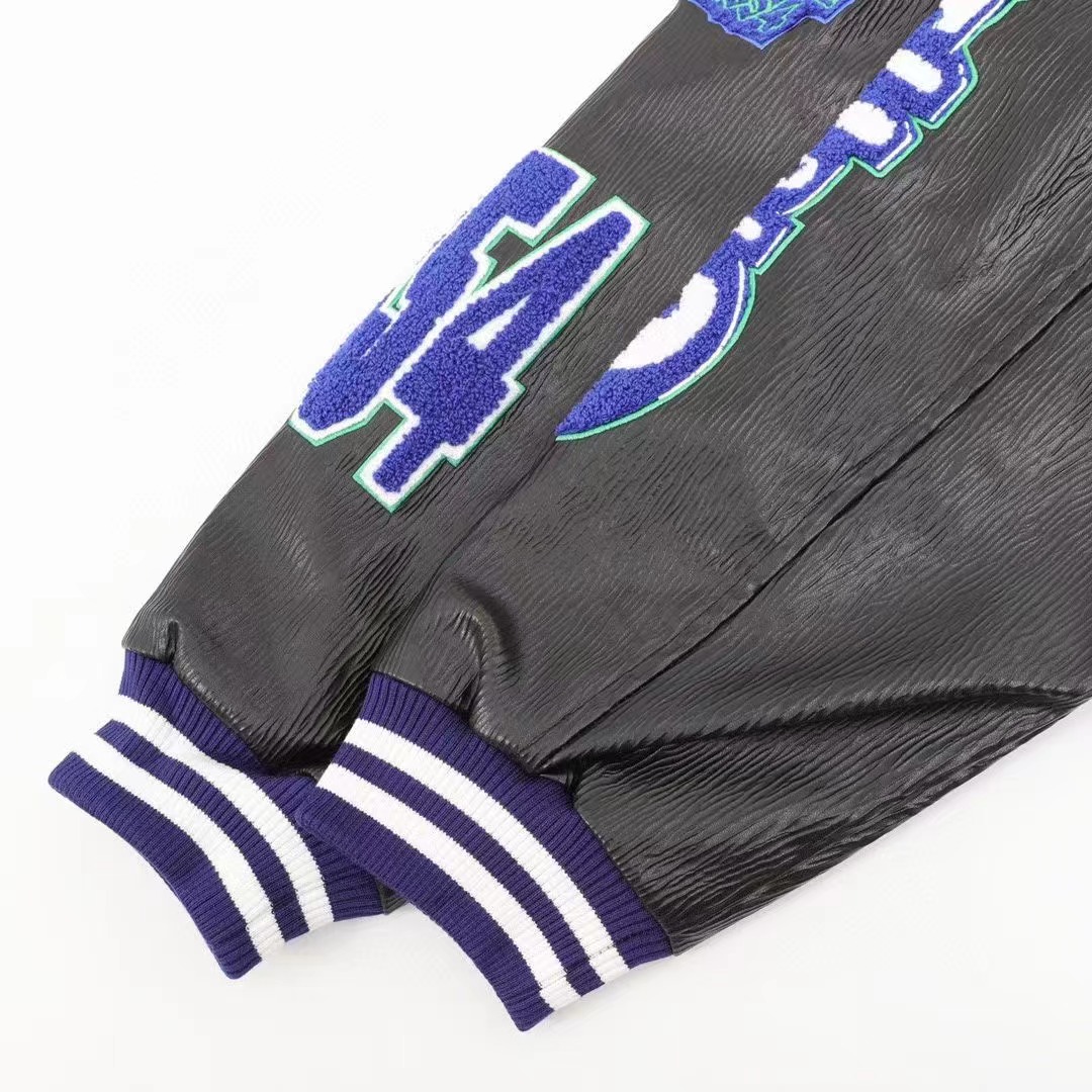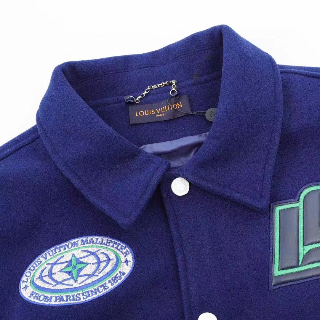 Louis Vutton路易威登 刺繡字母皮袖拼接棒球服外套