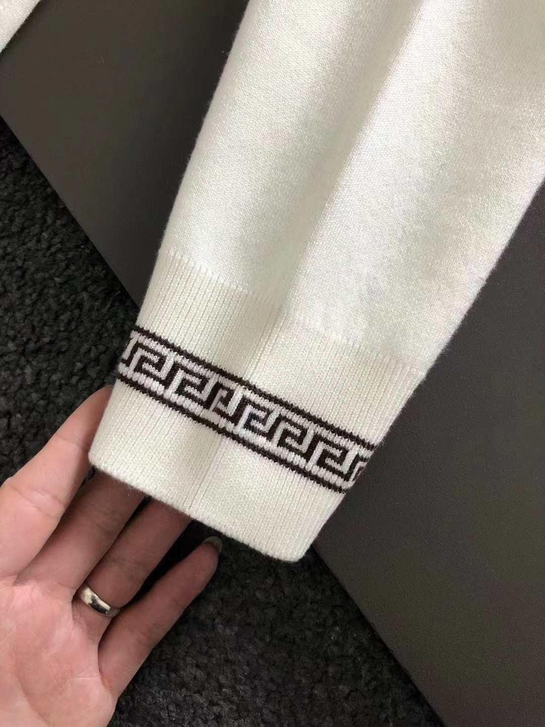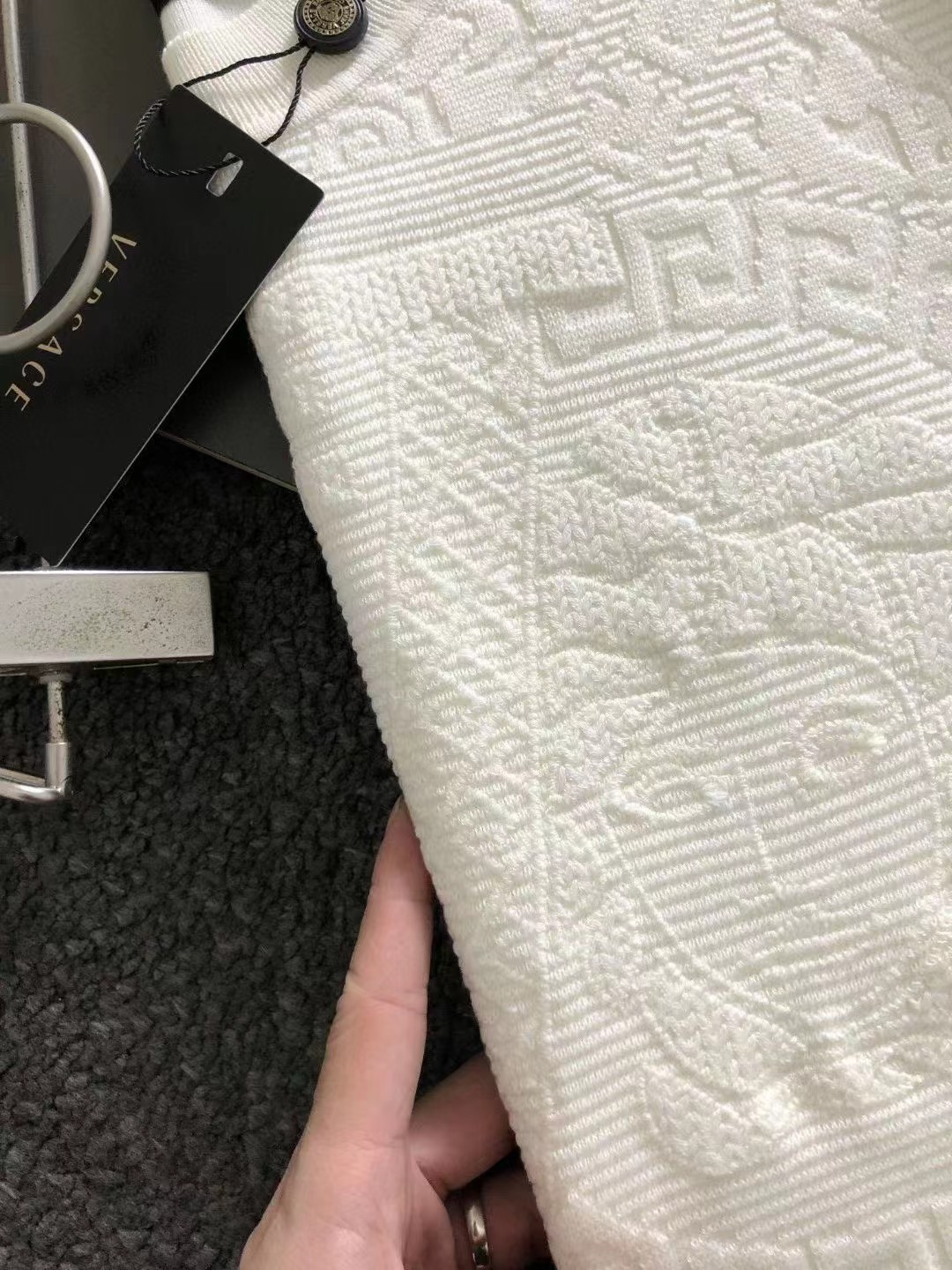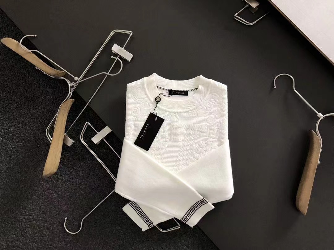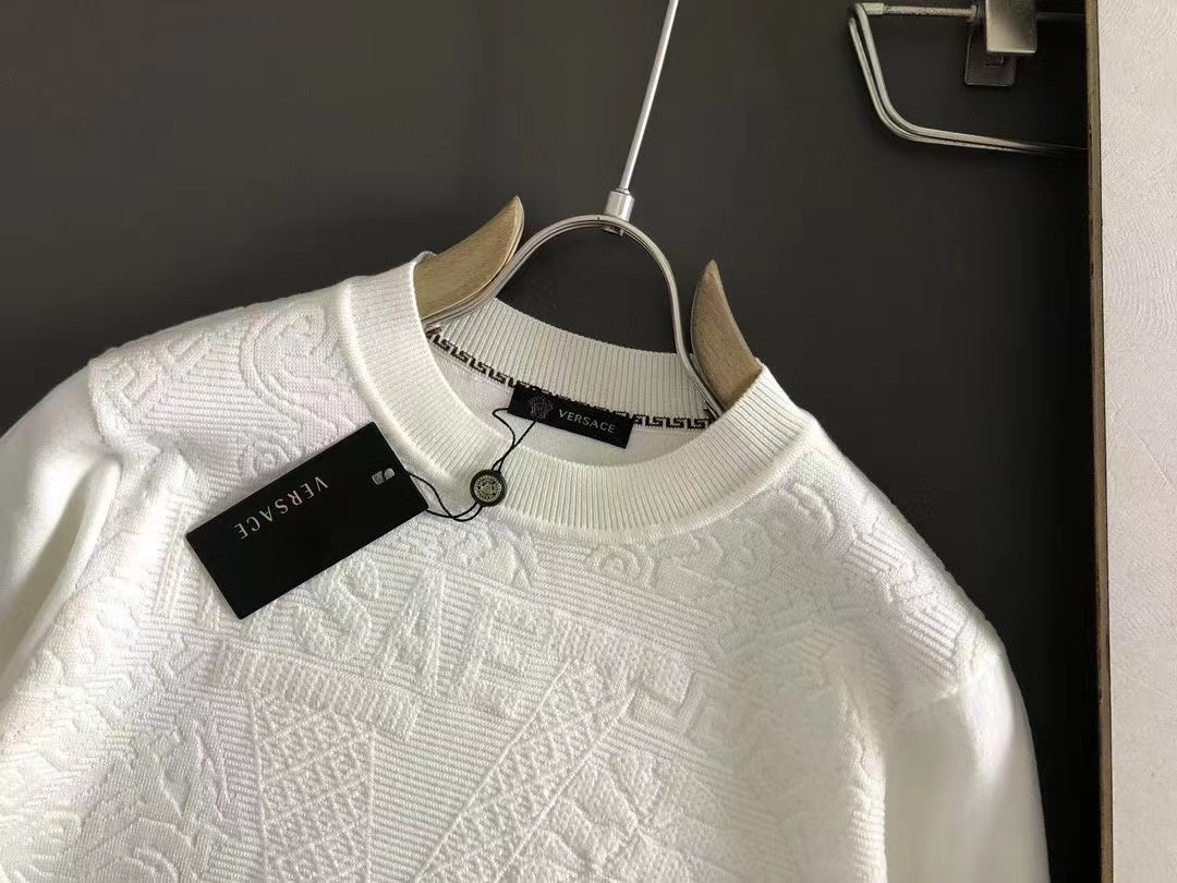2023秋款專櫃進口私貨,白色提花立體浮雕美杜莎人物提花設計圓領針織羊毛衫*純白融合粗針針織衫專櫃款時尚不失奢華 品質毋庸置疑 上身效果超贊,奢華官網同款 款式💂🏿專櫃尺碼M-xxxl