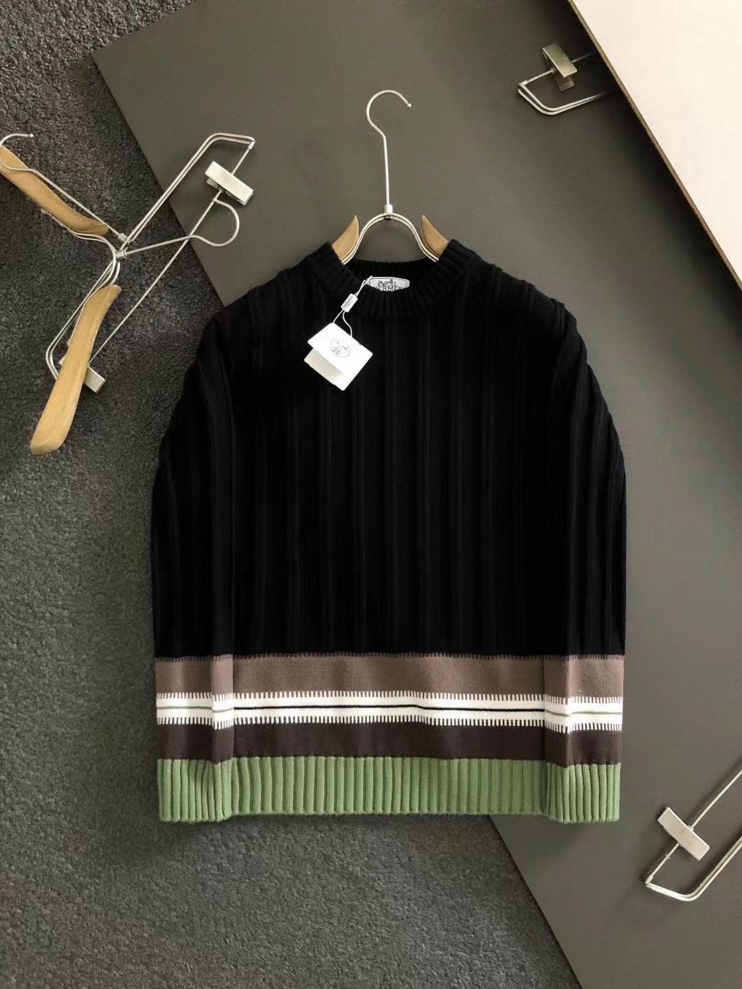2023SS秋冬新款黑色多色拼接粗針厚實羊毛圓領羊毛衫,原版輔料貿易公司渠道稀出,同步官網發售2023最新有致系列,簡約大氣的設計氣質感爆棚
