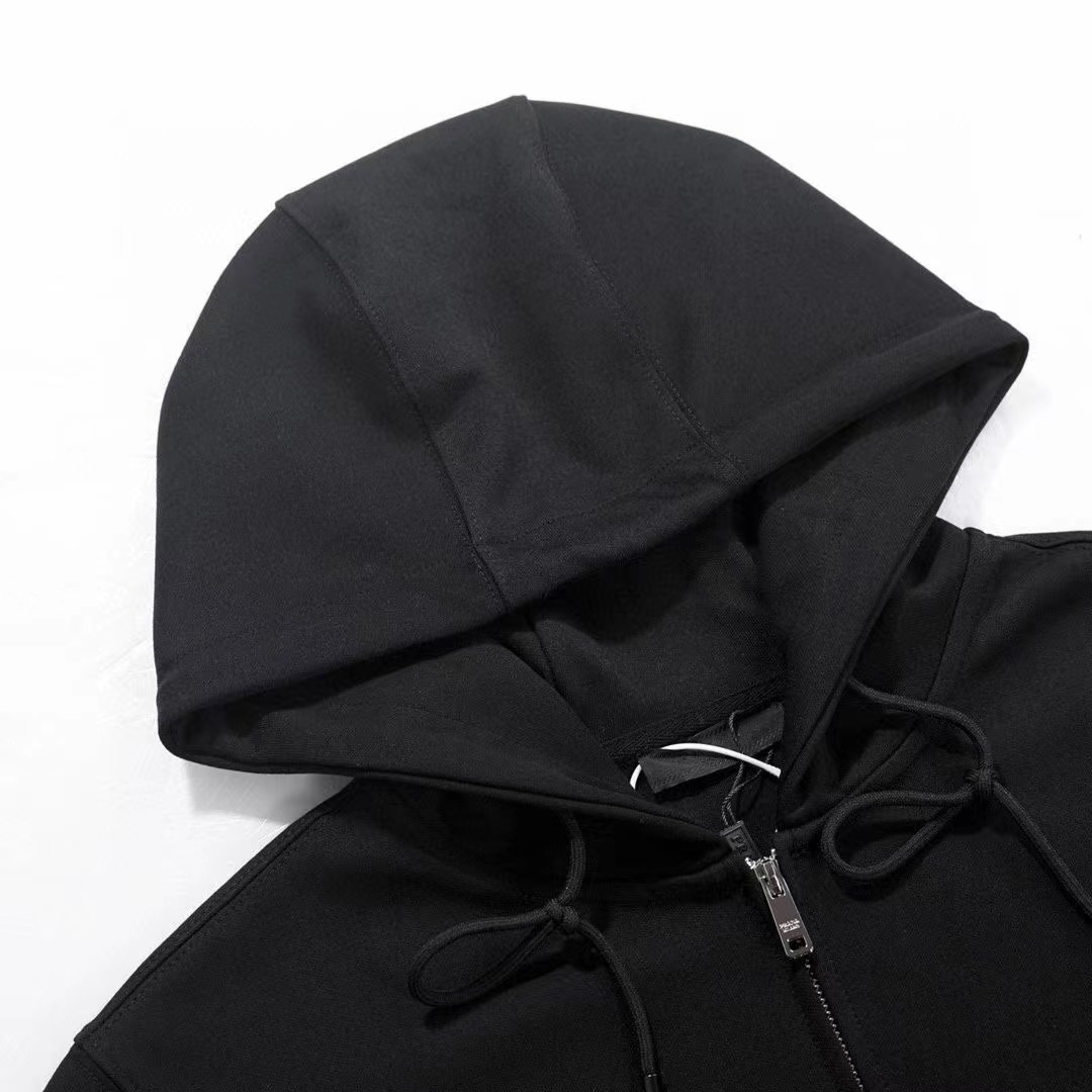- PRADA官網款黑標經典款三角標連帽開衫外套