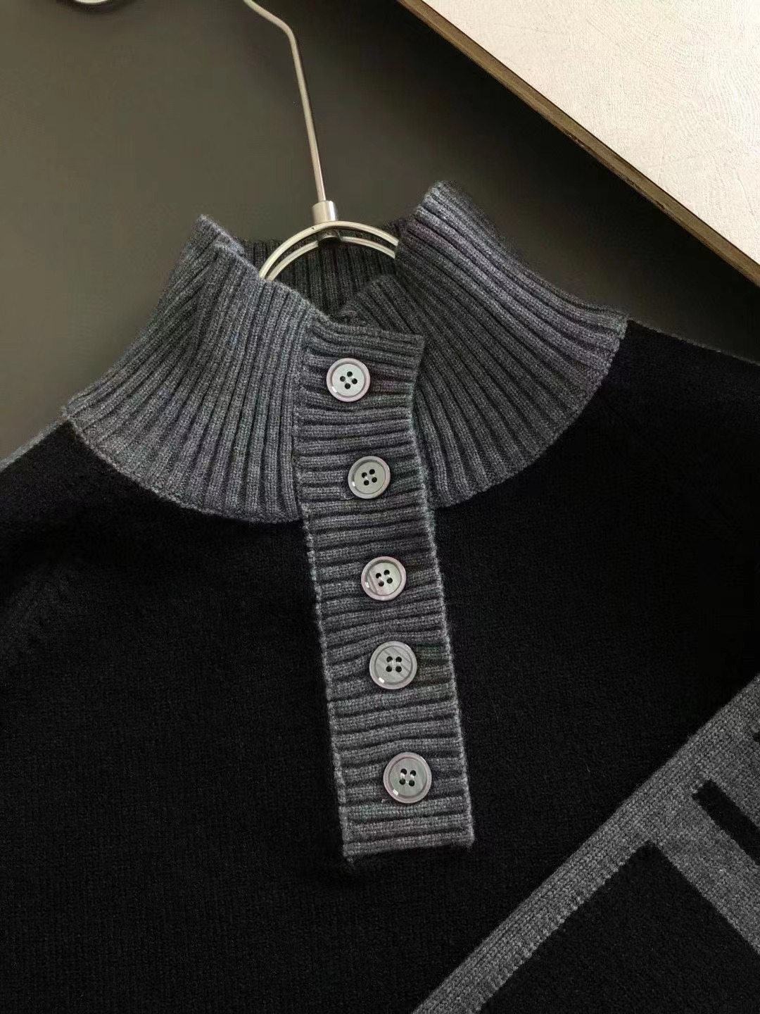 2023秋冬專櫃進口私貨,原廠黑灰拼色翻領厚實羊毛衫,潮流飾品融合專櫃款,時尚不失奢華 品質毋庸置疑 上身效果超贊,奢華官網同款 款式💂🏿專櫃尺碼M-xxxl