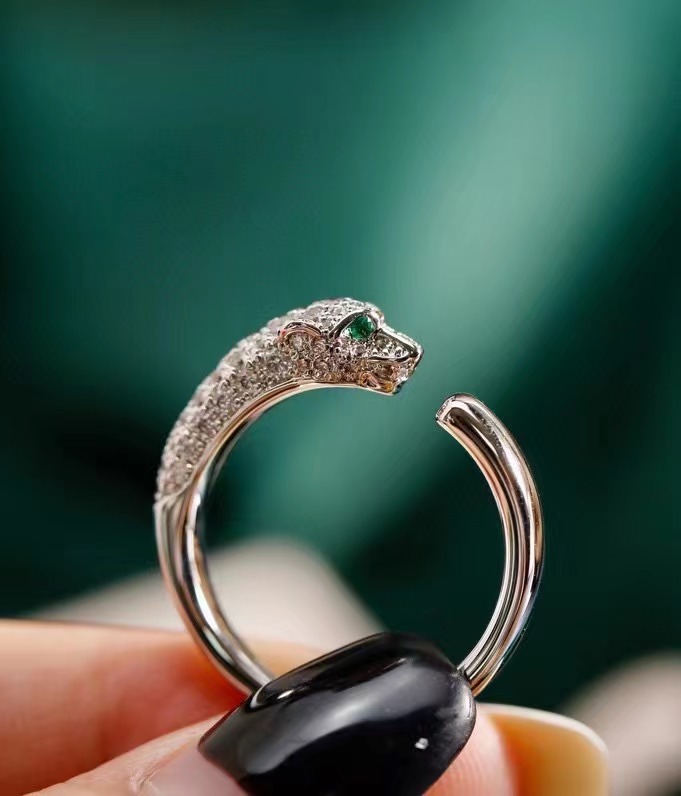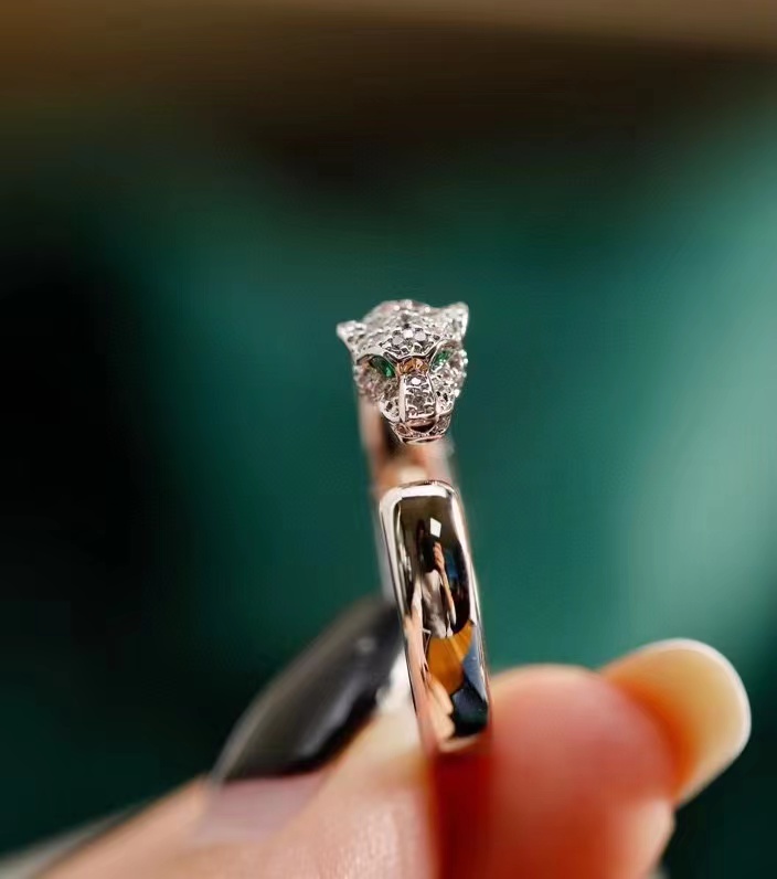 把美洲豹最優美的身姿臥於您的玉指,是不是很有趣?它更是一個藝術作品,為生活增加色彩,美洲豹是卡地亞品牌的標識性動物,卻每一個作品都不樣的神態身姿眼神!碼數6-8碼,高品質,v金厚金電鍍,鉆石手鑲