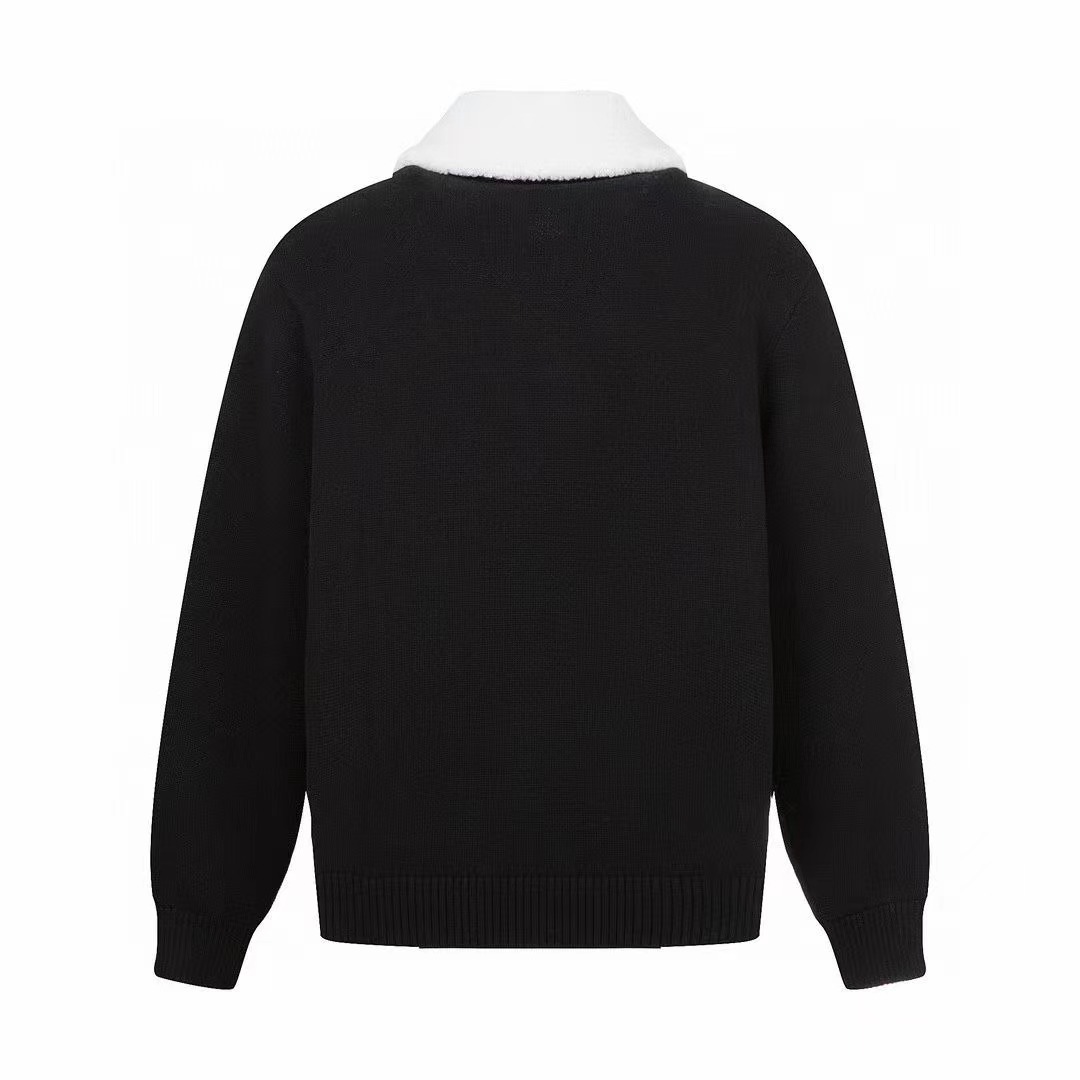 本款針織綿羊毛束腰夾克出自滑雪系列,令閑適廓形碰撞柔軟可拆卸羊毛皮衣領,再以左胸裂紋效果 1V lce 刺繡貼飾點明系列身份。