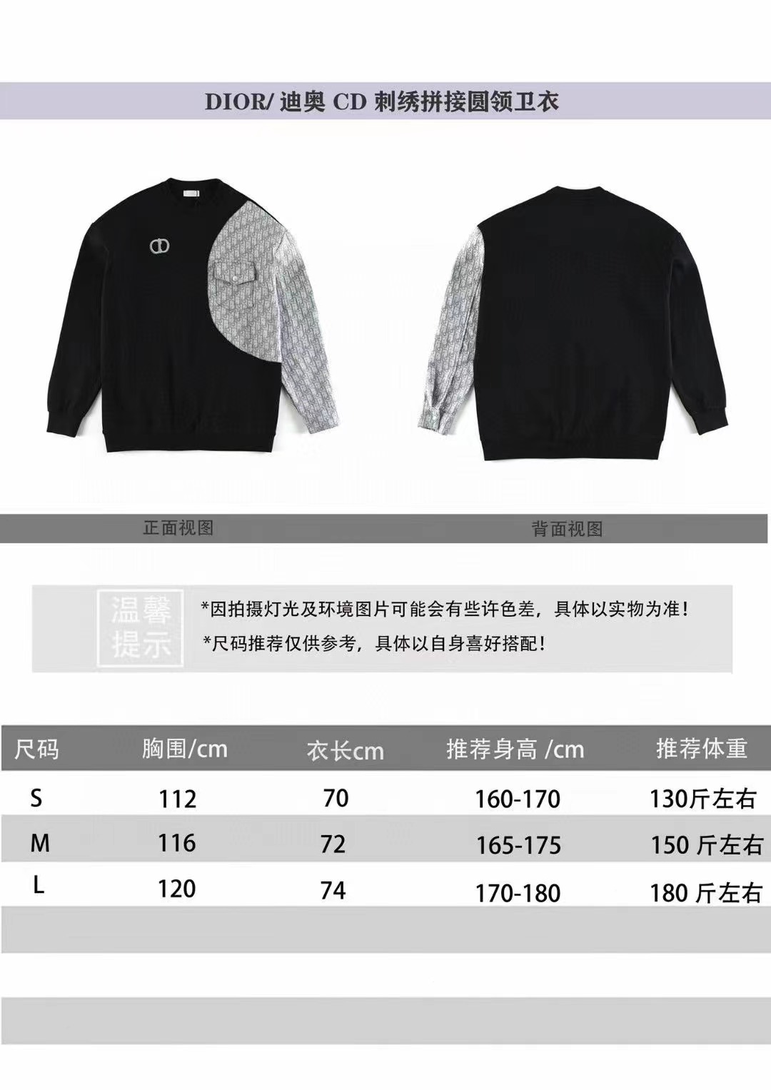 DIOR/迪奧 CD刺繡拼接圓領衛衣