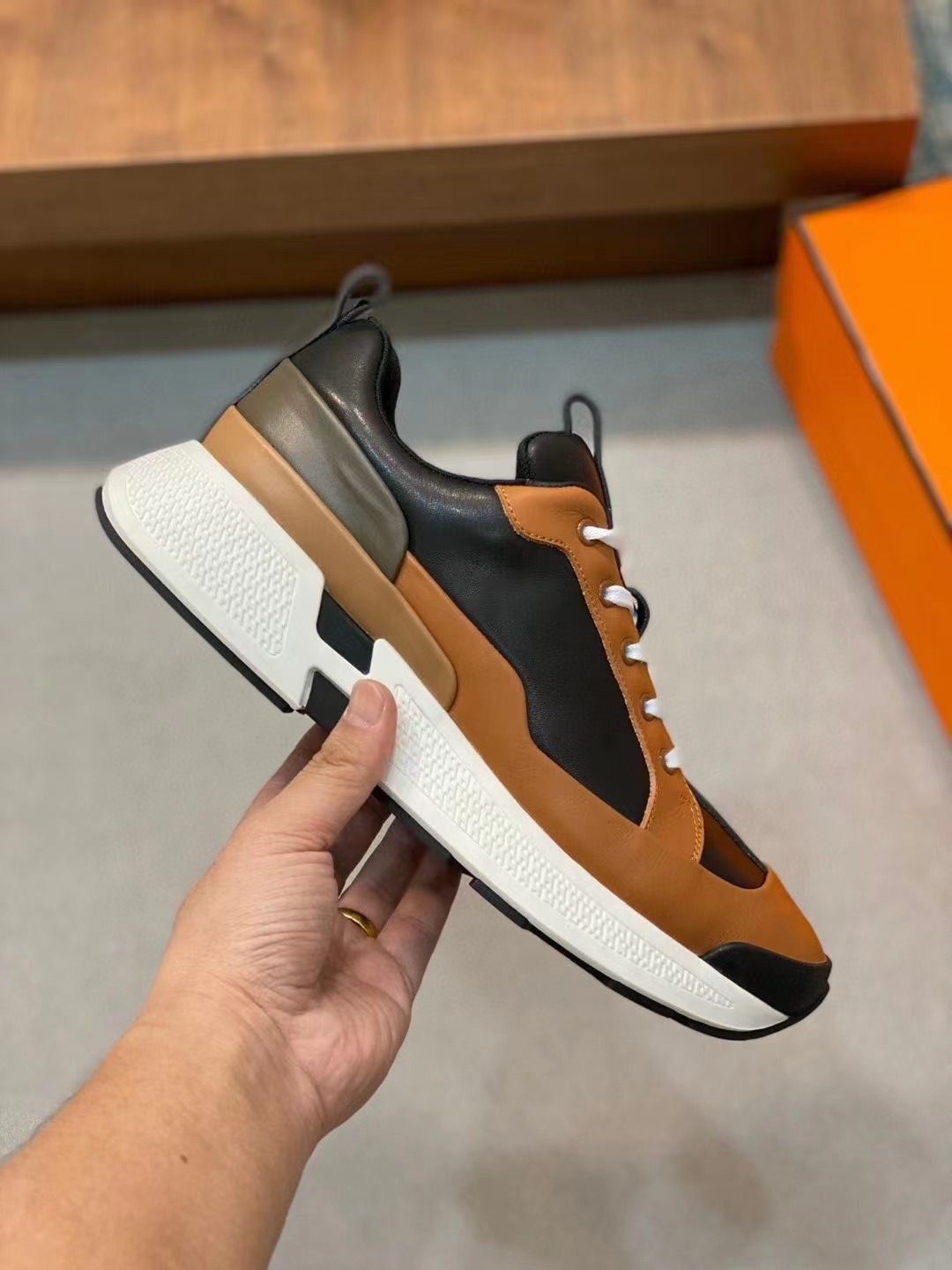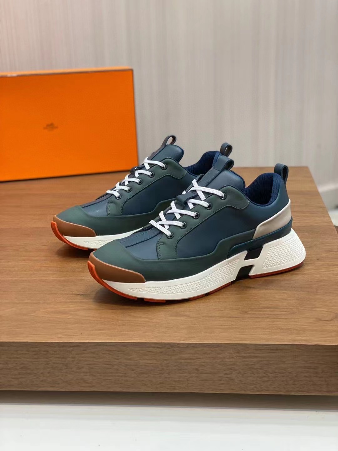 H 原单,男士休闲之履运动鞋结合高科技牛皮,在橡胶鞋底上饰以夸张“H”字母,斜体设计和鲜艳色彩展现活力,