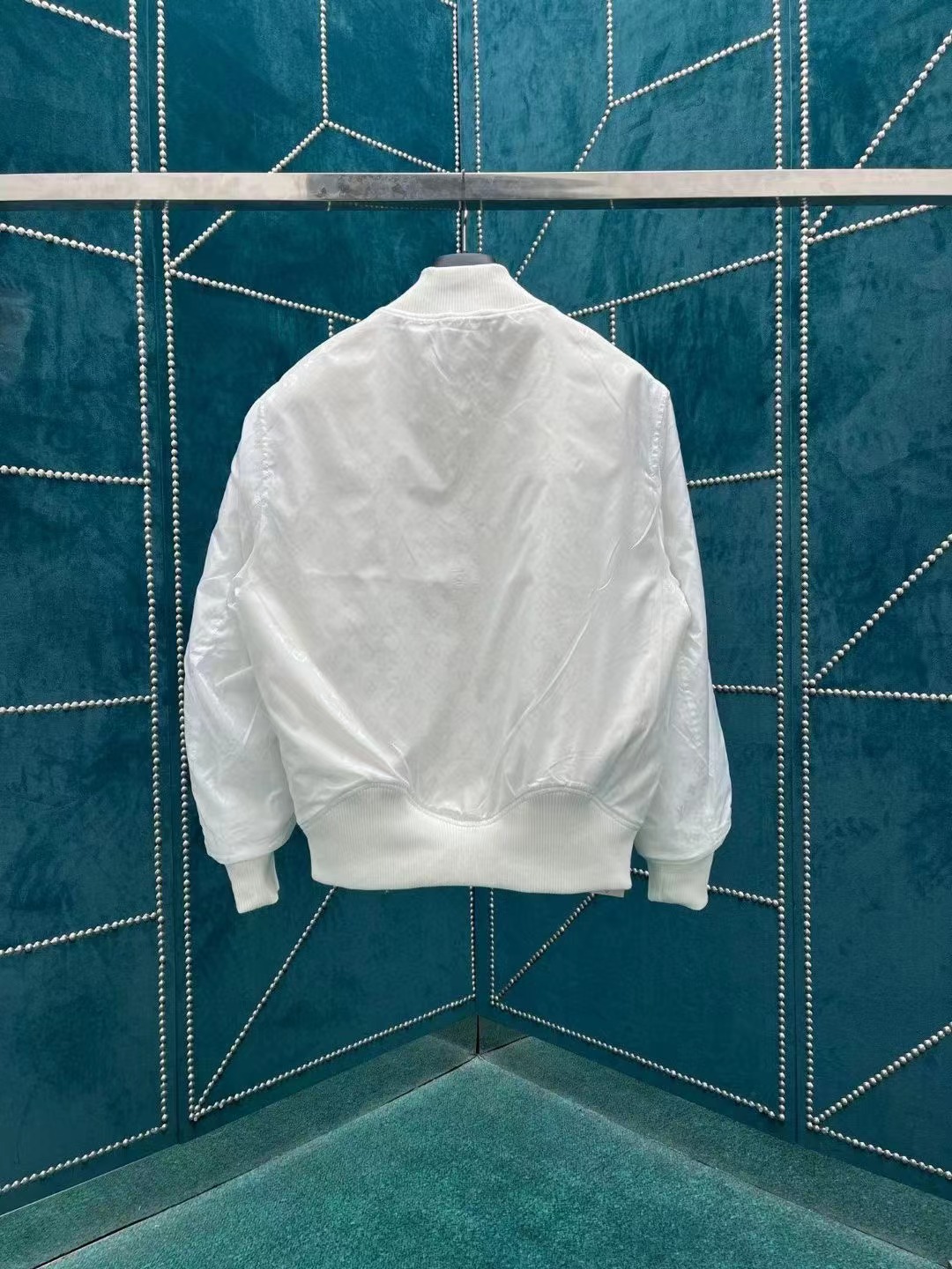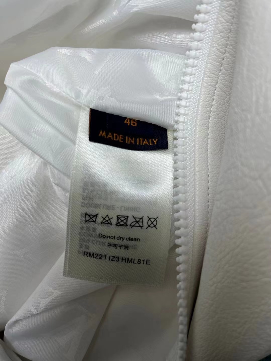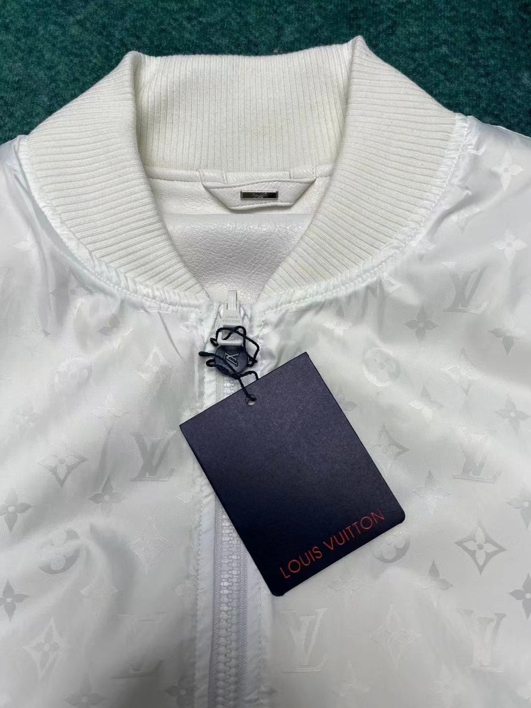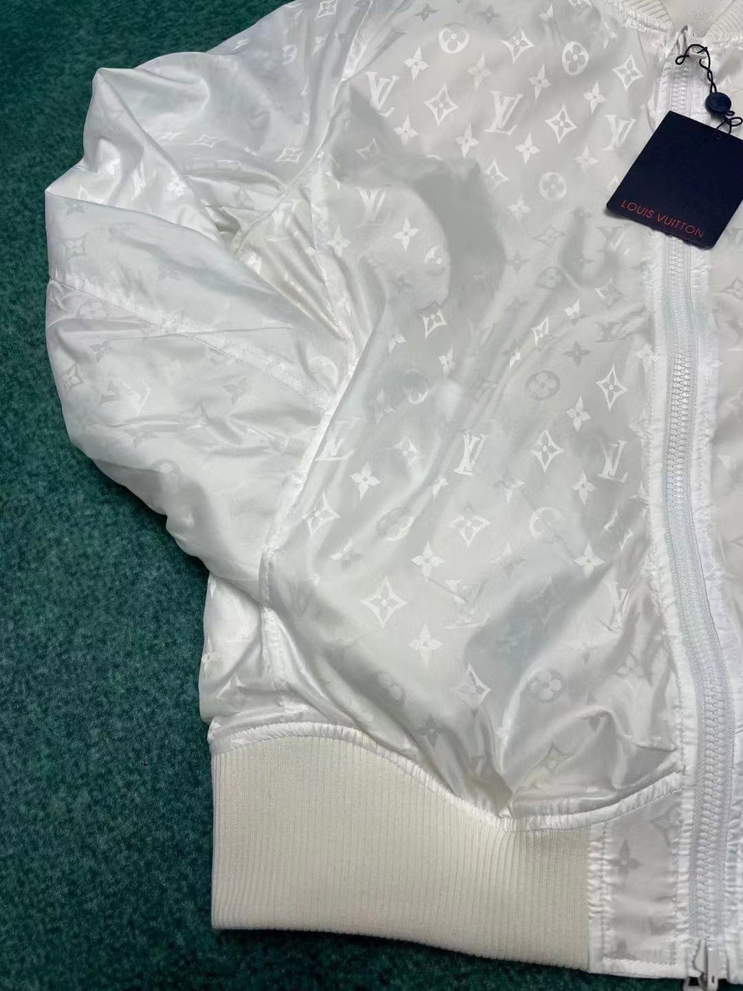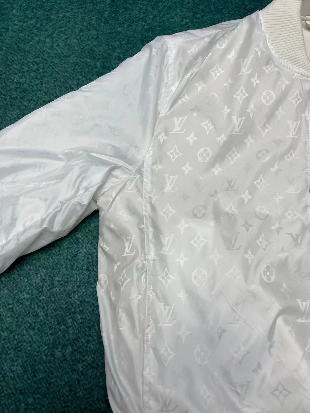 另一面爲光滑面料描繪 Monogram 圖案。波浪形下擺和袖口增添別致新意