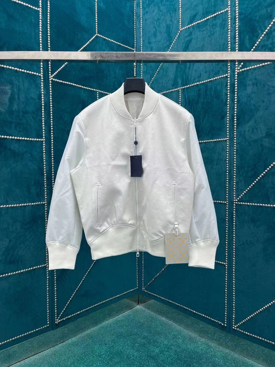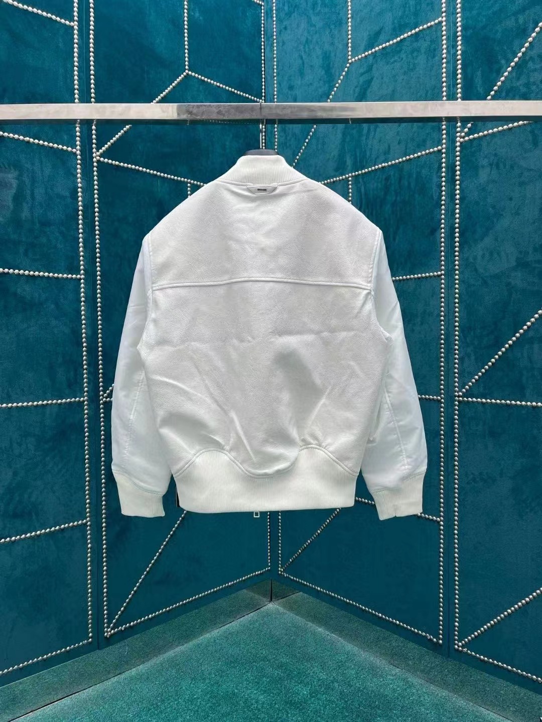 新款皮革和錦綸雙面束腰夾克一面拼接皮革衣身和科技材質衣袖,