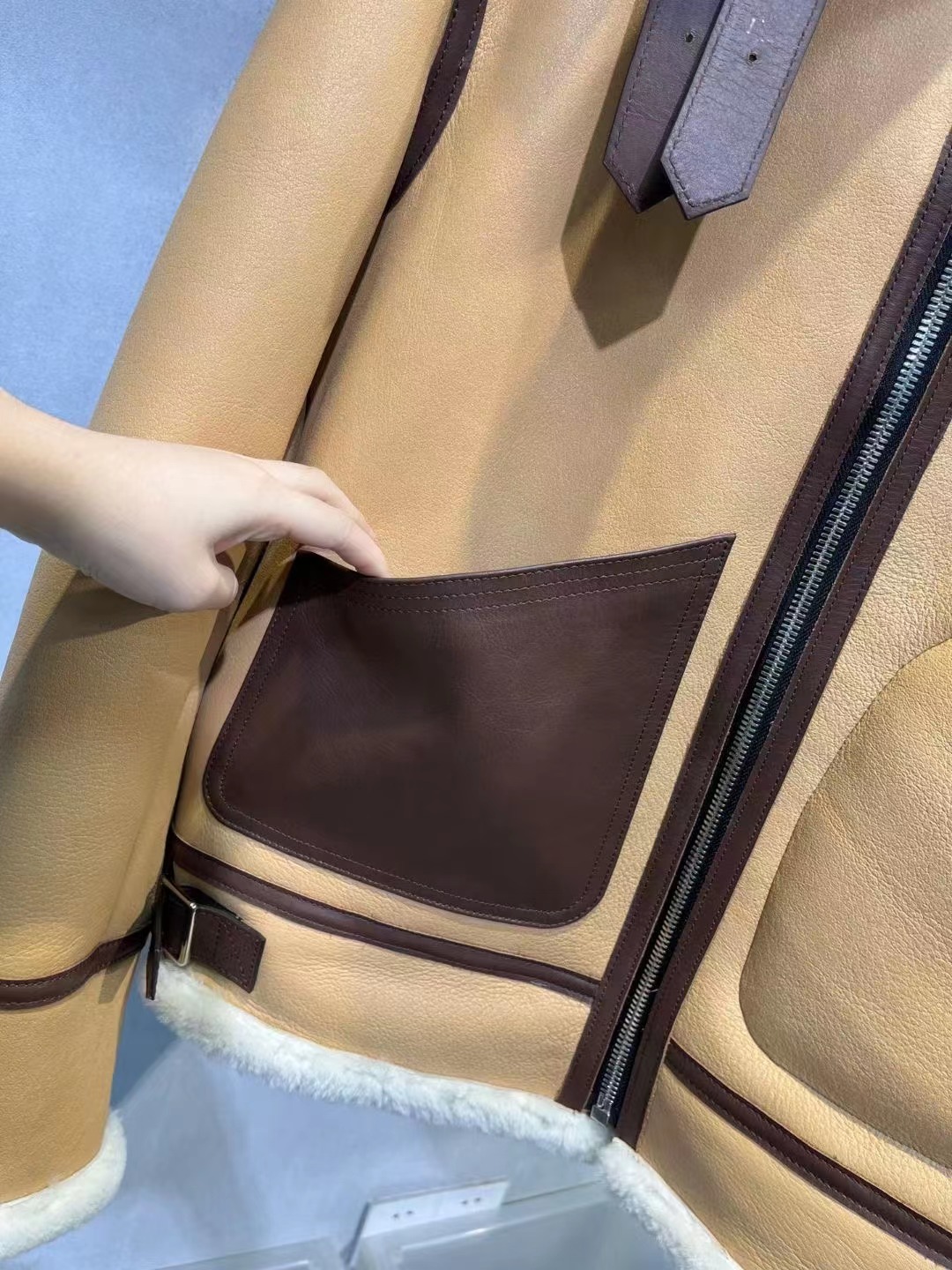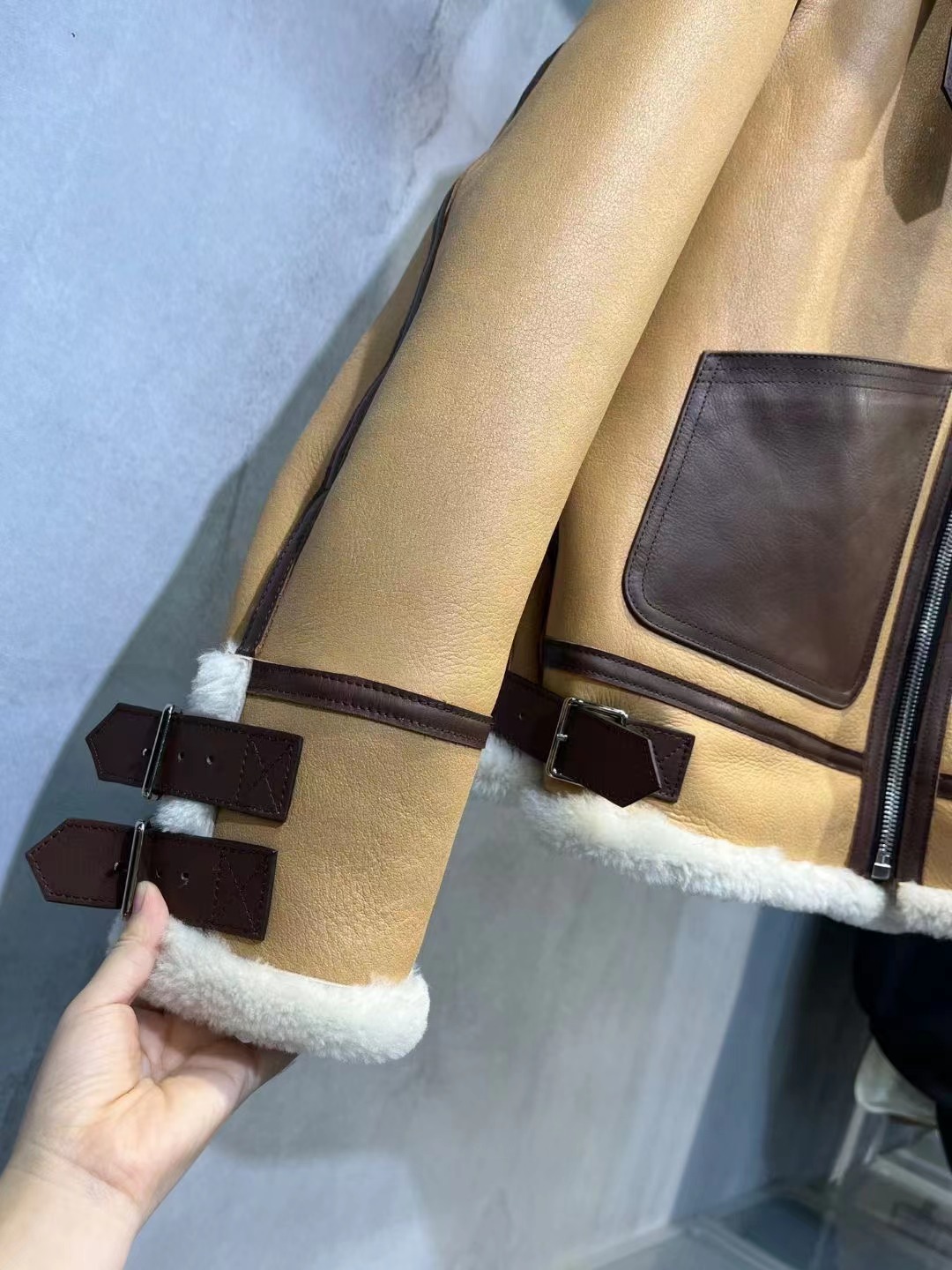 皮料定制羊皮皮毛一體複合牛皮,一件衣服相當于2件衣服的我皮料,
