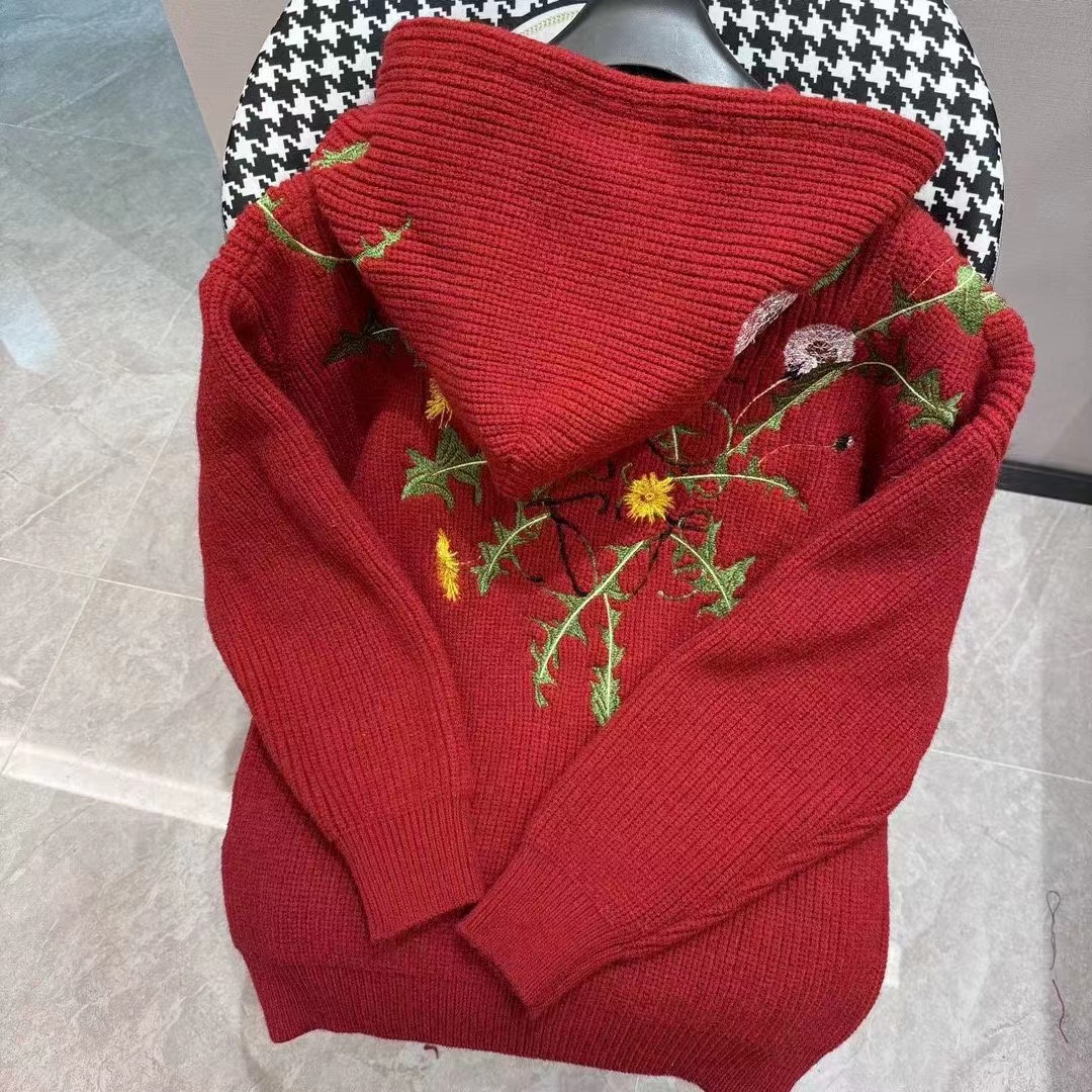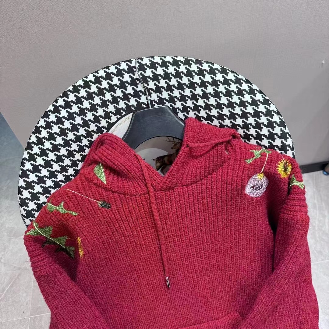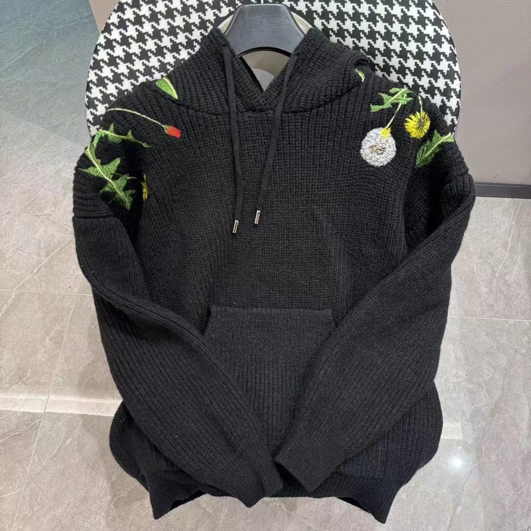 ss2024花卉刺繡抽繩連帽針織衛衣男女同款