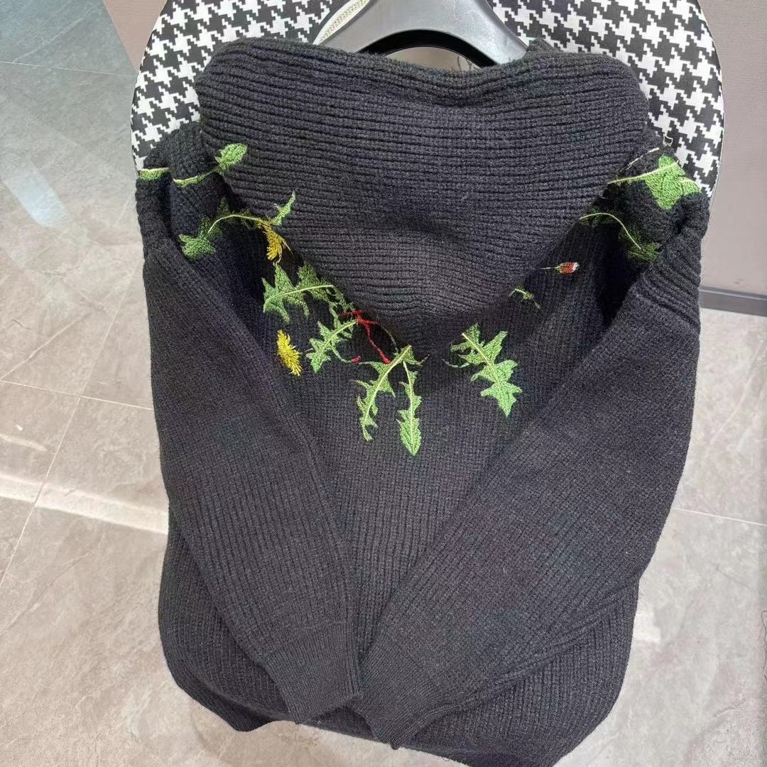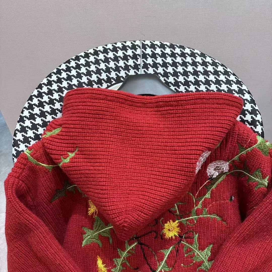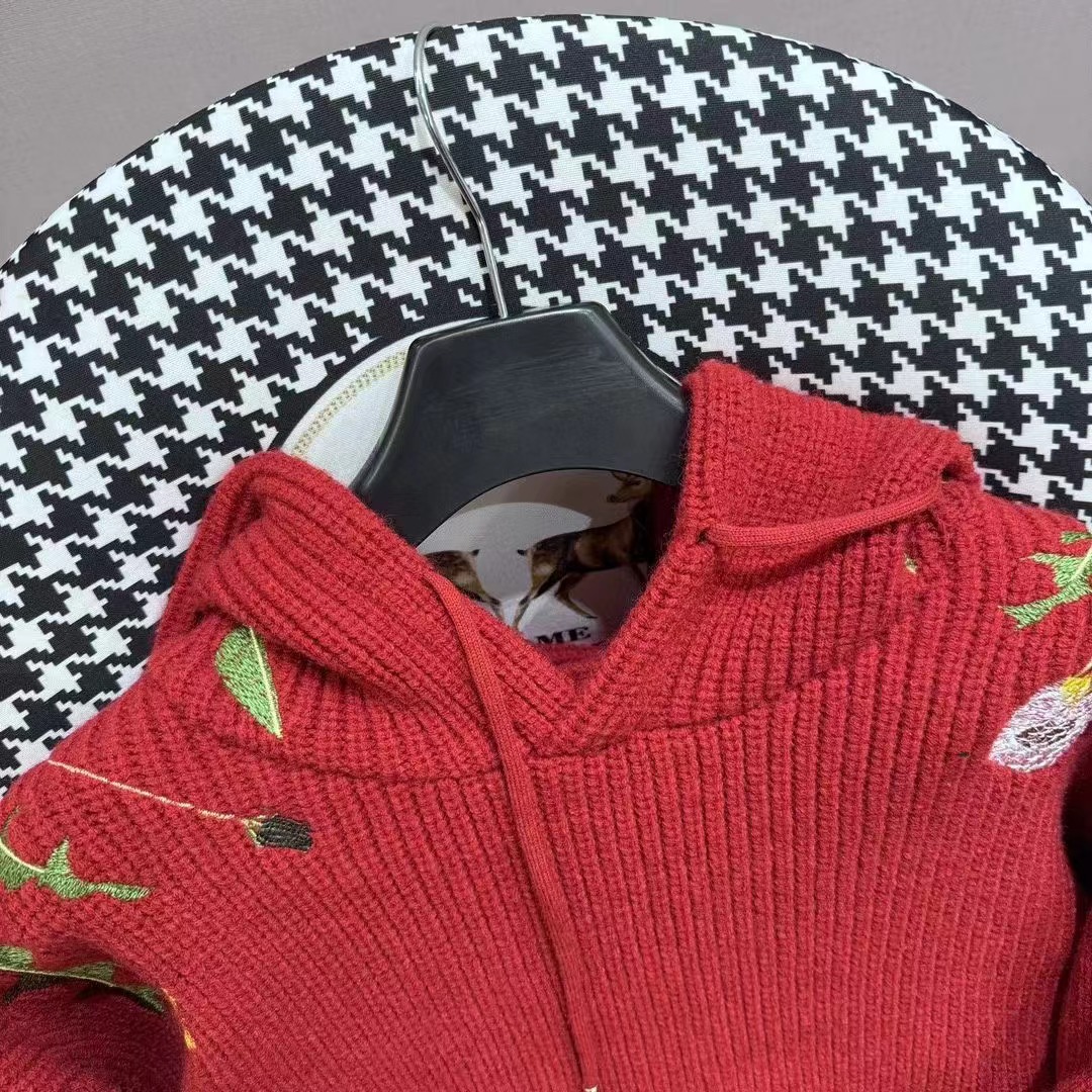 ss2024花卉刺繡抽繩連帽針織衛衣男女同款