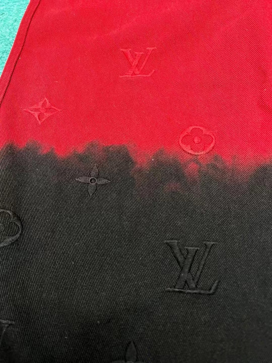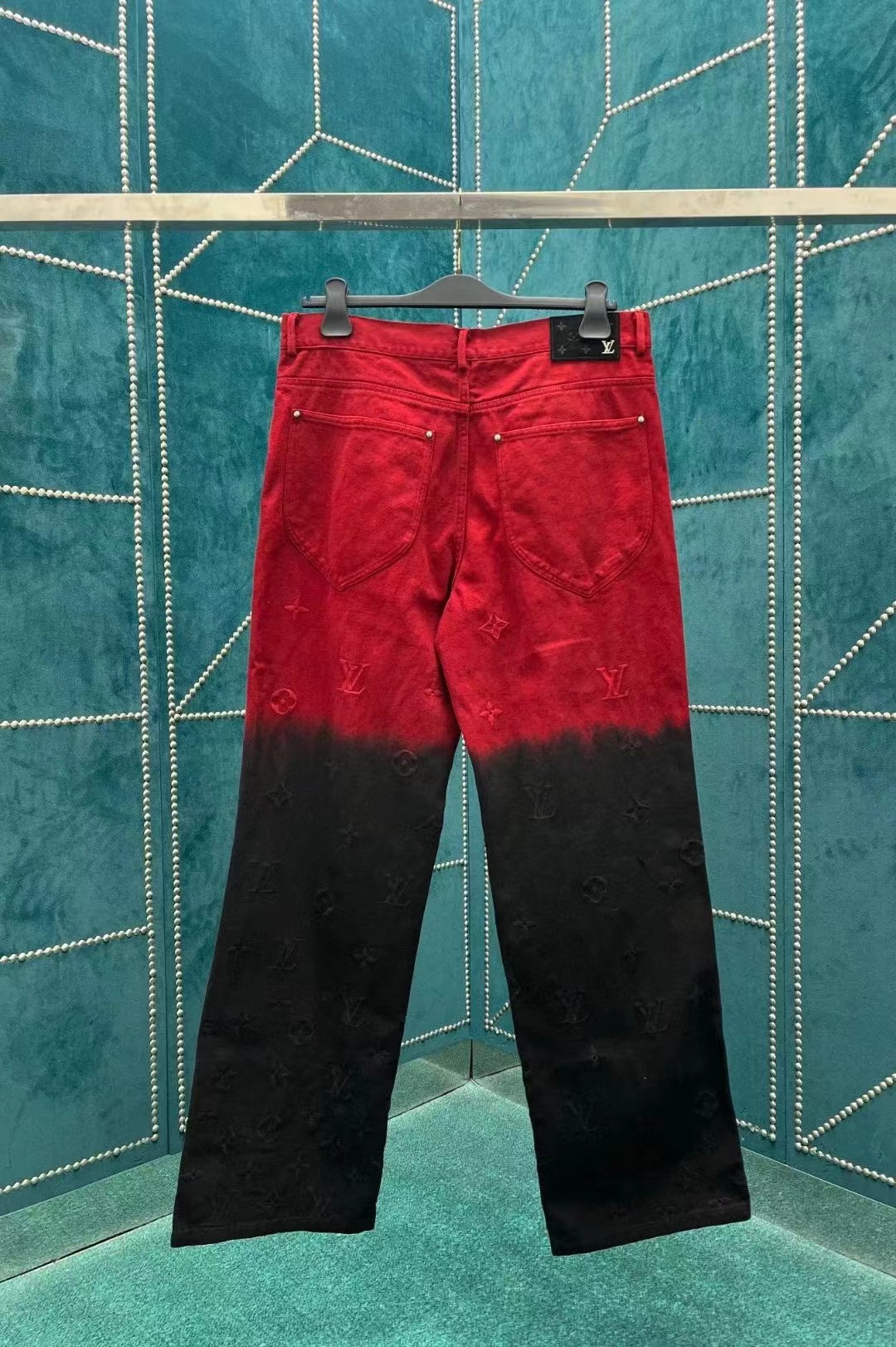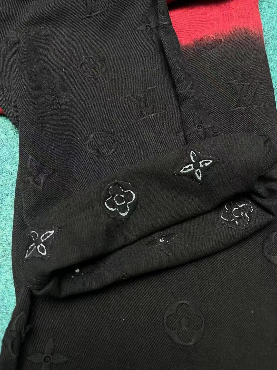 2024 LV 新款牛仔褲從北極光的奇幻色彩中汲取靈感,以紮染工藝描摹深邃夜空,于褲腿浮現 Monogram 漸變刺繡,