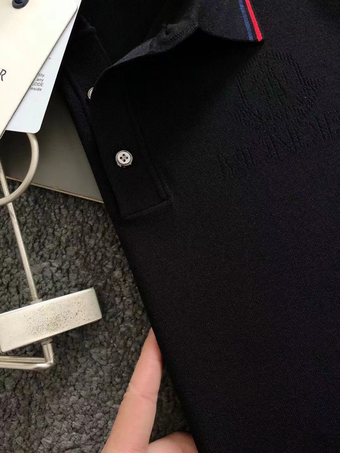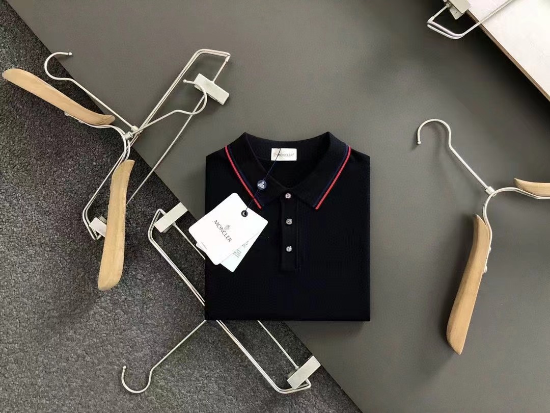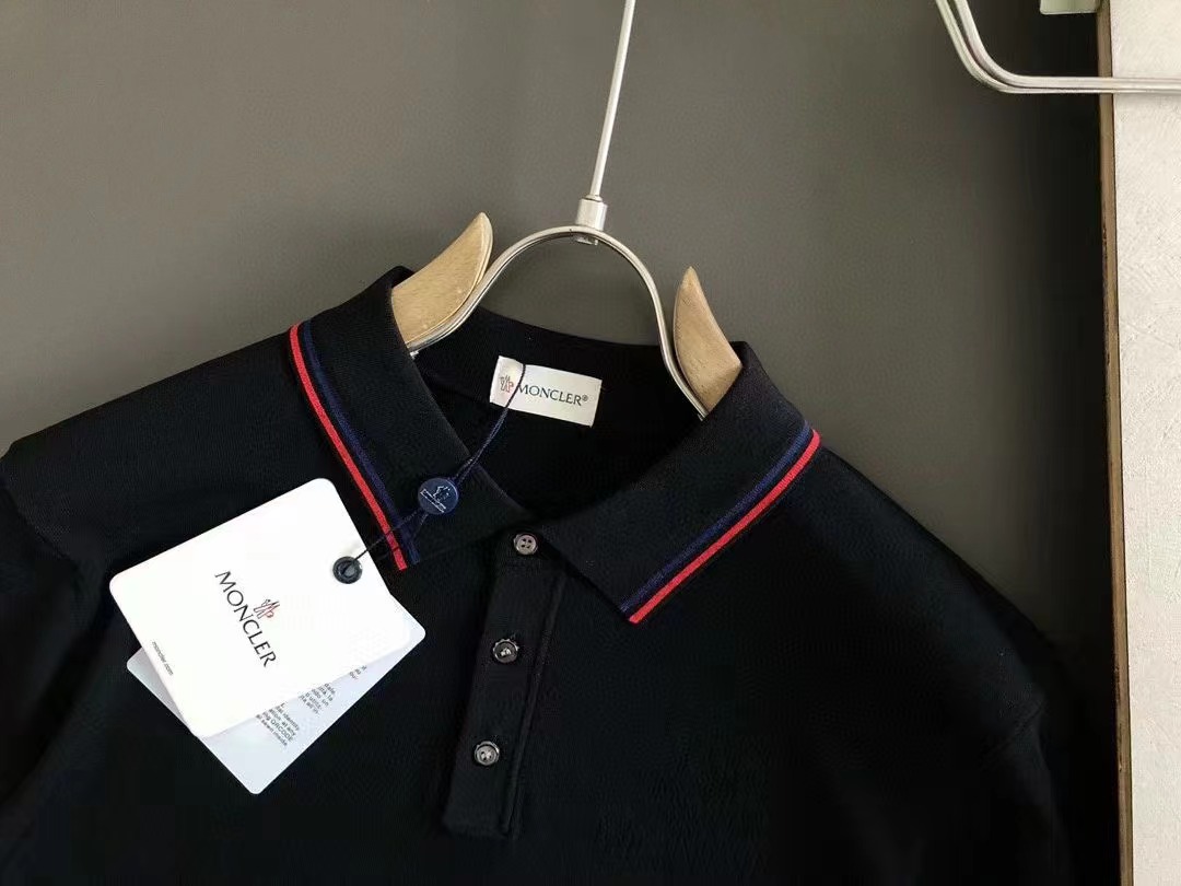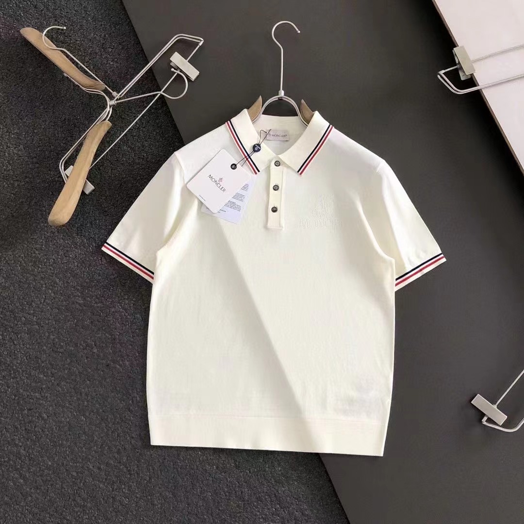 2024秋款頂級黑白雙色紅色線條提花小翻領進口私貨,高端重工伊立特黑白雙色百搭款針織短袖