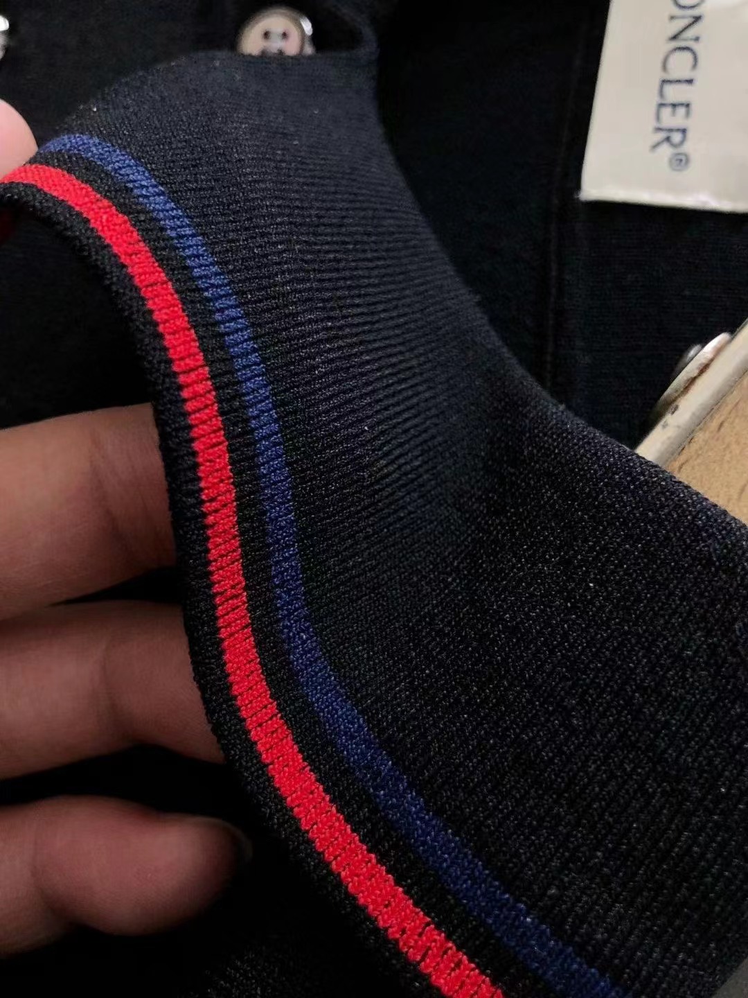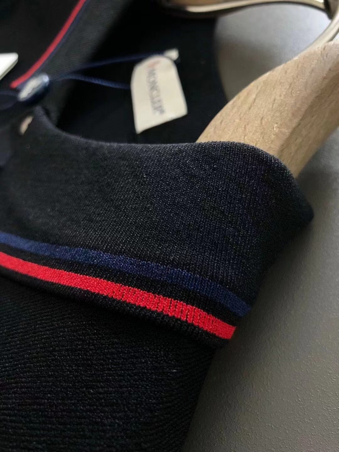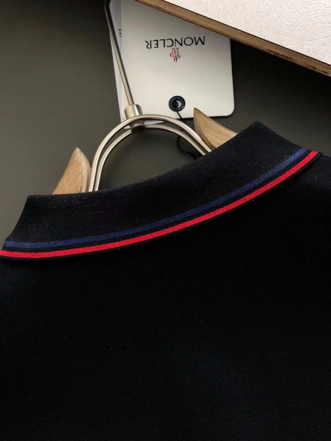2024秋款頂級黑白雙色紅色線條提花小翻領進口私貨,高端重工伊立特黑白雙色百搭款針織短袖