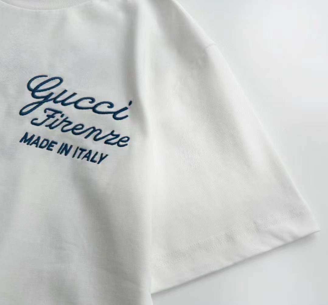 32支雙紗,100%棉成分,一等品縮水標准,Gucci 24春夏新品,前幅logo圖案印花。