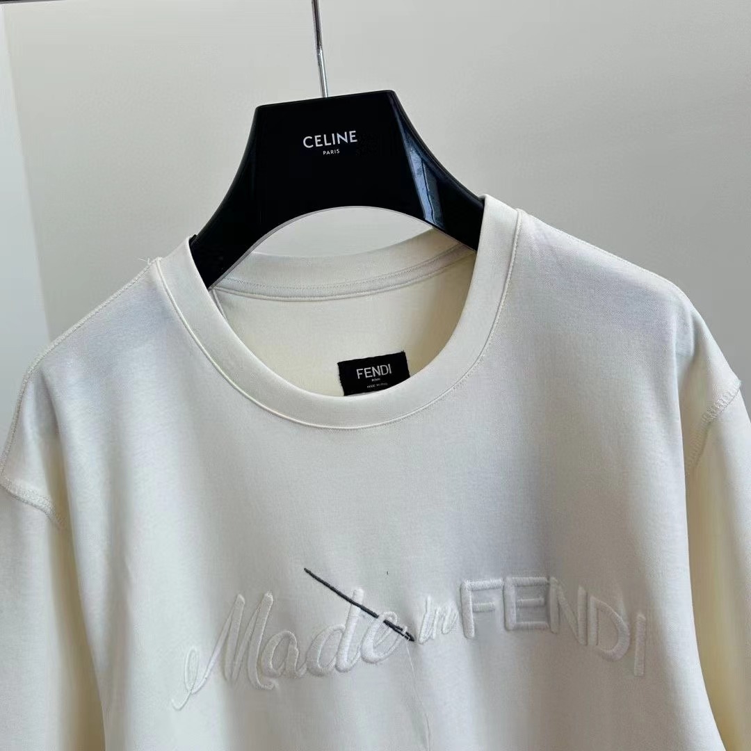 Fend*/芬迪 24SS春夏新款 穿針字母刺繡圓領短袖t恤