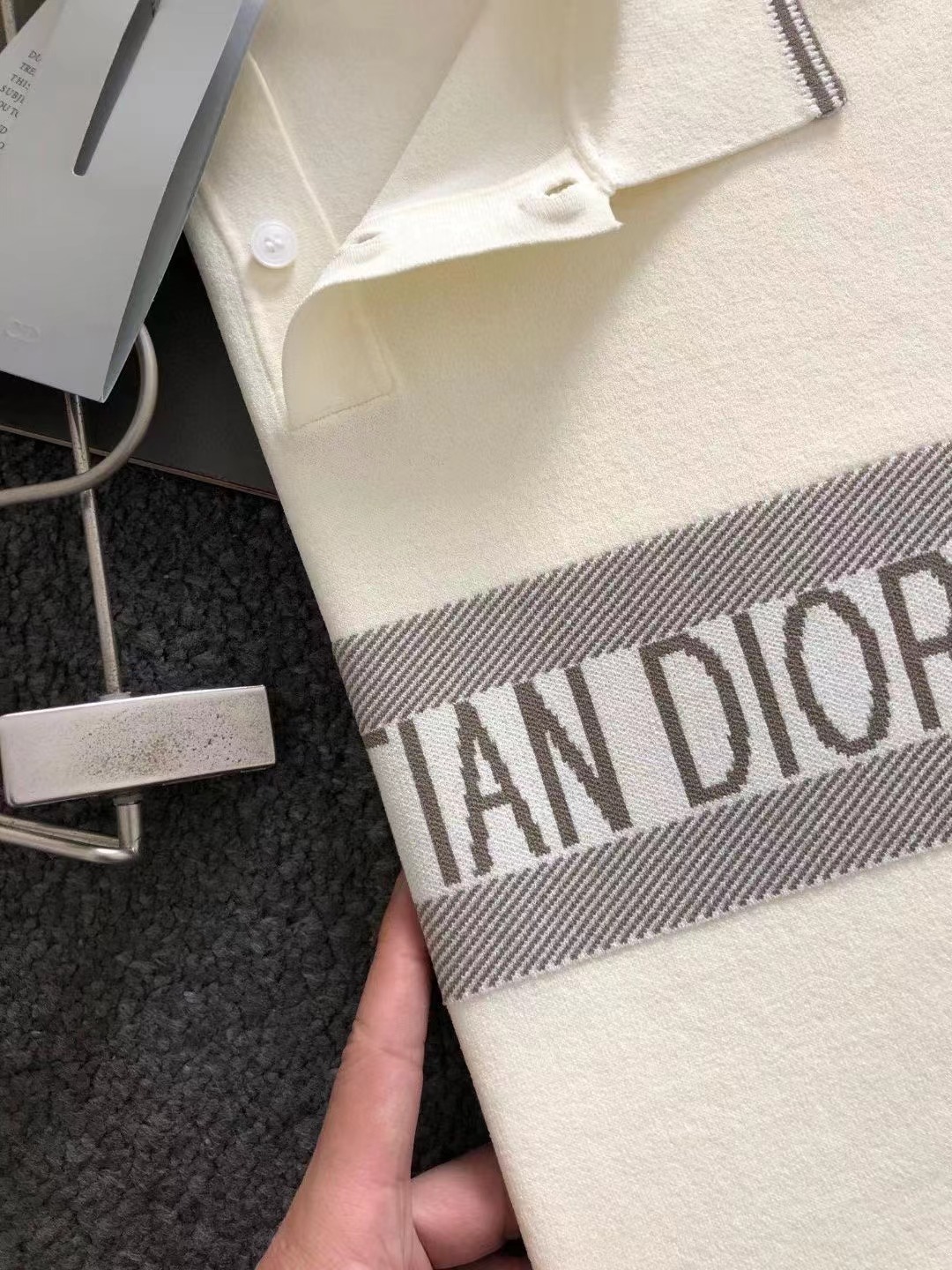 2024原單黑白雙色字母提花經典紋理伊立特百搭小翻領進口私貨,