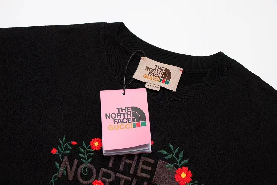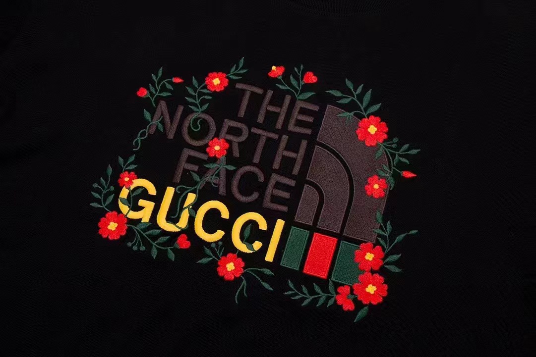 -GUCC& North Face 聯名款重工刺繡短袖T恤 以經典高熱度的聯名款徽標爲主題
