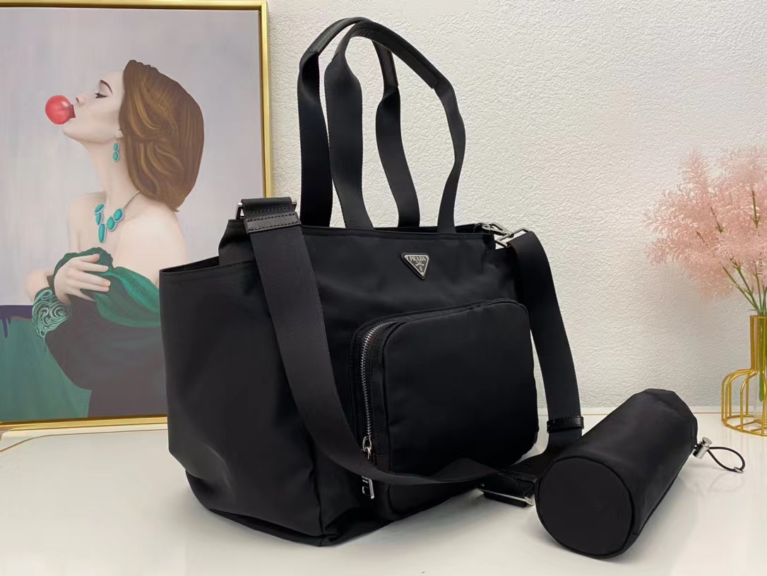 BR4102 【黑色】降落傘布媽咪包,帶墊子和奶瓶🍼套!大容量!