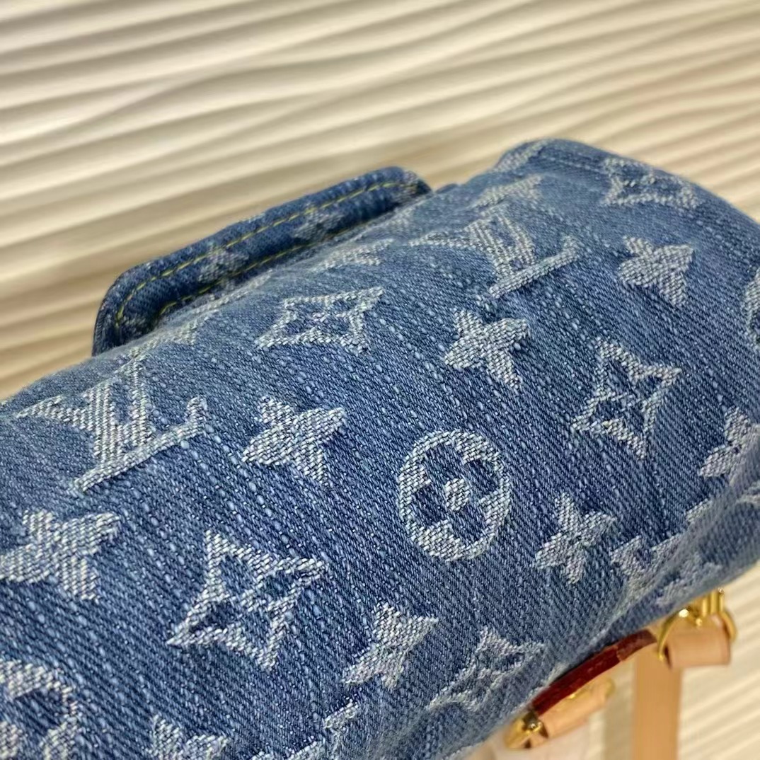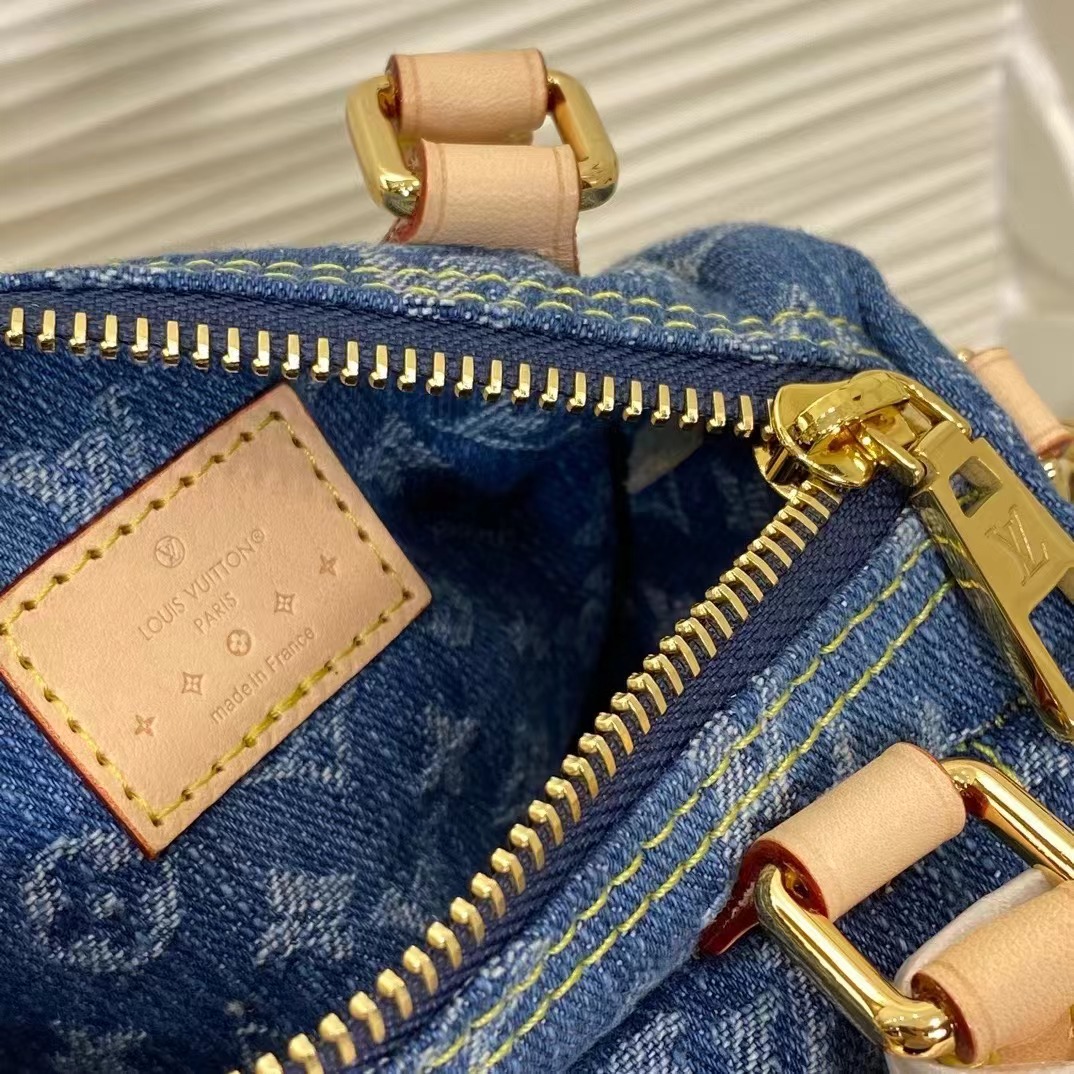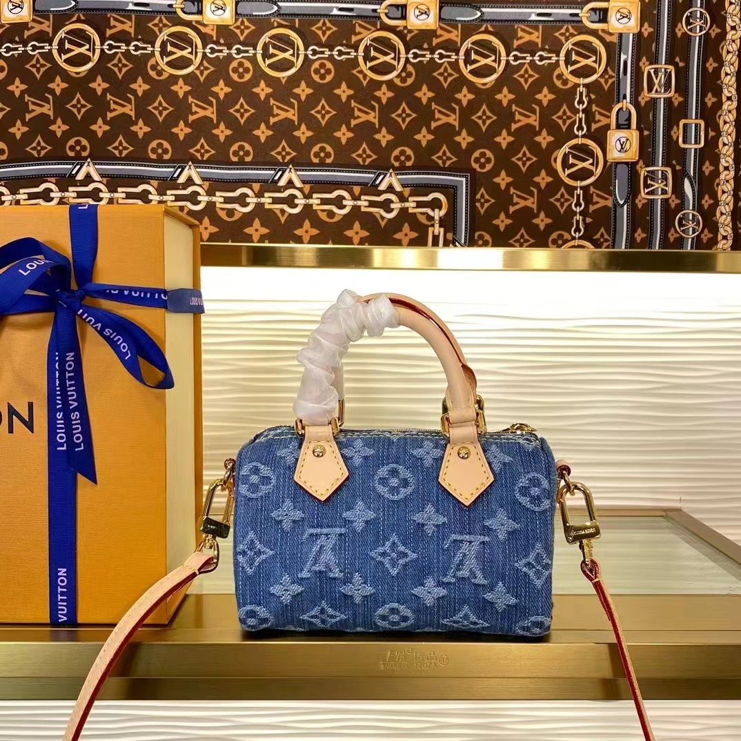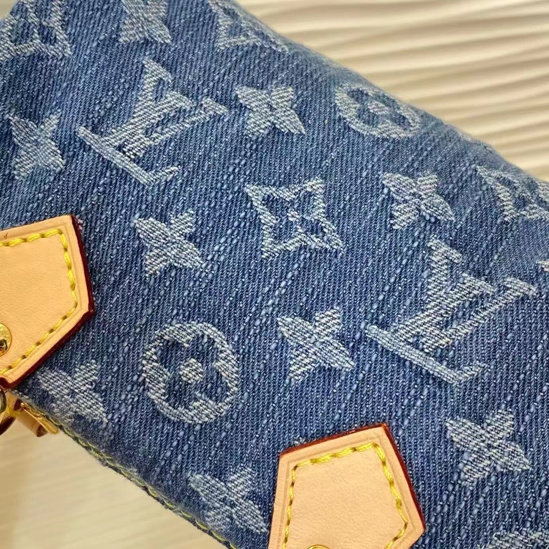本款 Nano speedy 手袋選用由認證棉織就的 Mongogram Denim 砂洗帆布