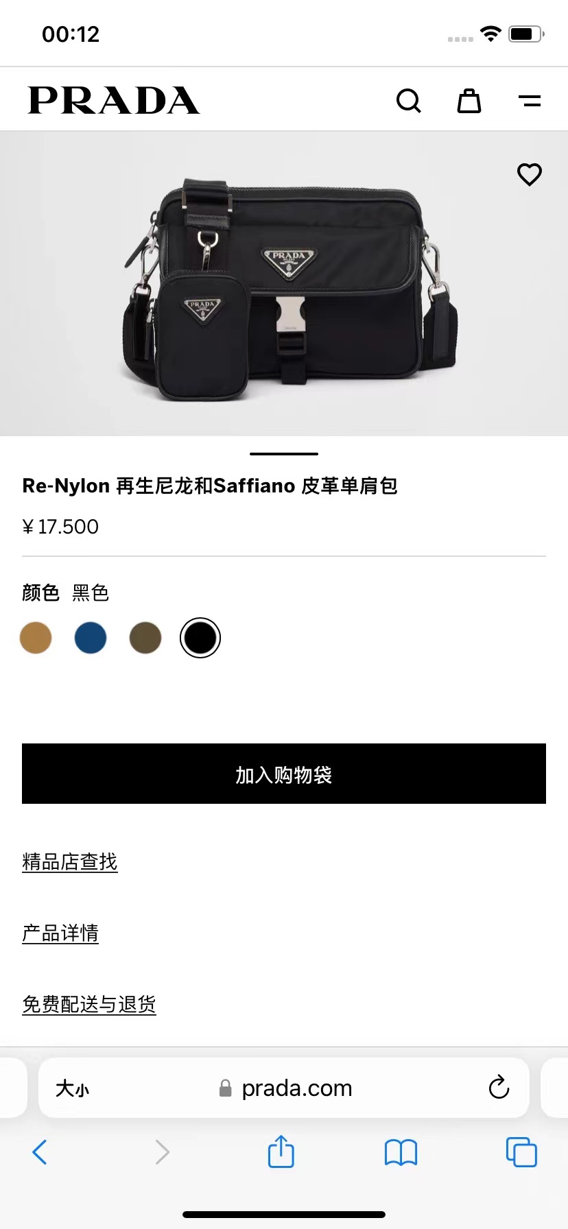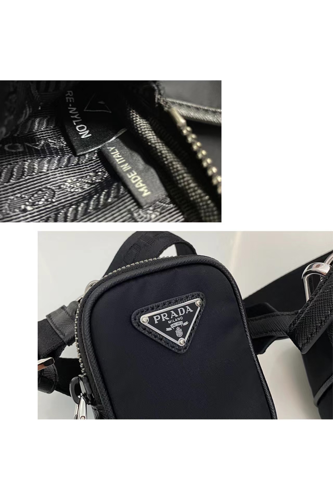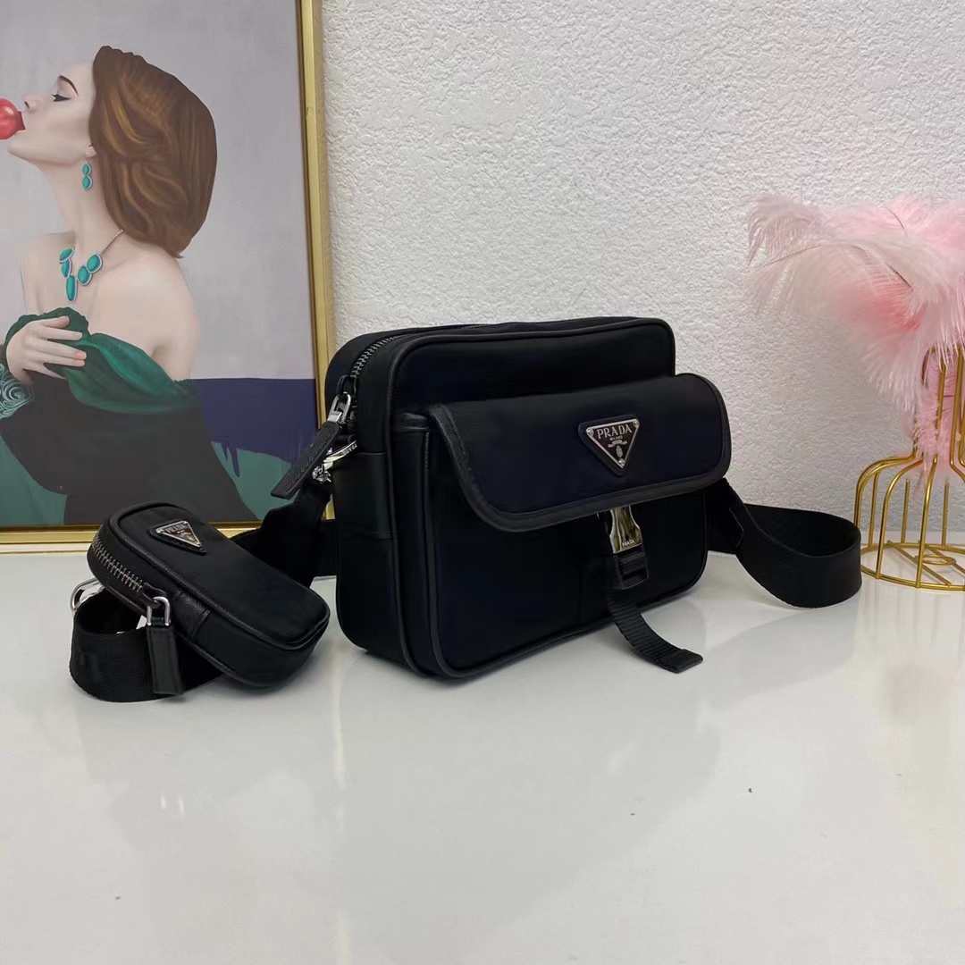 Re-Nylon再生尼龍和Saffiano皮革單肩包采用台灣進口尼龍面料,原廠五金