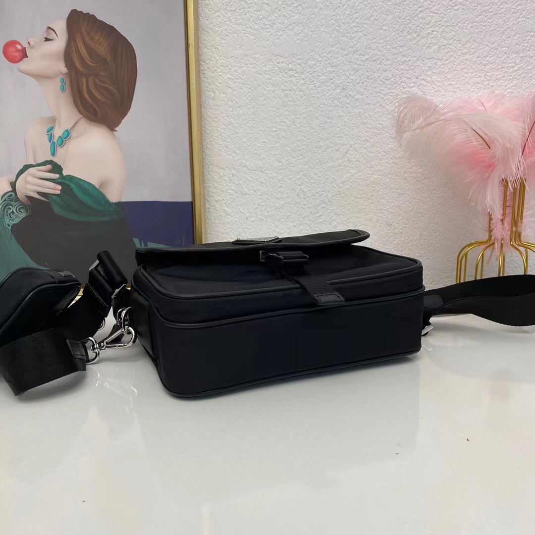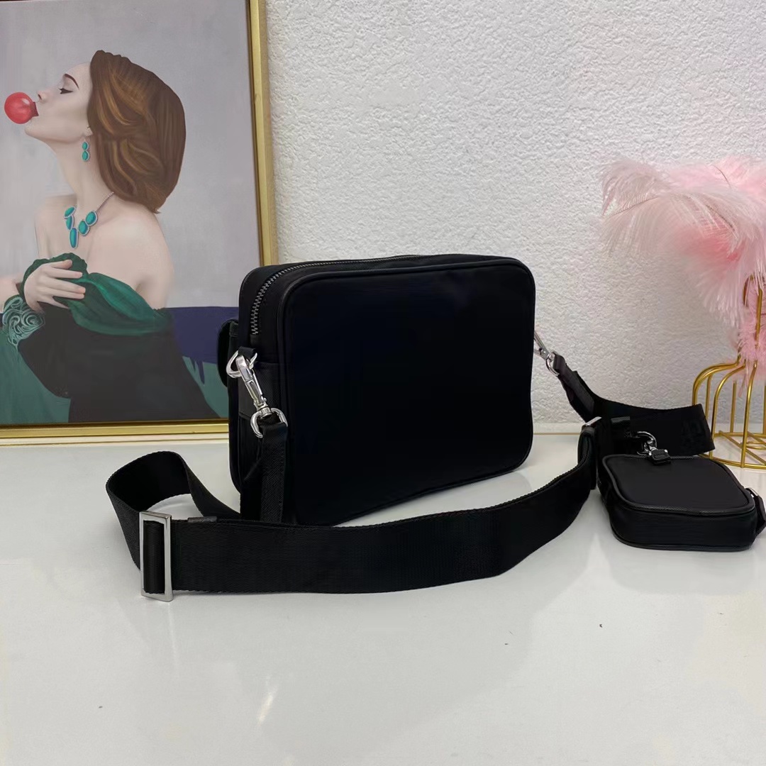 🎉可拆卸可調式尼龍帶和皮革肩帶,配可拆卸小袋,翻蓋塗琺琅金屬三角形徽標拉鏈拉合,