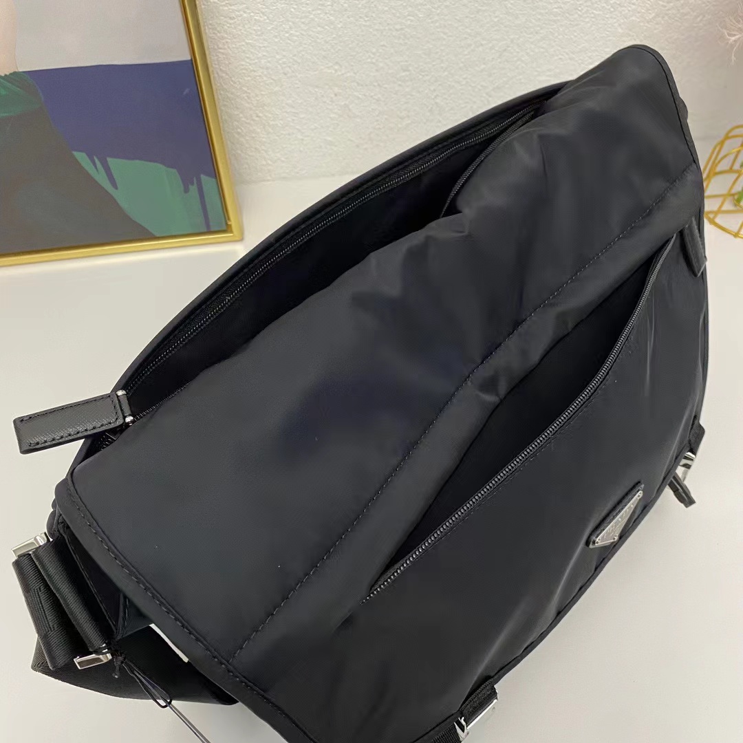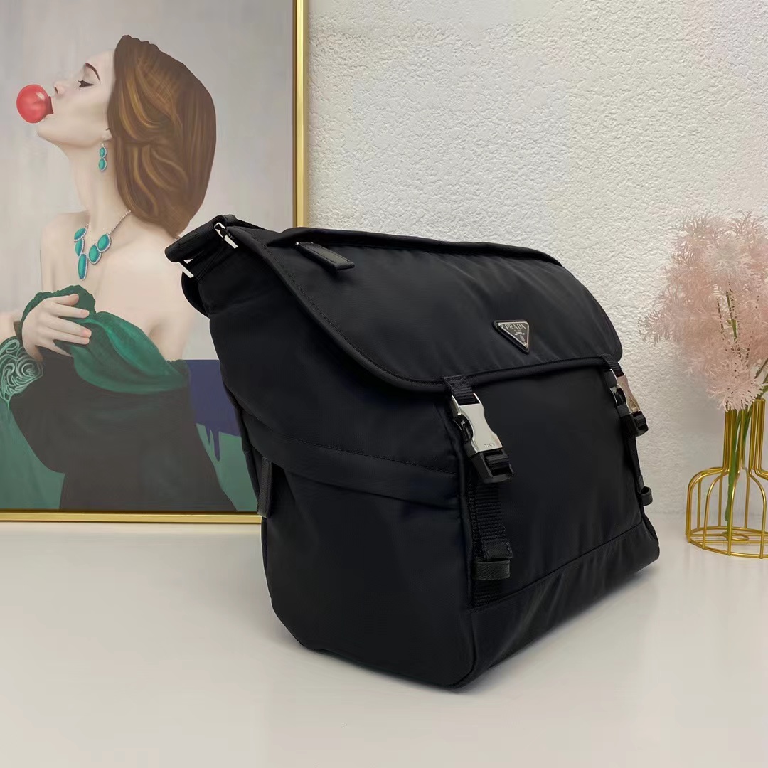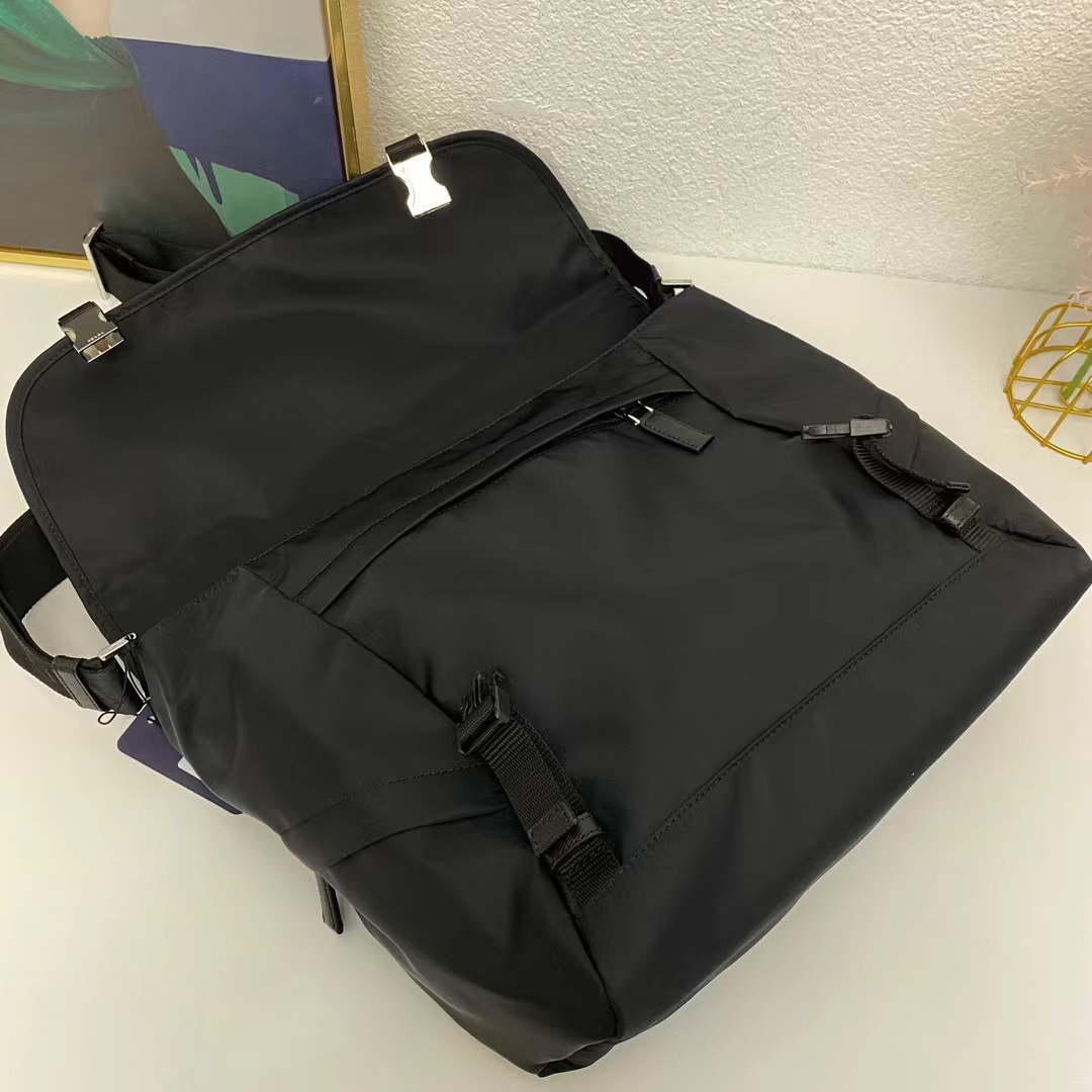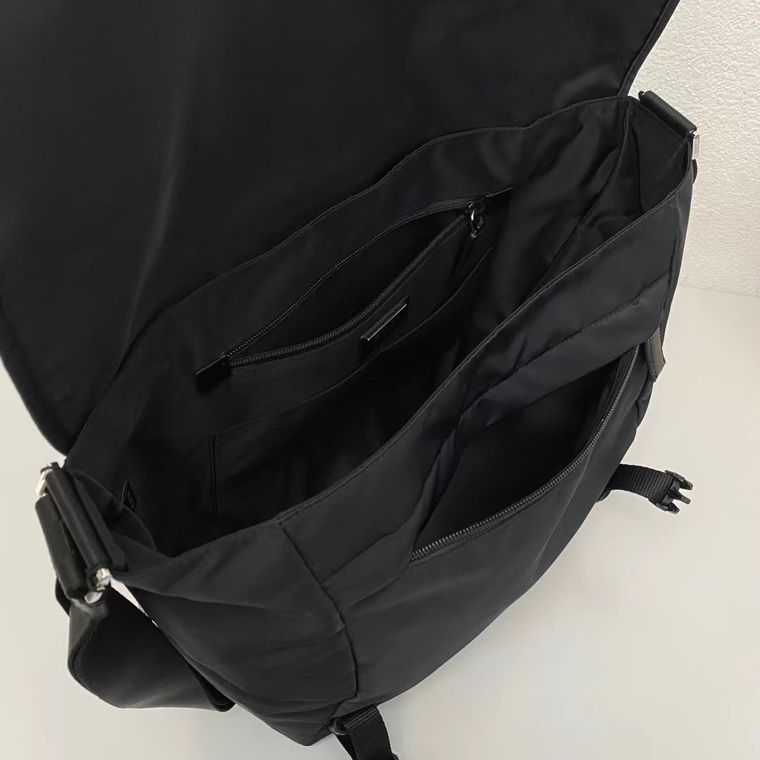 這款郵差包由Re-Nylon再生尼龍面料設計,翻蓋和按鎖開合,三個外部拉鏈式口袋
