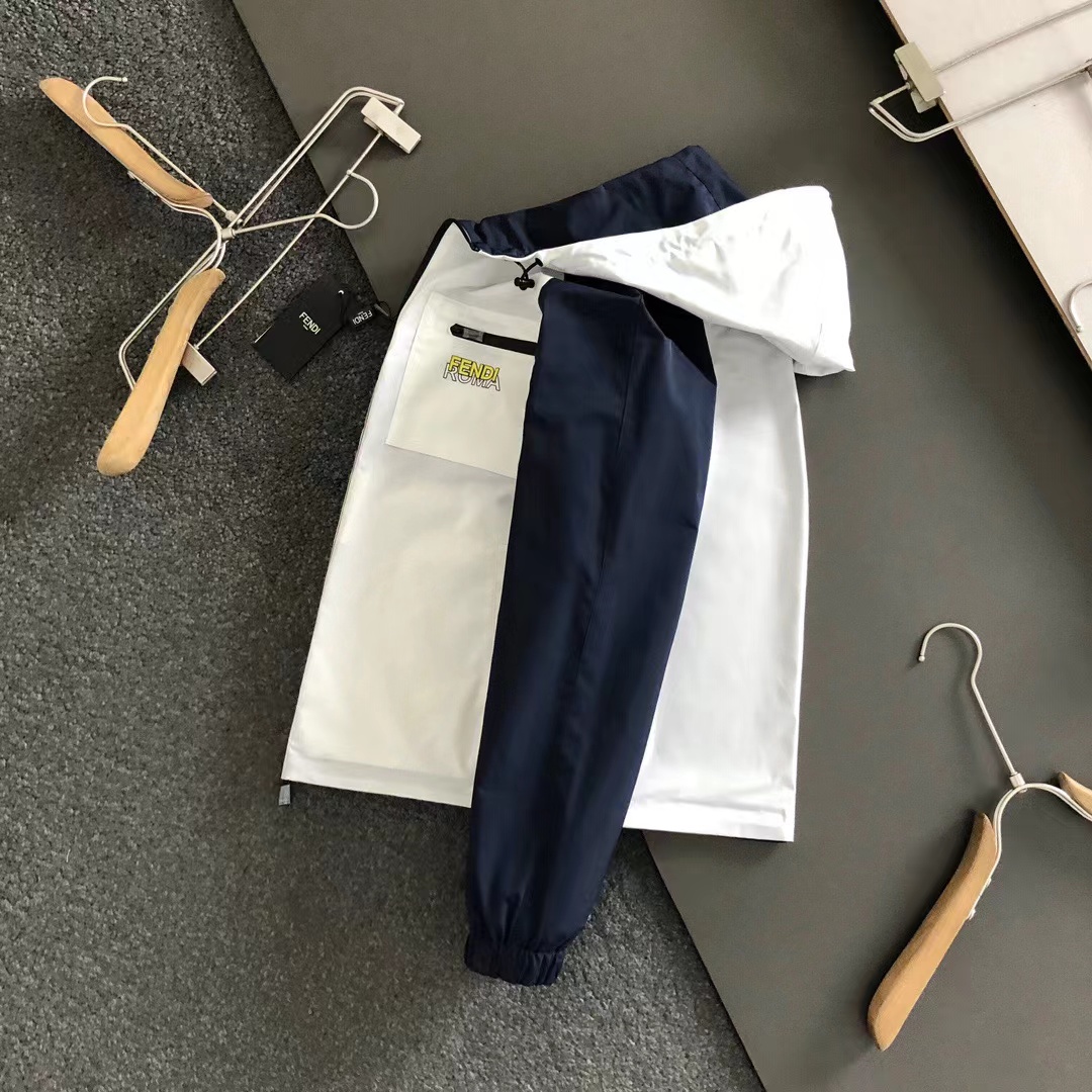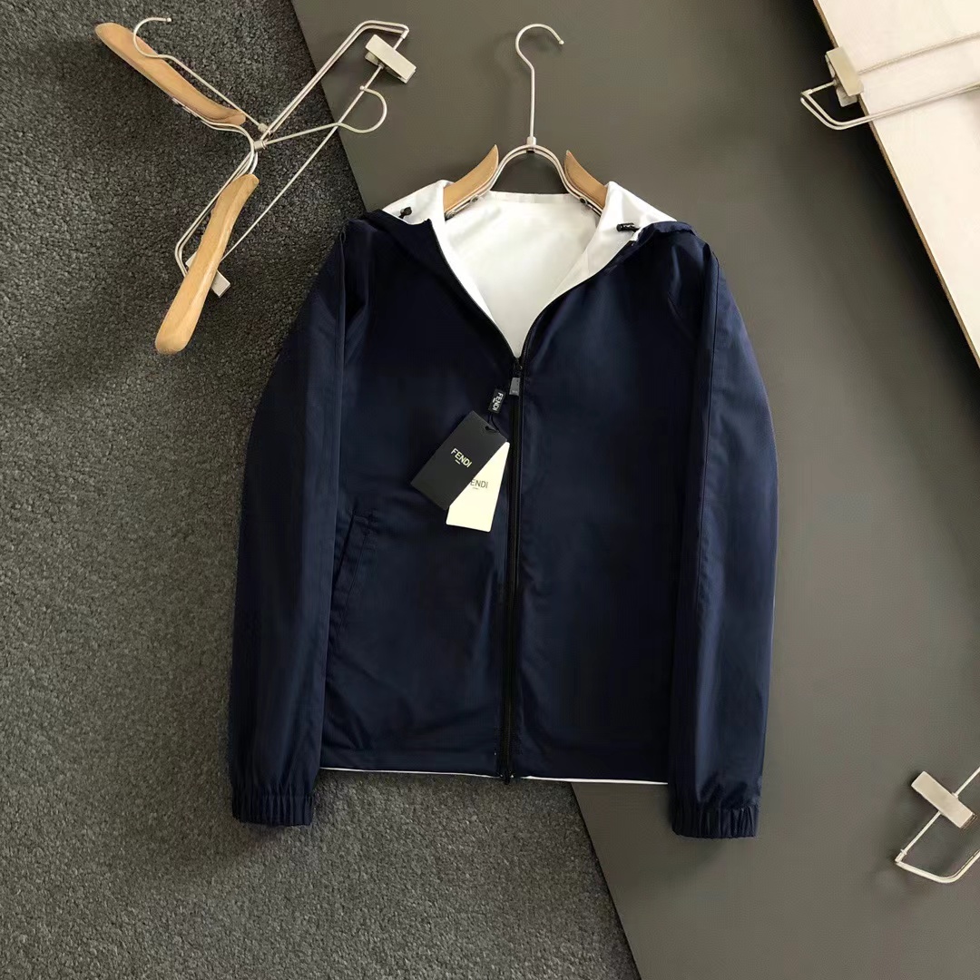 2024秋款原廠藍白拼色口袋雙面穿拉鏈夾克外套,原廠重工專櫃款夾克,進口私貨,