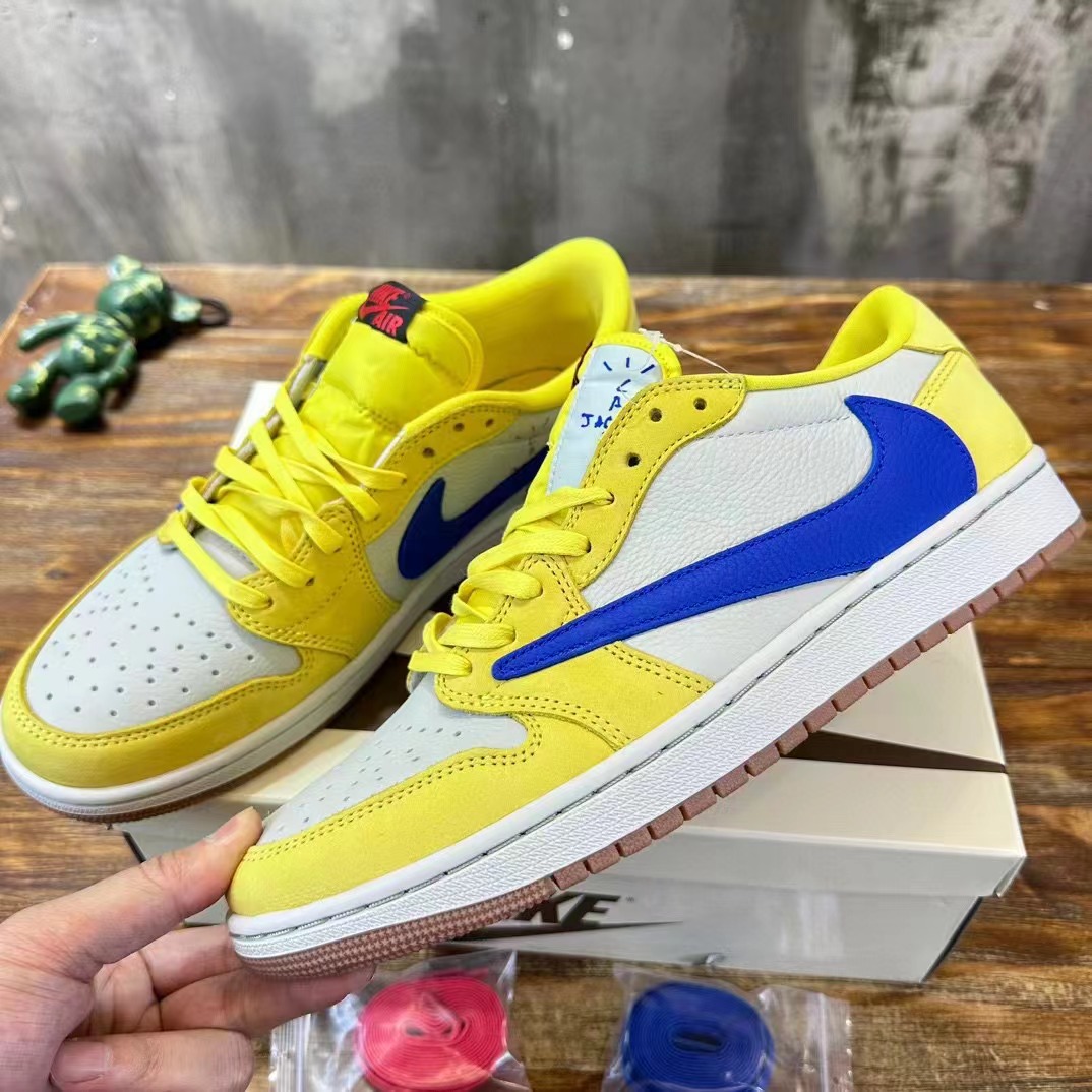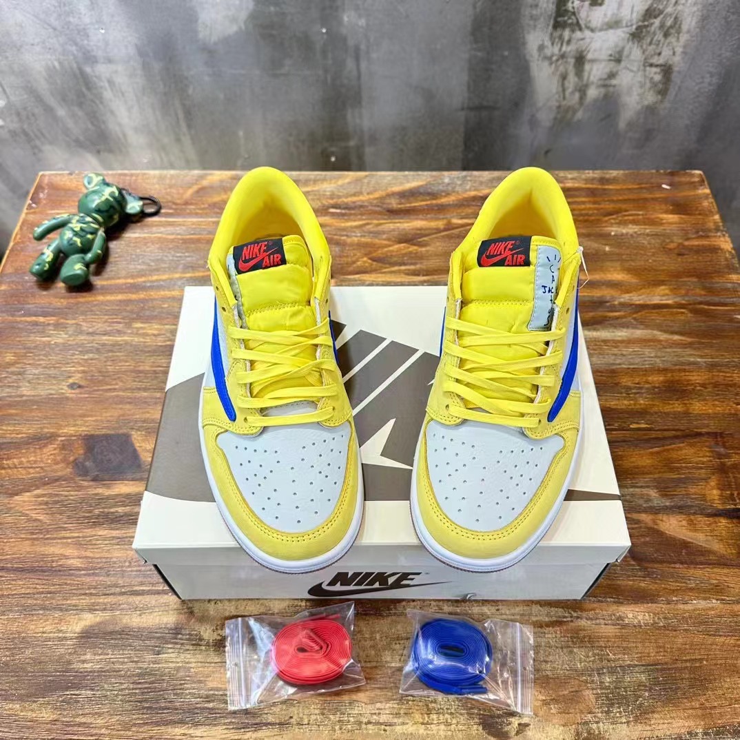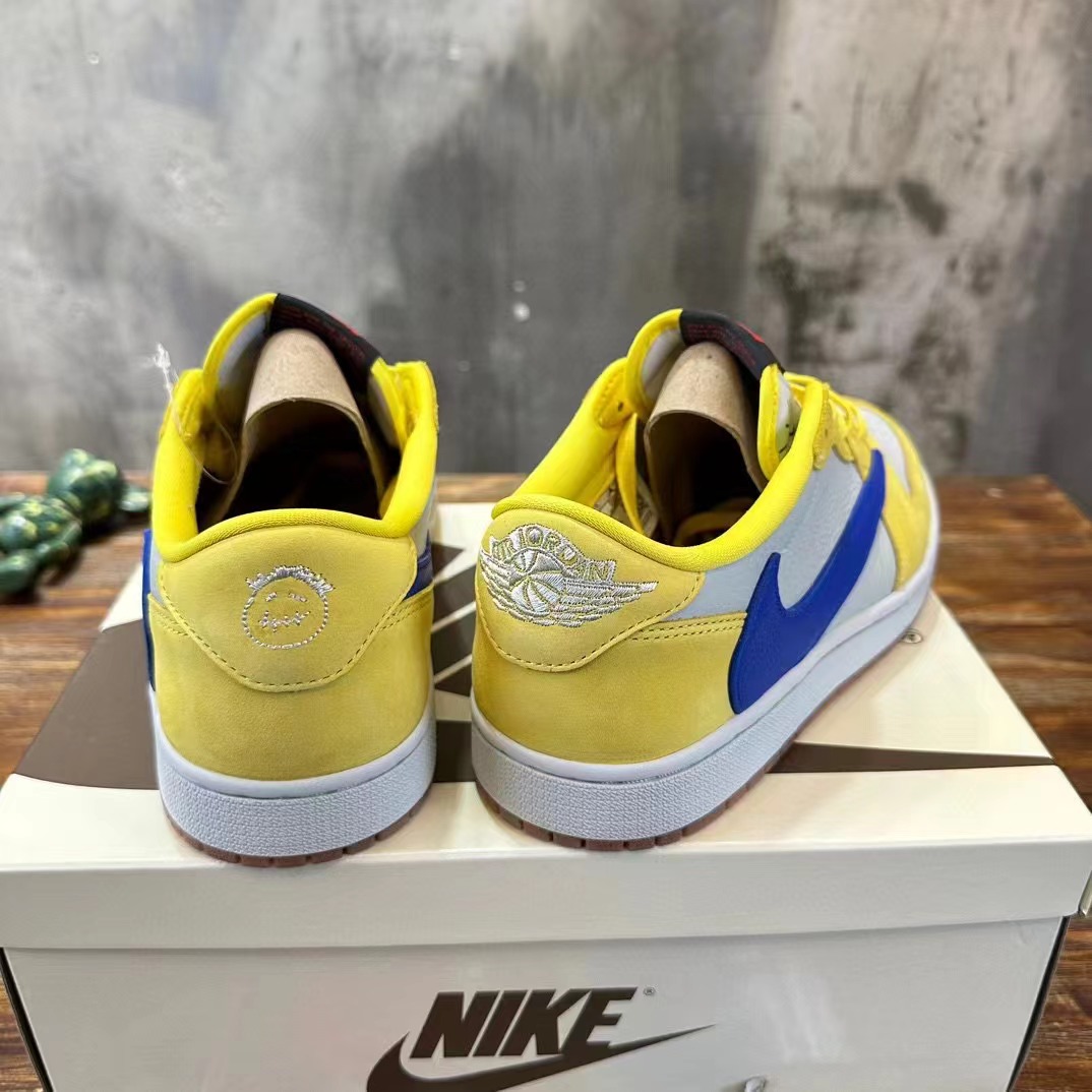 Travis Scott x Jordan Air Jordan 1 Low Ganay 倒鈎低幫白藍黃 圓頭舒適,