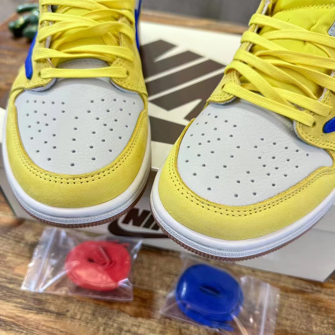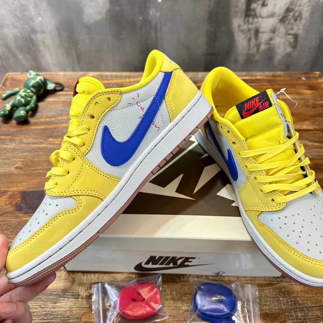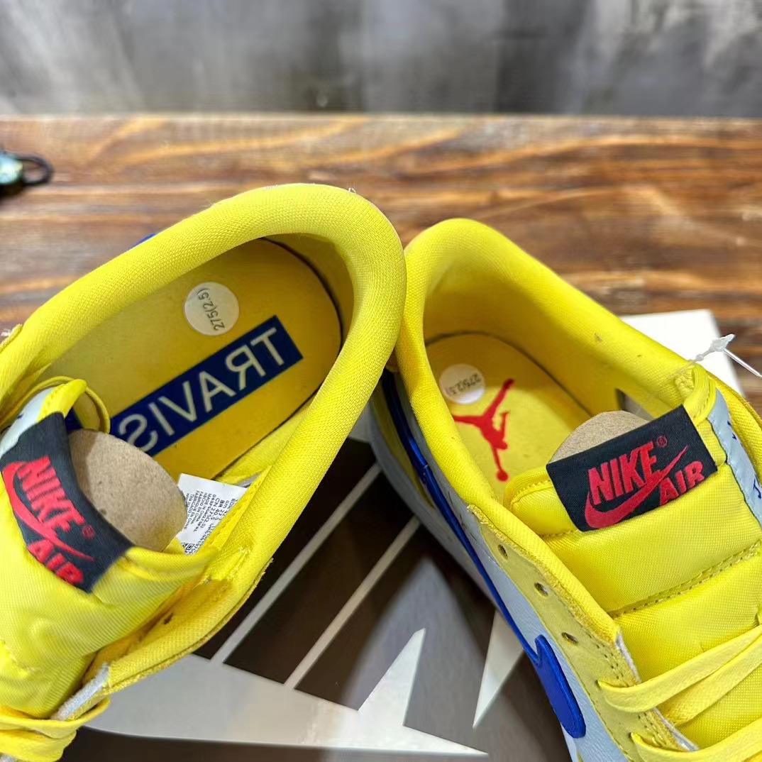Travis Scott x Jordan Air Jordan 1 Low Ganay 倒鈎低幫白藍黃 圓頭舒適,