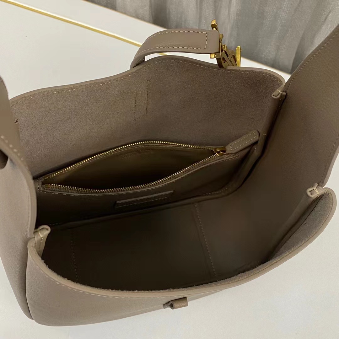 水桶包格式、空間充裕,絨面革襯里,搭配簡單大氣的YSL五金配件,